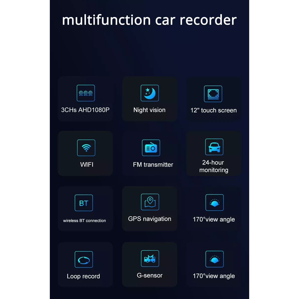 GloboStar® 86057 Καθρέπτης Αυτοκινήτου με 3 Κάμερες 3CHs AHD 1080P 170° - 4G Sim Card Slot - WiFi - GPS Navigator - Bluetooth - G Sensor - 24h Monitoring - FM Transmitter - Νυχτερινή Όραση - Μαύρο