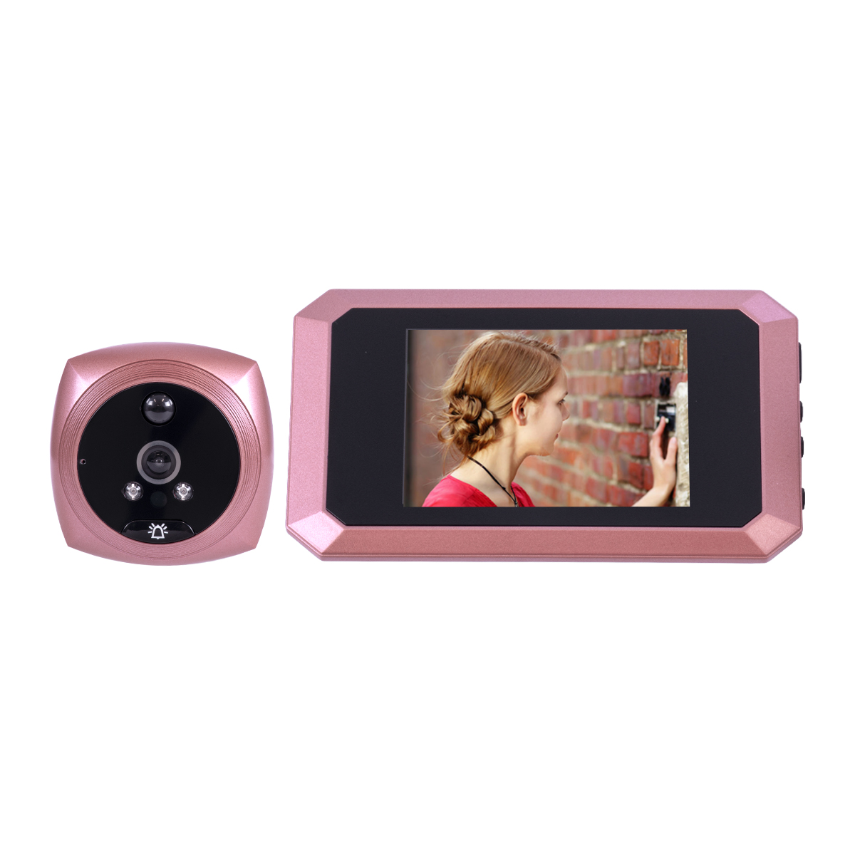 GloboStar® 86064 Επαναφορτιζόμενη Ψηφιακή Έξυπνη Camera Εξώπορτας 90° Μοιρών με Έγχρωμη Οθόνη 4.1 Inches - USB - Νυχτερινή Όραση με LED IR - Κουδούνι - Ροζ