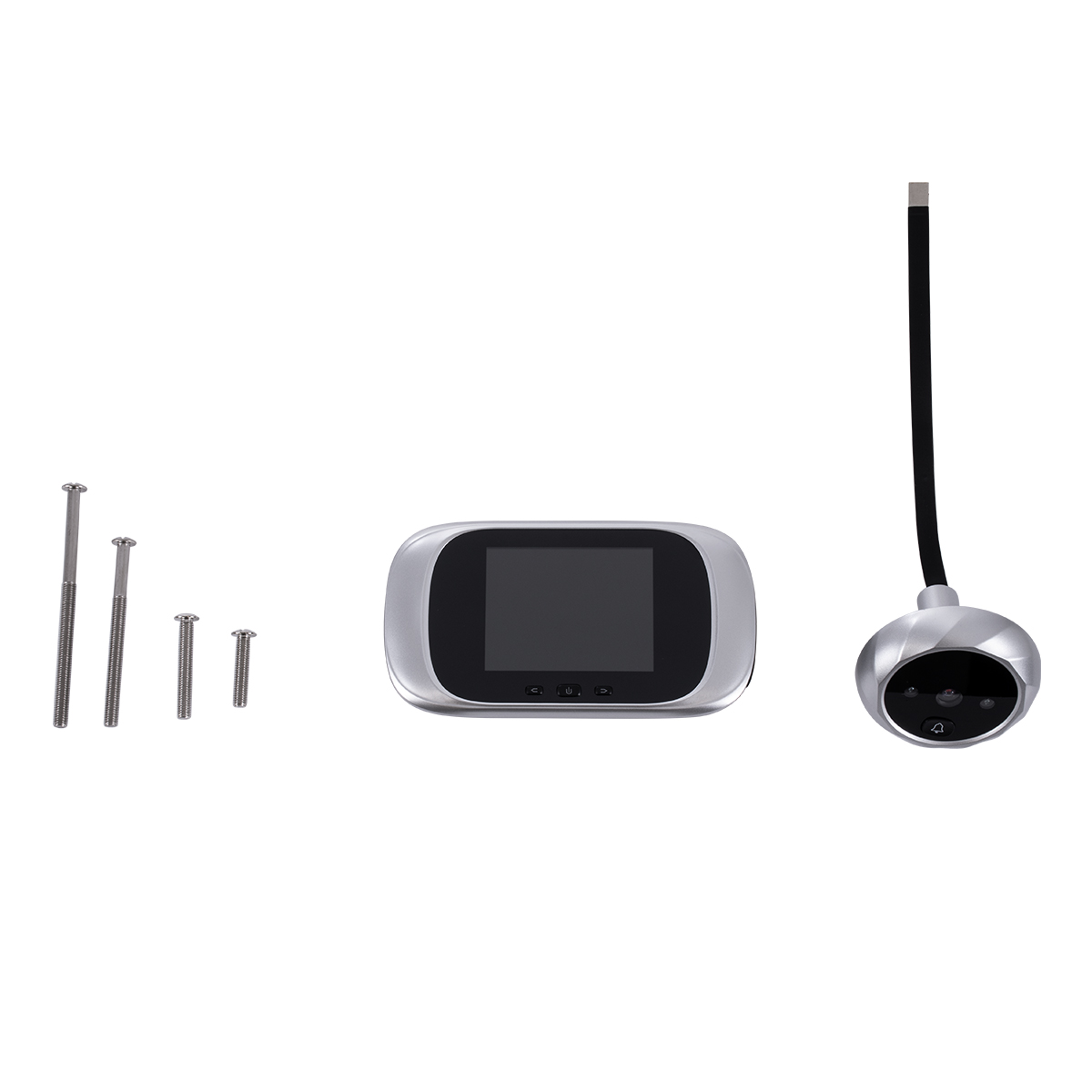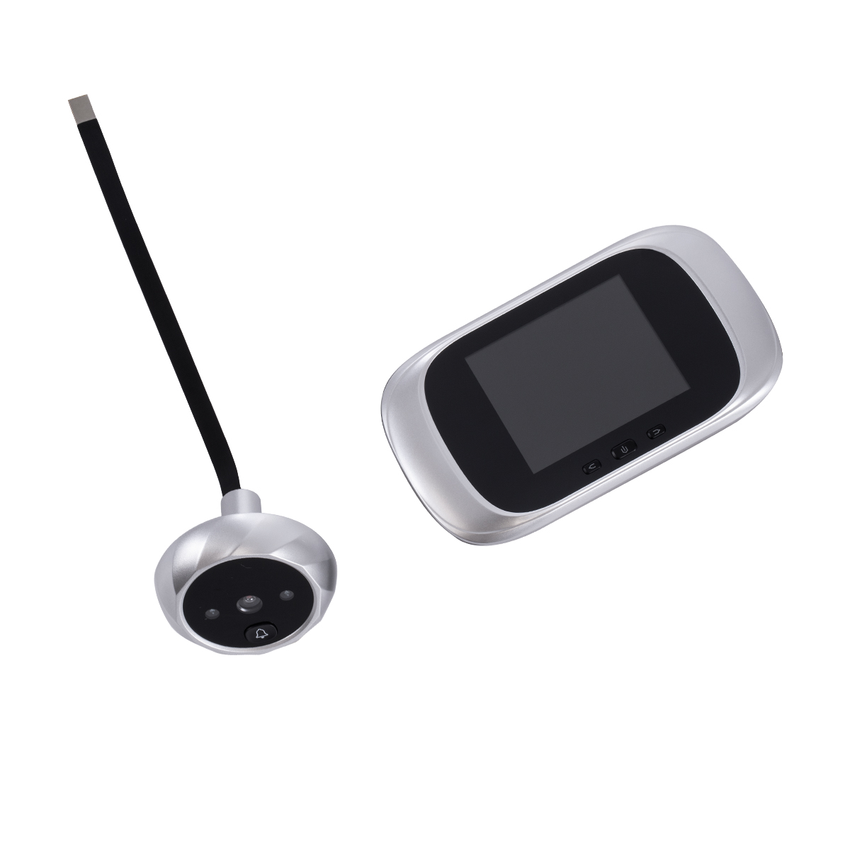 GloboStar® 86067 Επαναφορτιζόμενη Ψηφιακή Έξυπνη Camera Εξώπορτας 90° Μοιρών με Έγχρωμη Οθόνη 2.8 Inches - USB - Νυχτερινή Όραση με LED IR - Κουδούνι - Ασημί