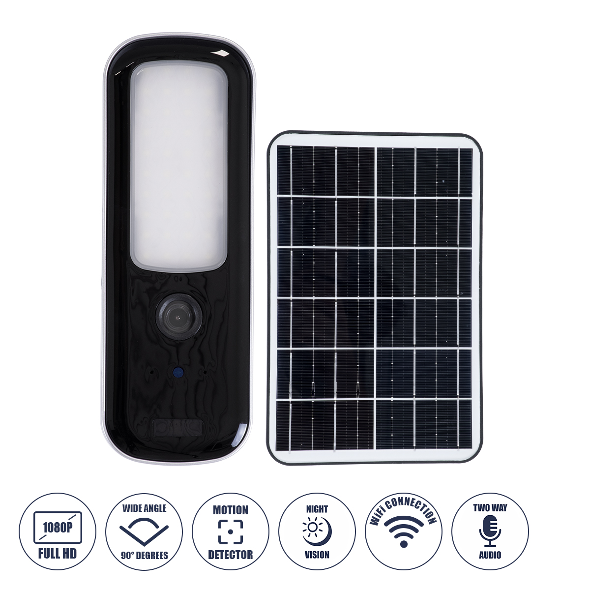 GloboStar® 86073 Αυτόνομος Ηλιακός Επιτοίχιος Προβολέας LED SMD 12W 600lm με IP Camera 1080P 2MP WiFi 150° Μοιρών - Ενσωματωμένη Μπαταρία 2500mAh - Φωτοβολταϊκό Πάνελ - Αισθητήρα Ημέρας-Νύχτας & Ρύθμιση Χρόνου Ανάμματος - Αδιάβροχος IP66 Ψυχρό Λευκό 6000K