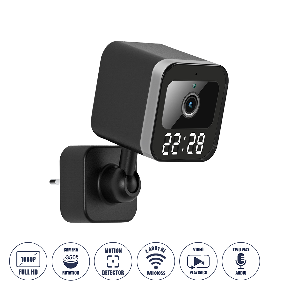 GloboStar® 86082 Επιτοίχια Κάμερα Πρίζας WiFi HD 1080P 350° Διπλή Κατέυθυνση Ομιλίας & Ανιχνευτή Κίνησης - Απομακρυσμένος Έλεγχος IP20 - Μαύρο - Μ6 x Π5.5 x Υ16cm - 2 Χρόνια Εγγύηση