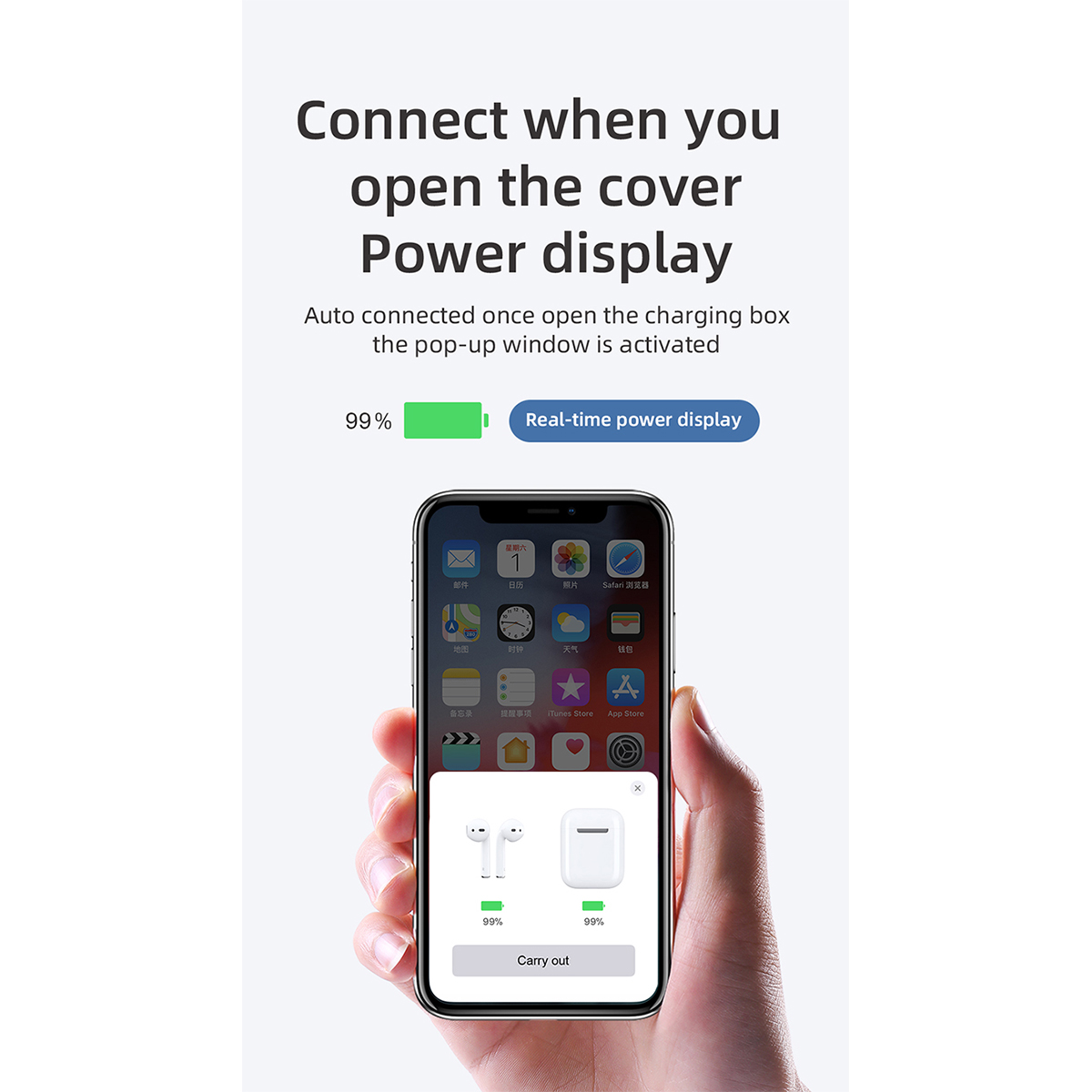 2. Popup pairing new upgrade, pair and connect automatically when open the charging bin