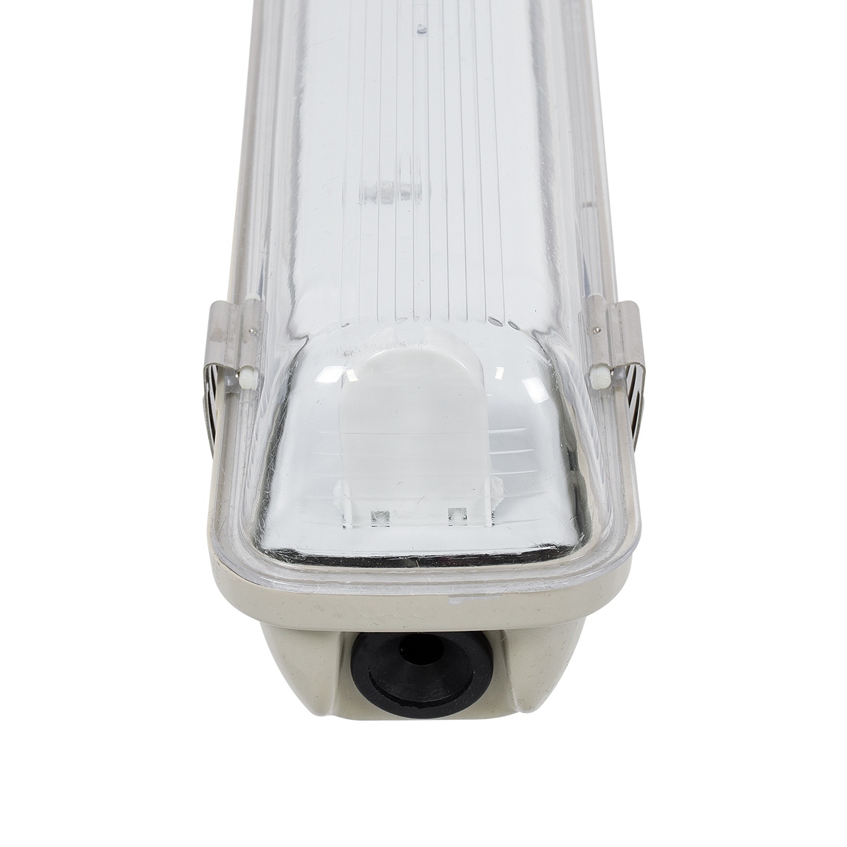 GLOBOSTAR® VIGAS 90612 Γραμμικό Βιομηχανικό Φωτιστικό Σκαφάκι Tri-Proof με Μεταλλικά Clips για 1 x Λάμπα T8 G13 120cm Τύπου Φθορίου LED Τροφοδοσίας Ενός Άκρου 120° AC 220-240V Αδιάβροχο IP65 - Γκρι με Διάφανο Κάλυμμα Πλαστικό PC - Μ126 x Π8 x Υ8.5cm