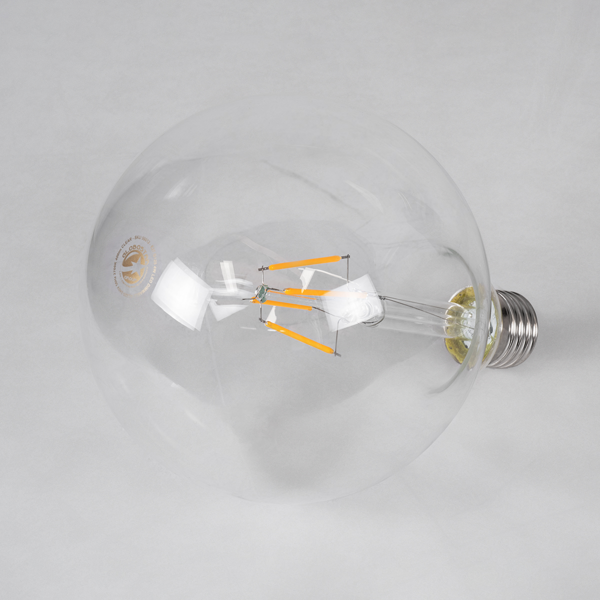 GLOBOSTAR® BUBBLE 99012 Λάμπα E27 G125 LED 4W 400lm 360° AC 220-240V IP20 Θερμό Λευκό 2700K Dimmable - Long Filament Chip - Διάφανο - Μ12.5 x Π12.5 x Υ18cm - 3 Χρόνια Εγγύηση