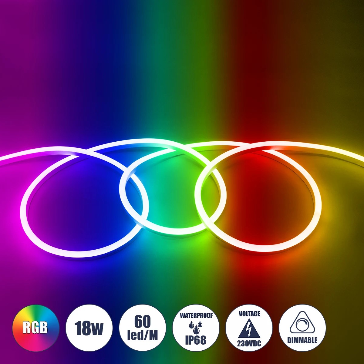 GloboStar® 999-0245 OVALE 120° Degree Neon Flex Epistar LED SMD 5050 1m 18W/m 60LED/m 1260lm/m 120° DC 230V Αδιάβροχη IP68 RGB Dimmable Μ100 x Π2.6 x Υ1.7cm