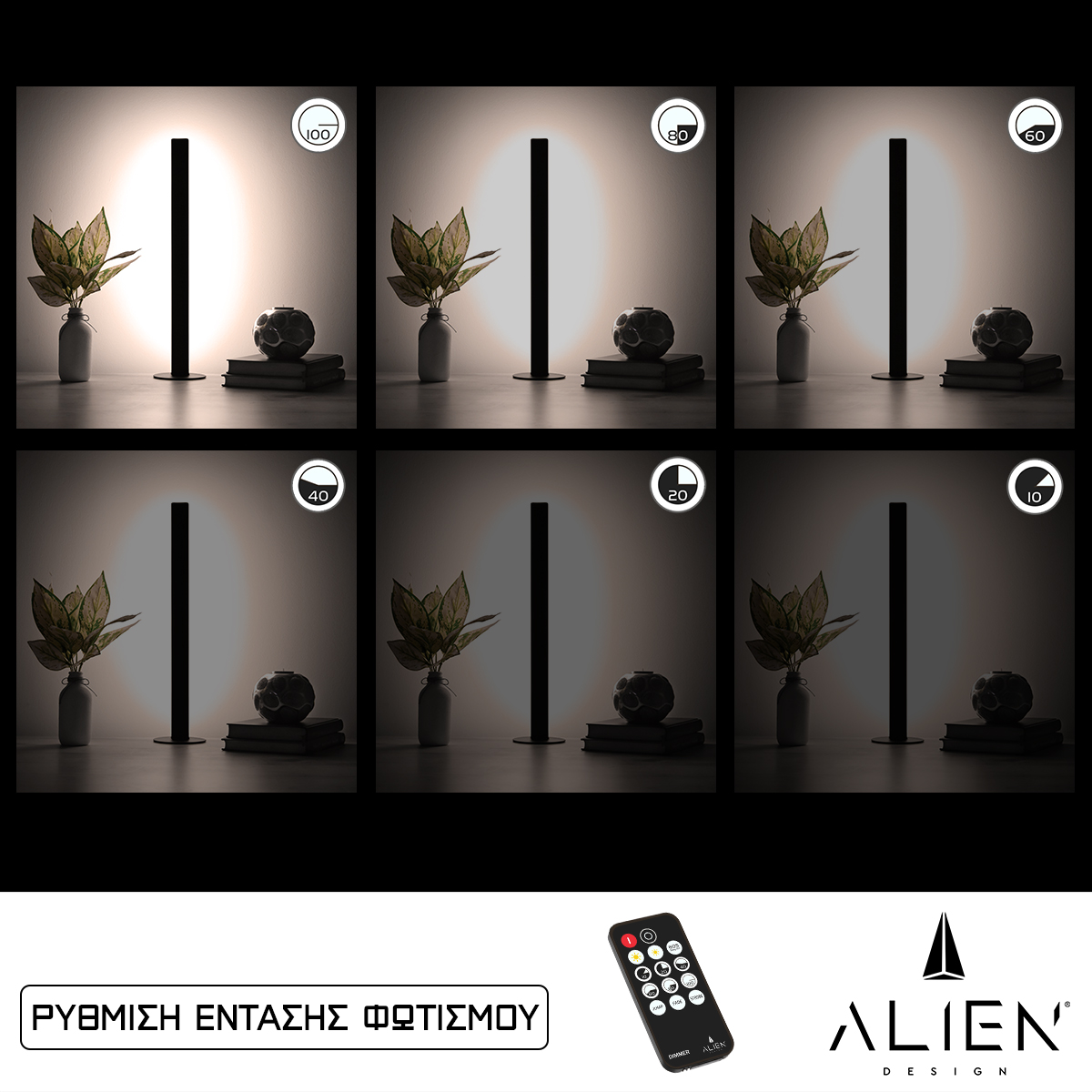 GloboStar® ALIEN-DIVA-BLACK-50-2 ALIEN Design DIVA Μοντέρνο Minimal Nordic Μεταλλικό Φωτιστικό Επιτραπέζιο - Πορτατίφ - Λαμπατέρ Μαύρο LED 8W 1040lm με Ασύρματο Χειριστήριο RF & Dimmer IP20 Φυσικό Λευκό 4500K Μ3 x Π1.6 x Υ50cm