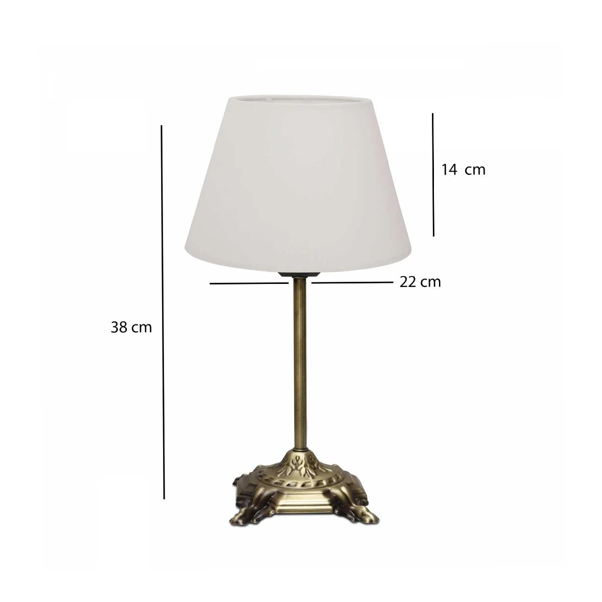 GloboStar® AΝΤΙQUE 204-0142 Vintage Eπιτραπέζιο Φωτιστικό Μονόφωτο 1 x E27 IP20 Μπρούτζινο Μέταλλο με Λευκό Ύφασμα - Μ22 x Π22 x Υ38cm