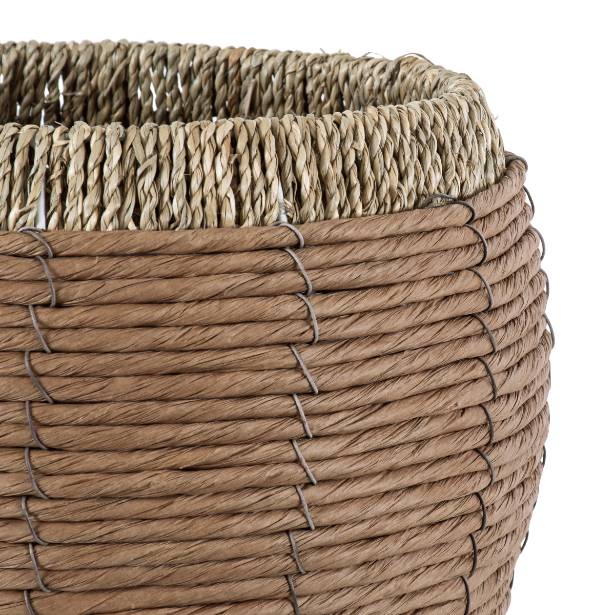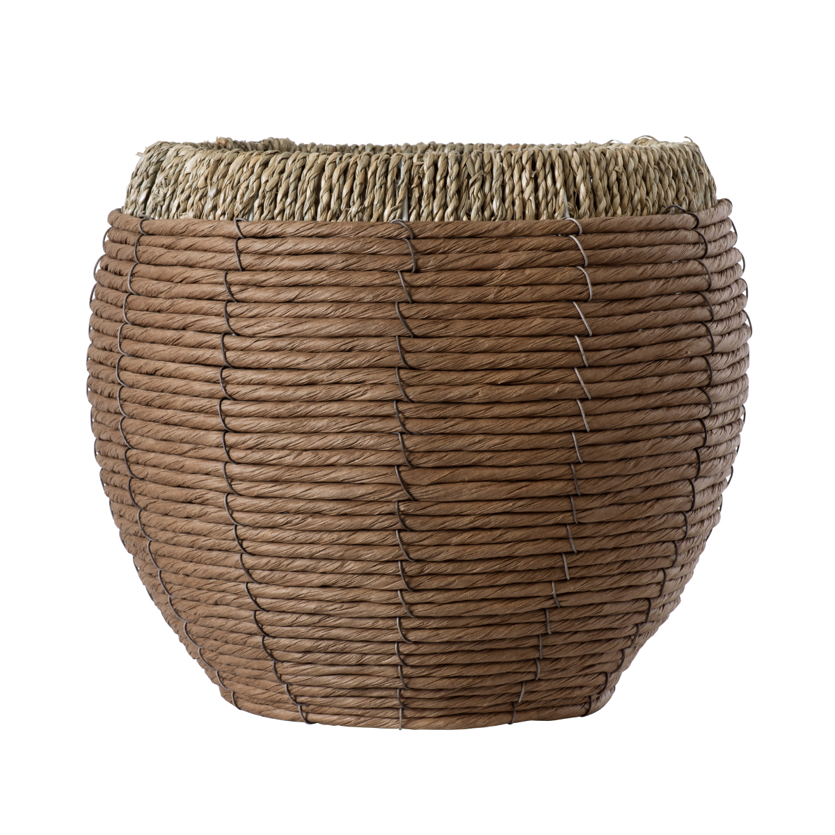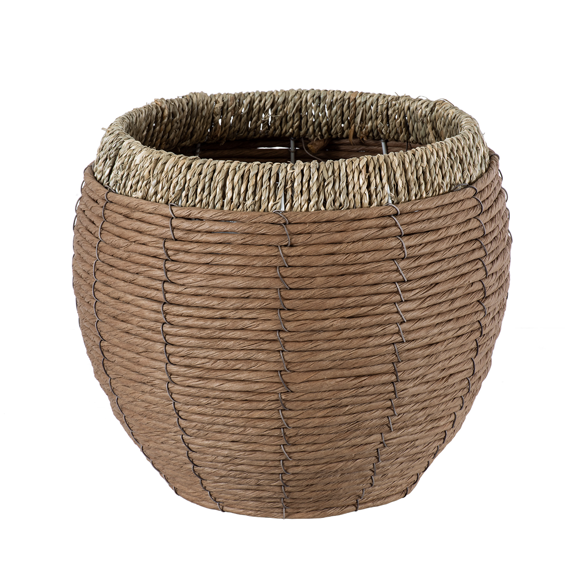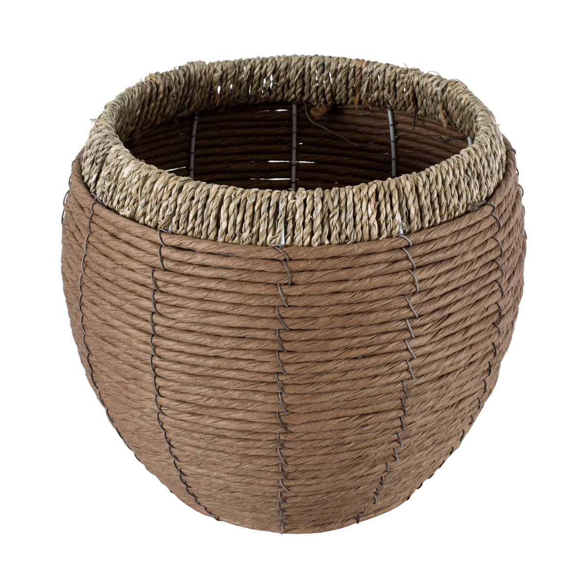 GloboStar® Artificial Garden AMORGOS 20337 Διακοσμητικό Πλεκτό Καλάθι - Κασπώ Γλάστρα - Flower Pot Μπεζ με Καφέ Φ25cm x Υ21cm