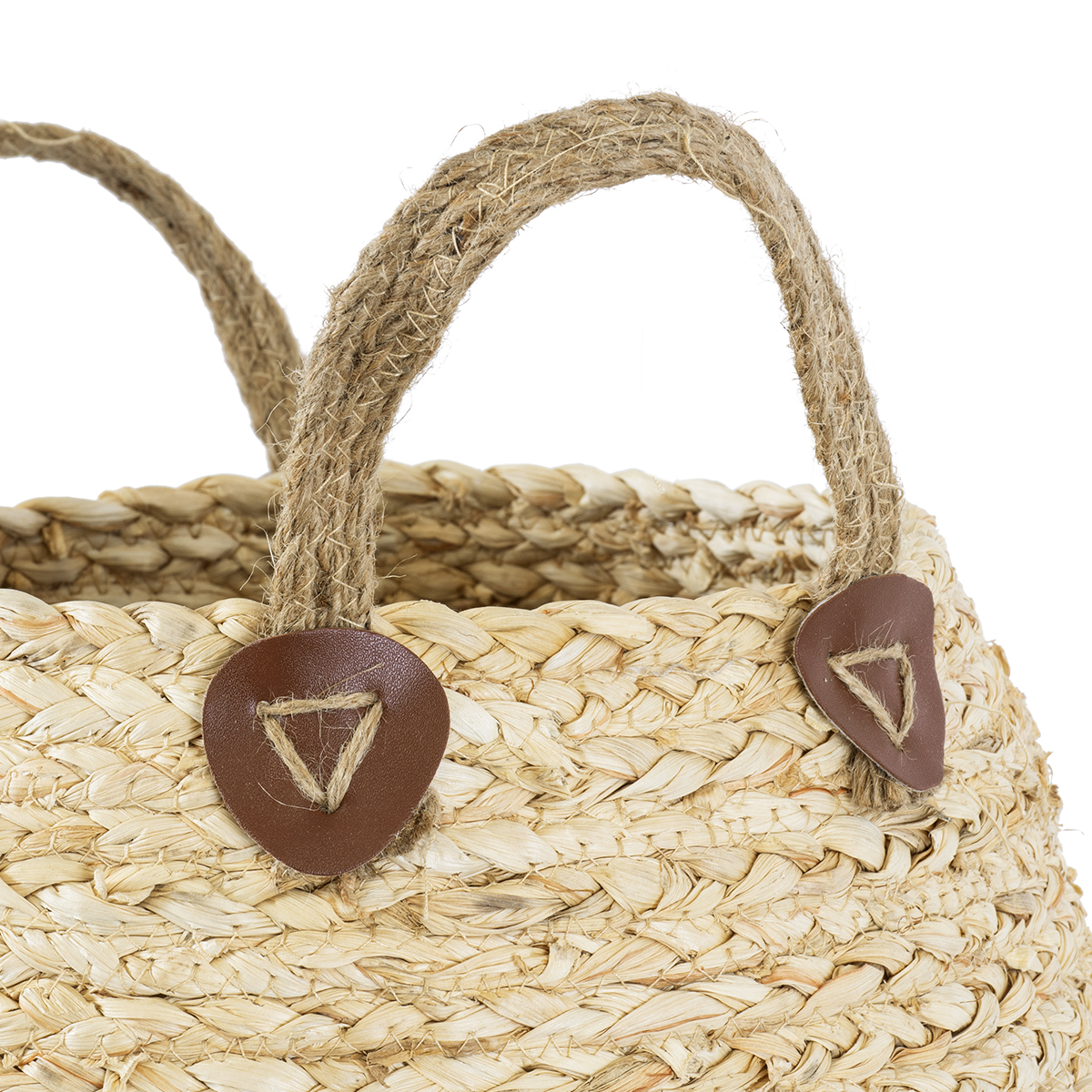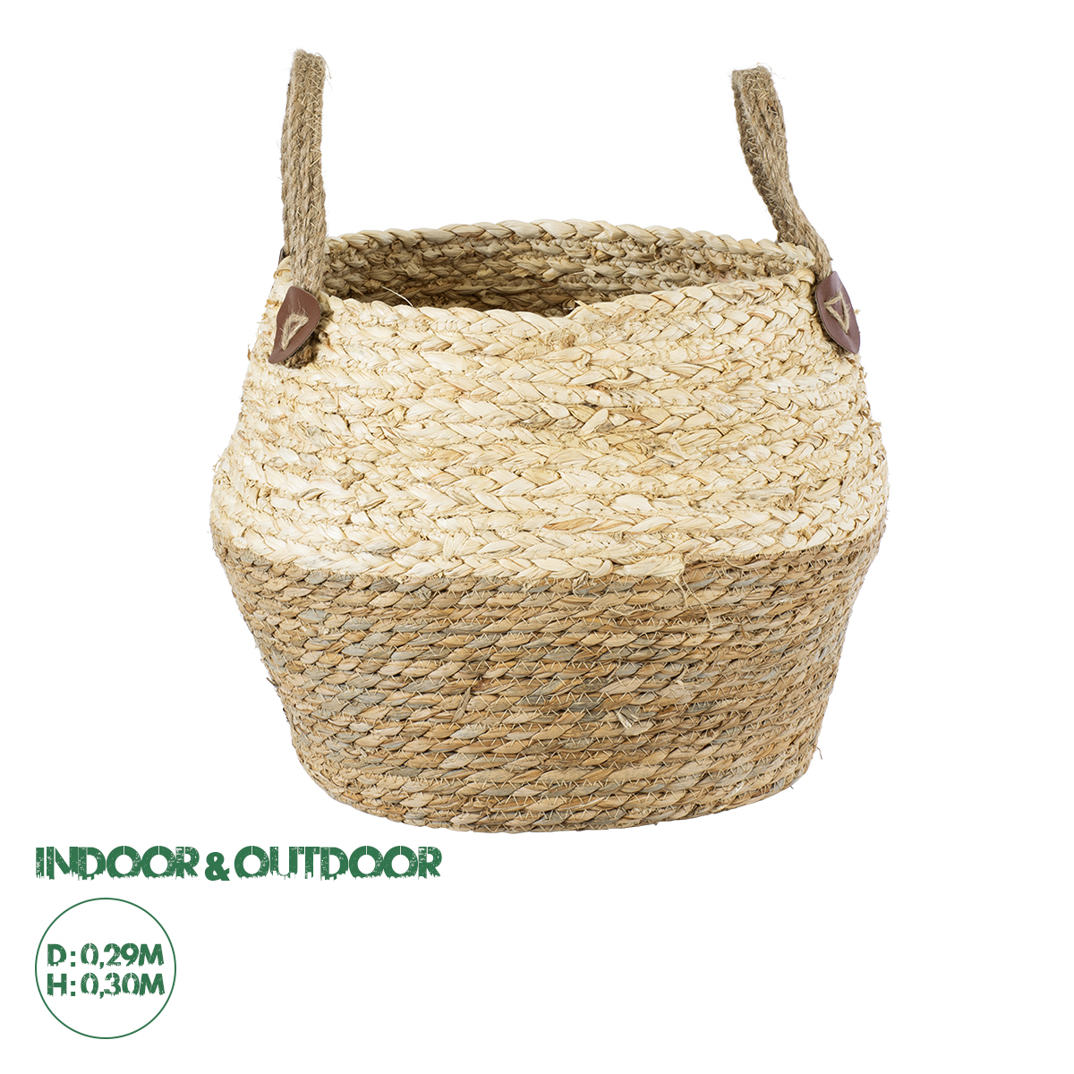 GloboStar® Artificial Garden ANDROS 20317 Διακοσμητικό Πλεκτό Καλάθι - Κασπώ Γλάστρα - Flower Pot Καφέ με Μπεζ Φ29cm x Υ30cm