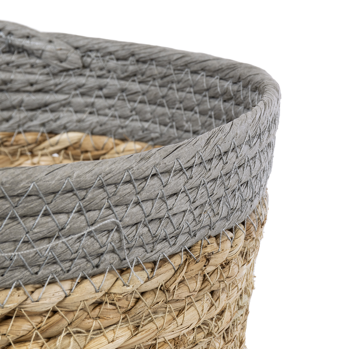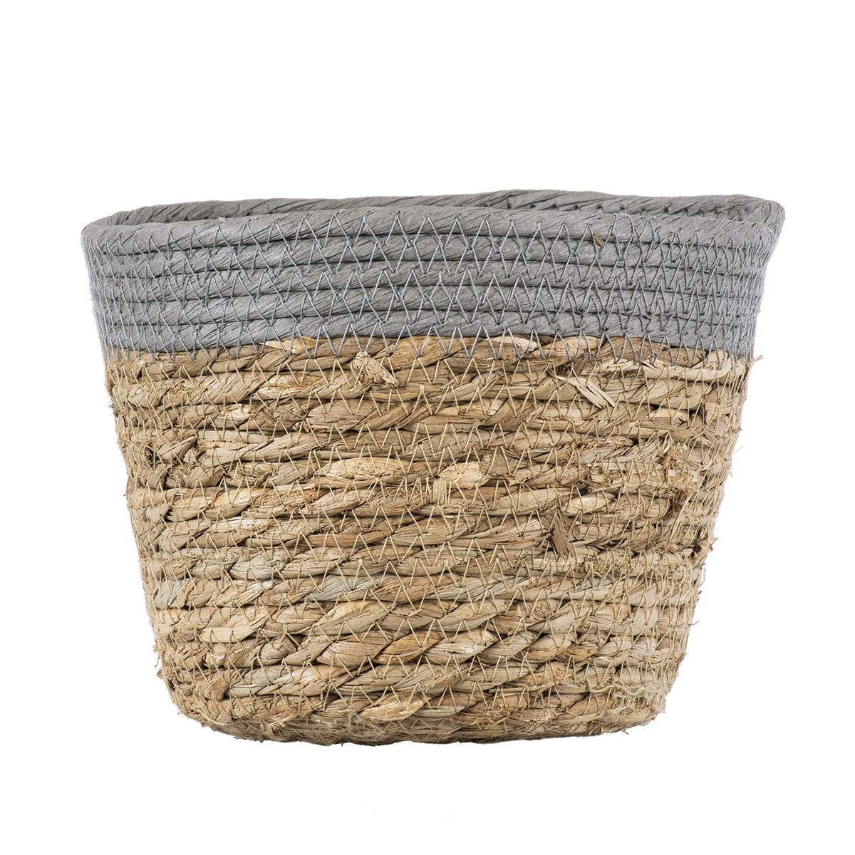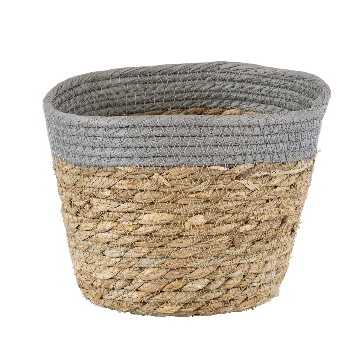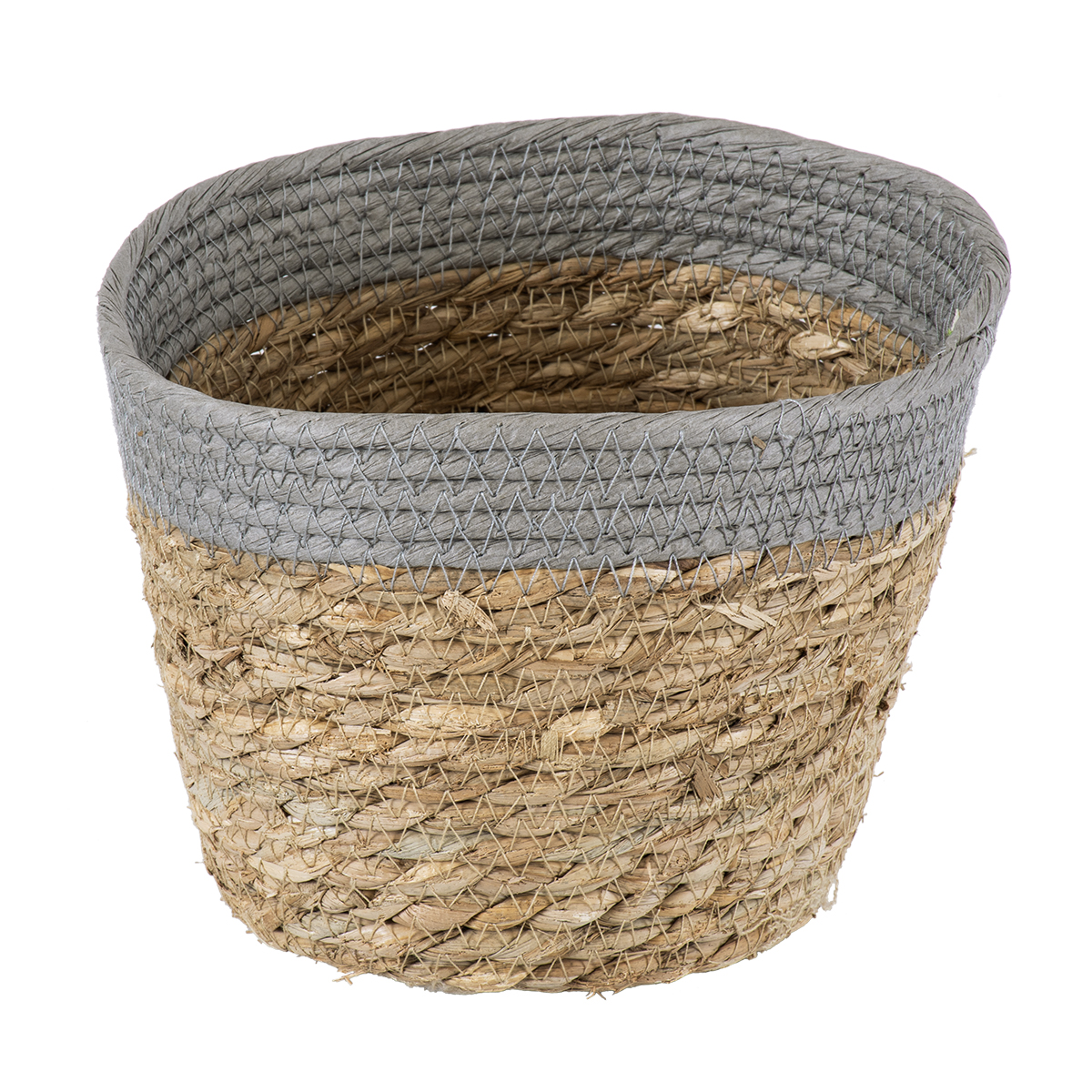 GloboStar® Artificial Garden ANTIPAROS 20288 Διακοσμητικό Πλεκτό Καλάθι - Κασπώ Γλάστρα - Flower Pot Μπεζ με Γκρι Φ18cm x Υ15cm