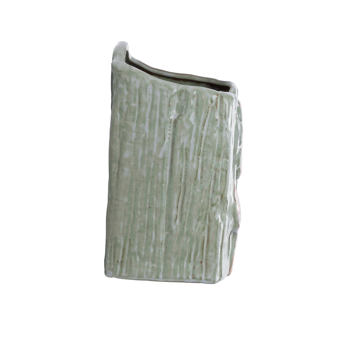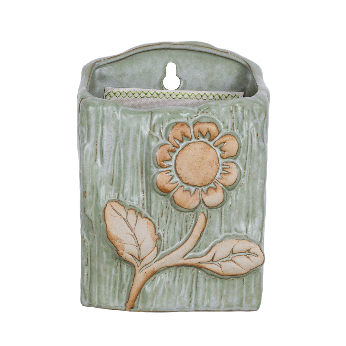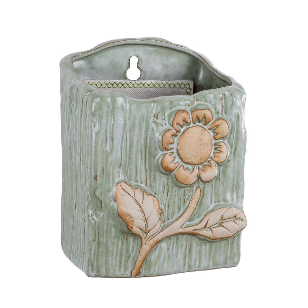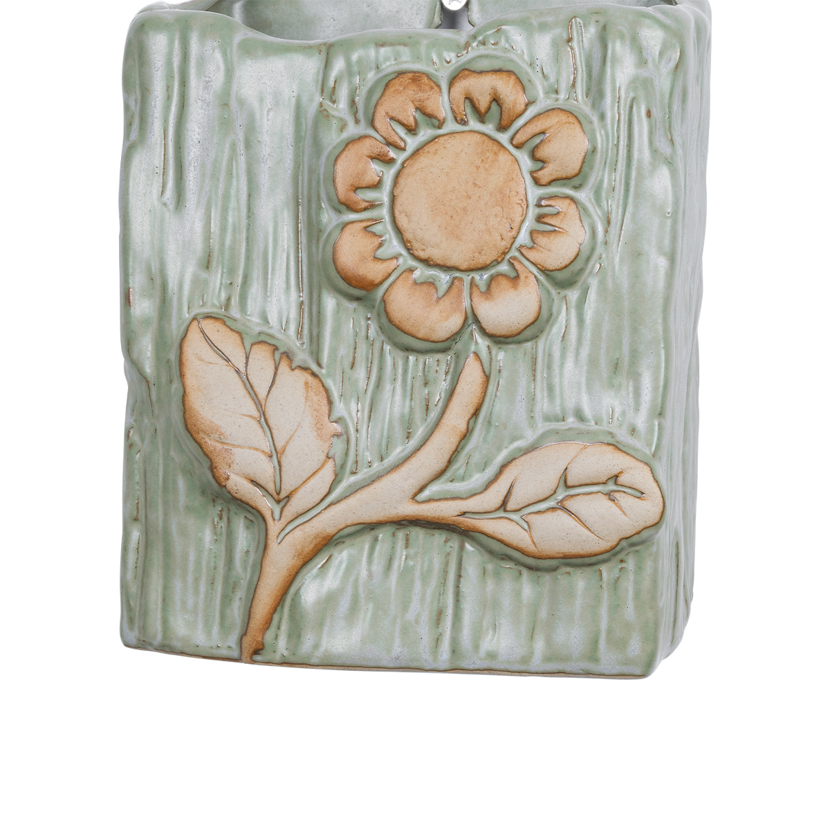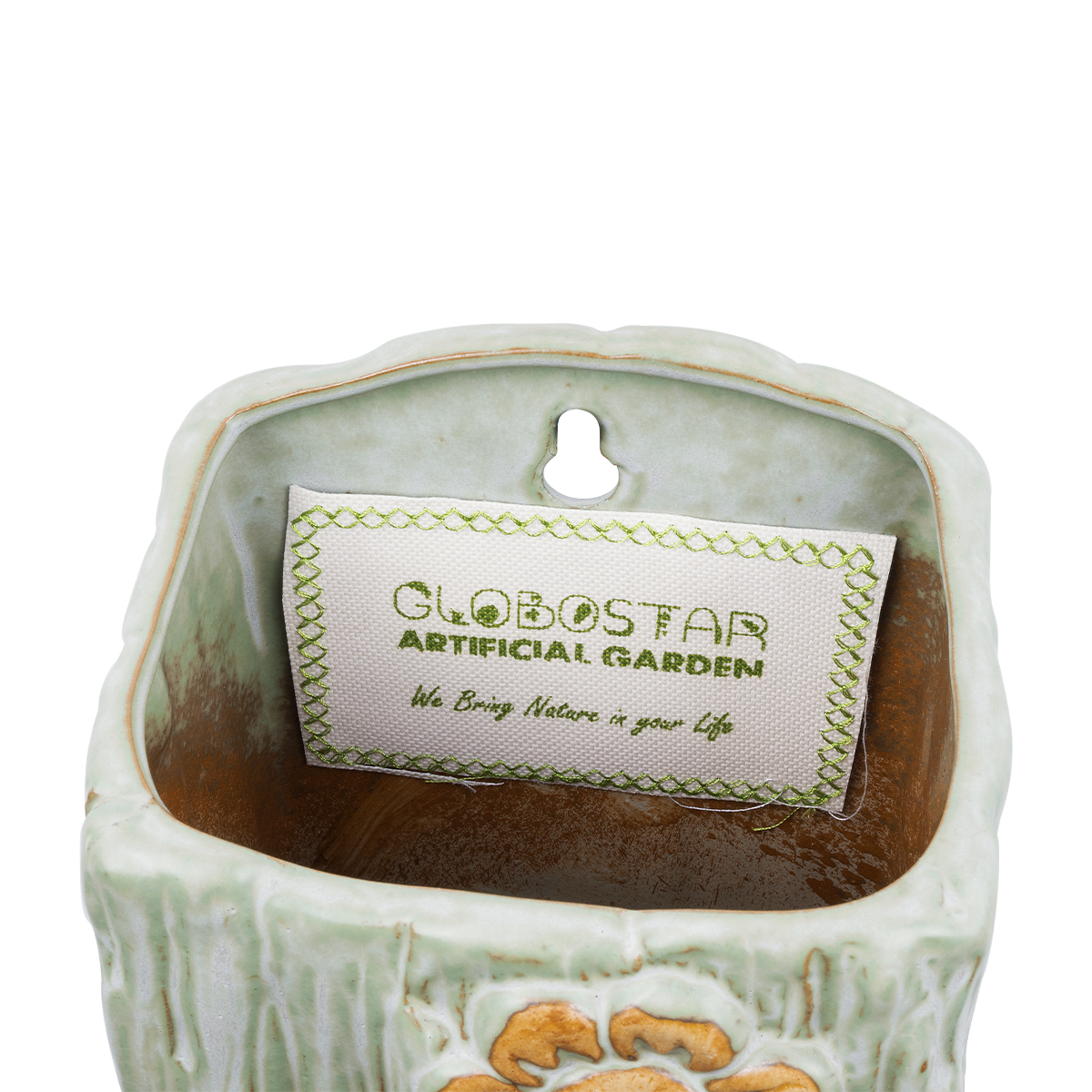 GloboStar® Artificial Garden BILBAO 20536 Διακοσμητική Κεραμική Επιτοίχια Γλάστρα Πράσινη με Μπεζ Λεπτομέρειες Μ13 x Π10 x Υ17cm