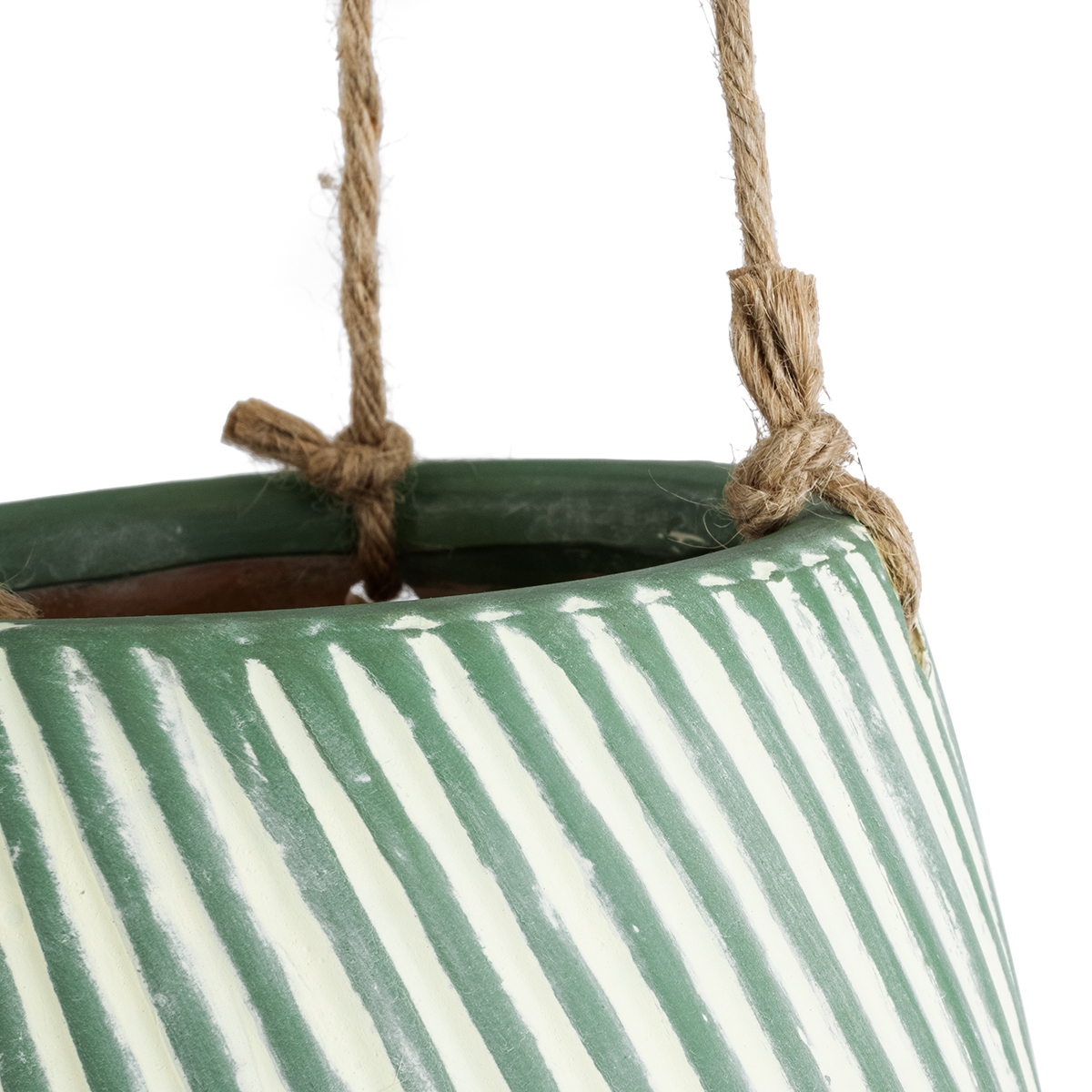 GloboStar® Artificial Garden BUBASTIS 20527 Κρεμαστό Διακοσμητικό Κεραμικό Κασπώ Γλάστρα - Flower Pot Λευκό με Πράσινο Φ13 x Υ10.5cm