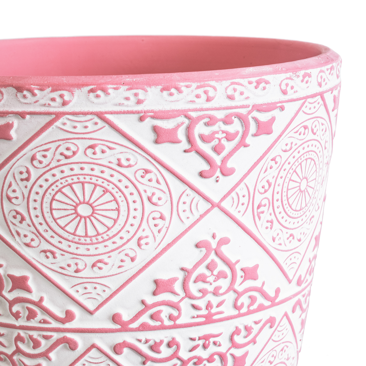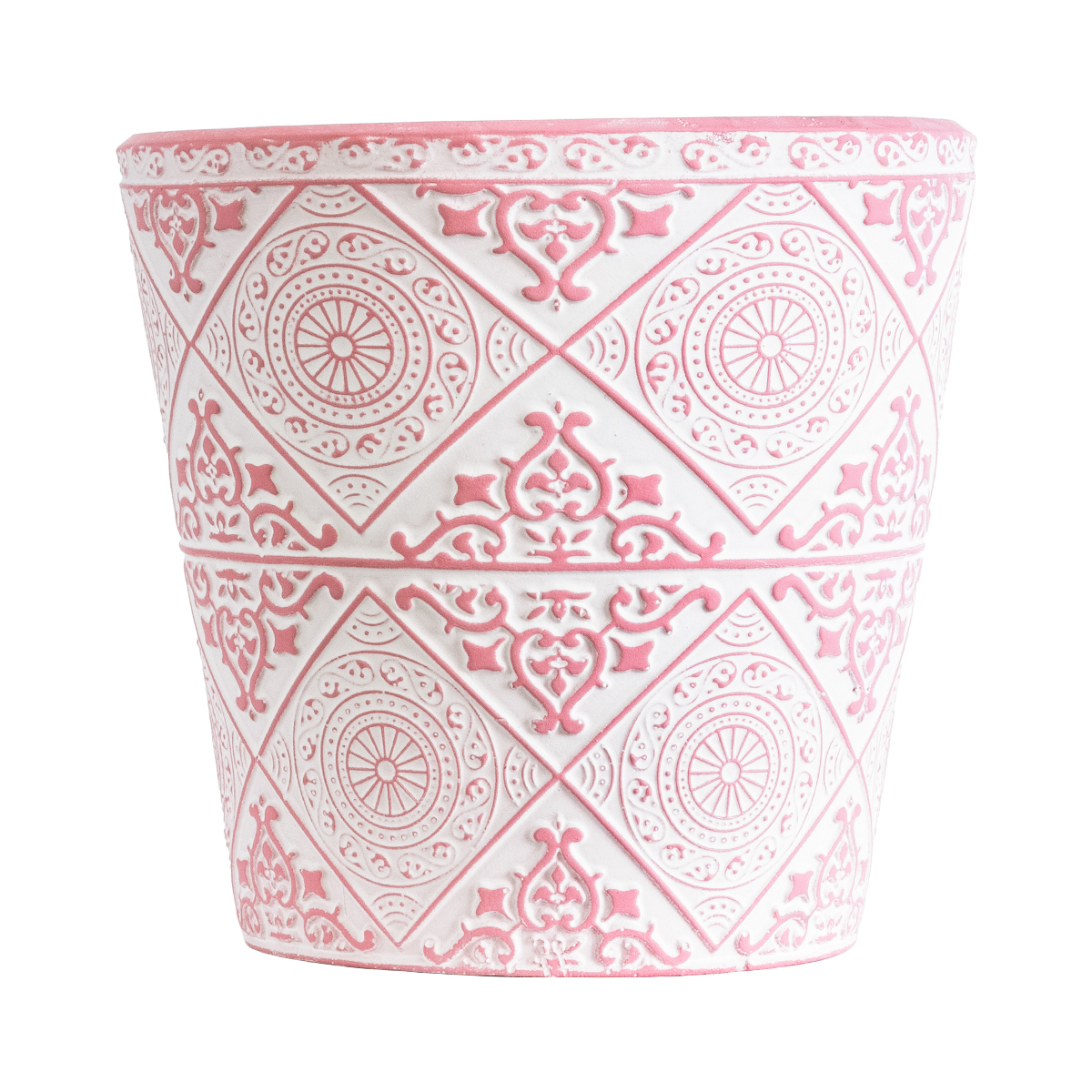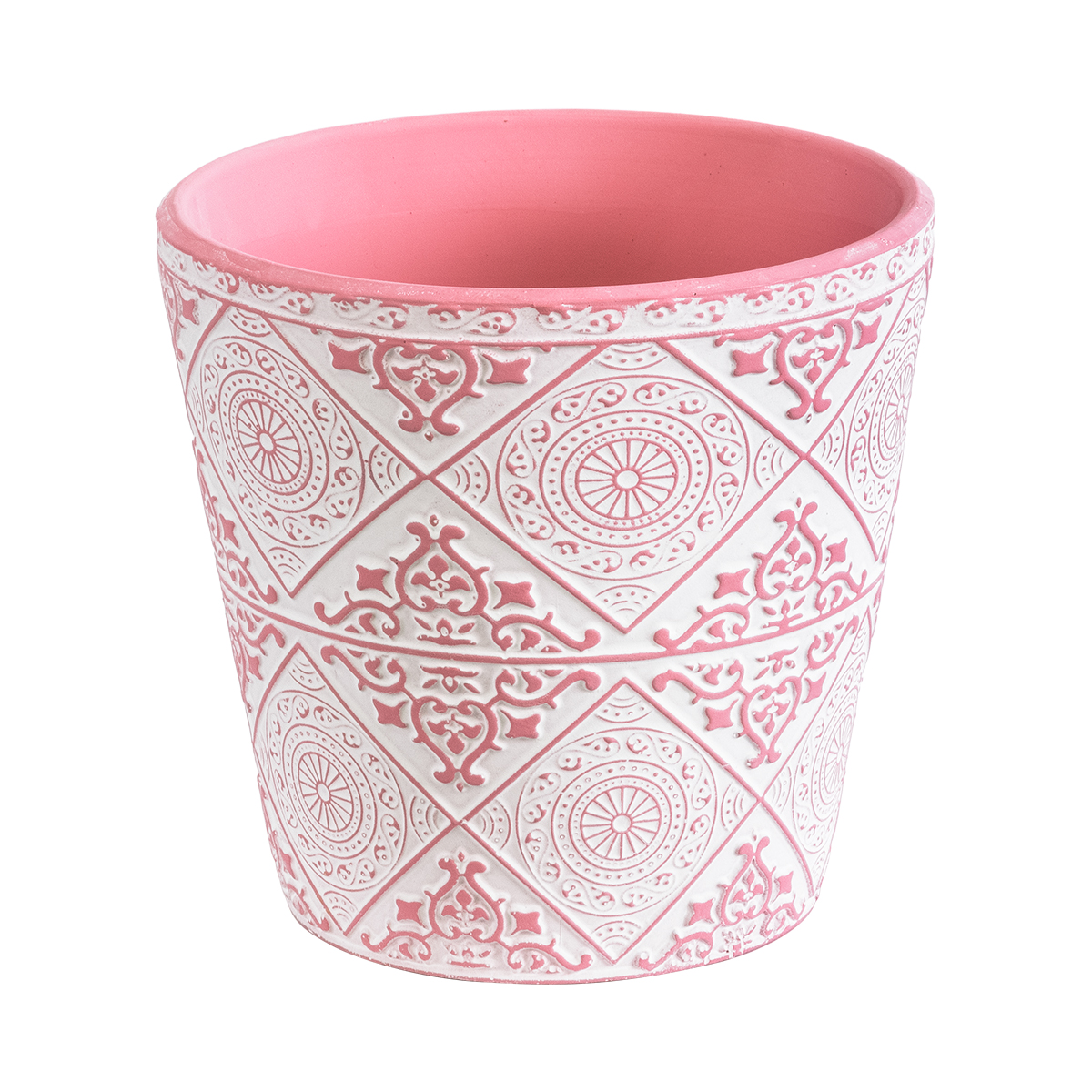GloboStar® Artificial Garden CAIRO 20516 Διακοσμητικό Κεραμικό Κασπώ Γλάστρα - Flower Pot Λευκό με Ροζ Φ14 x Υ13cm