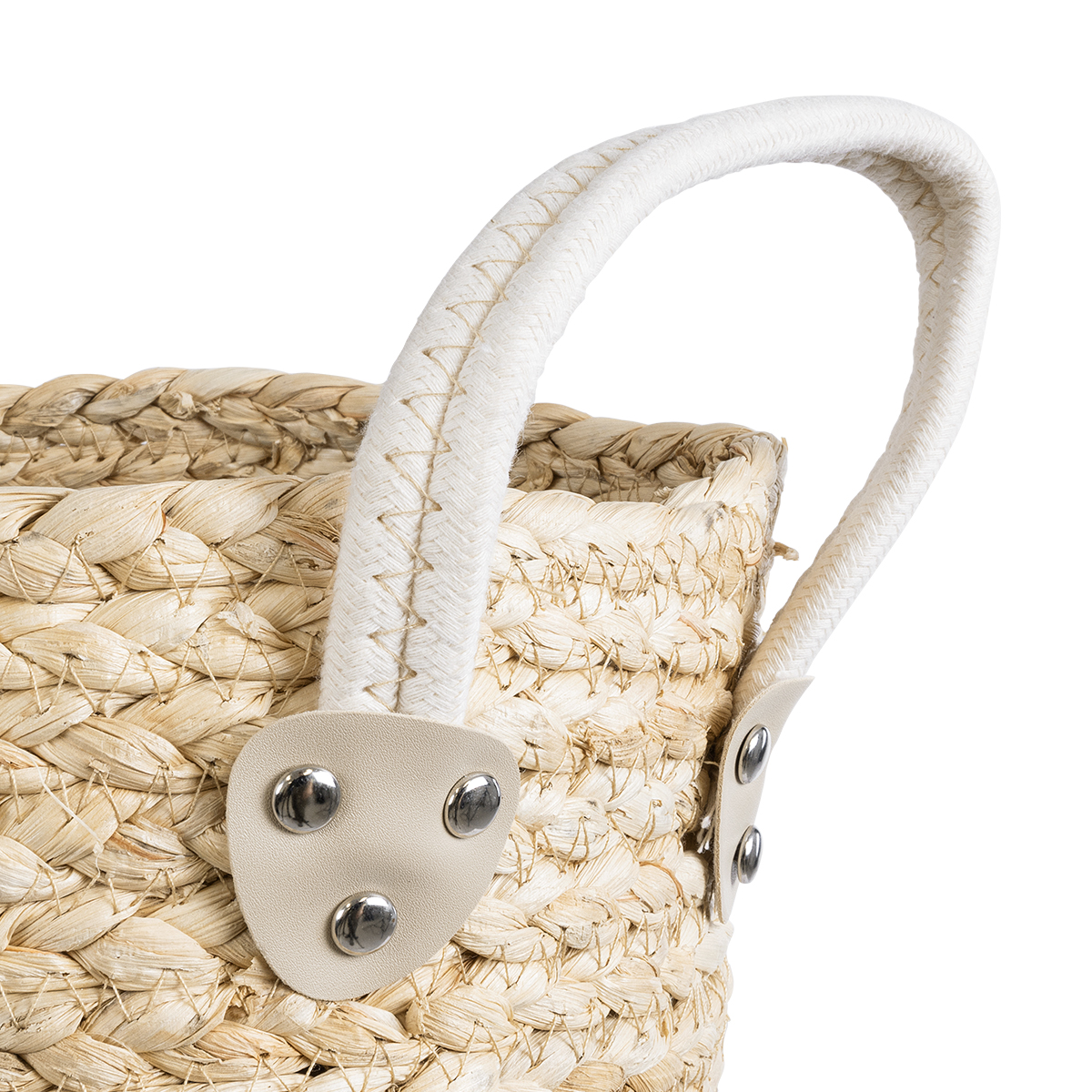 GloboStar® Artificial Garden CAROLINA 20578 Διακοσμητικό Πλεκτό Κασπώ Γλάστρα - Flower Pot Μπεζ με Καφέ και Λευκό Φ23 x Υ23cm