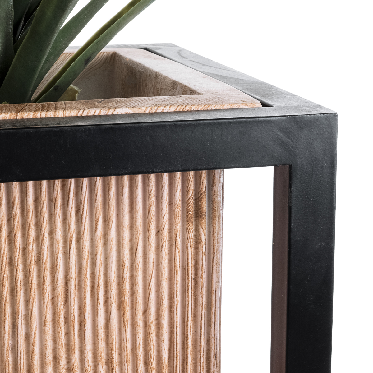 GloboStar® Artificial Garden CASSIANO 20753 Επιδαπέδιο Μεταλλικό Τσιμεντένιο Κασπώ Γλάστρα - Flower Pot Καφέ με Μαύρο Μ36 x Π36 x Υ90cm