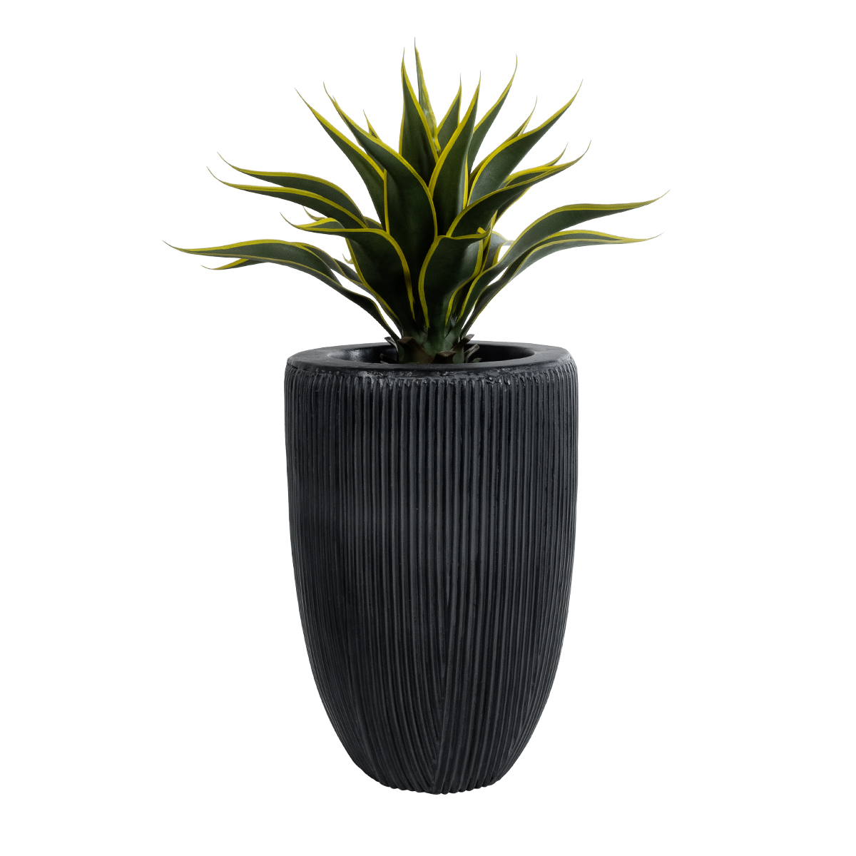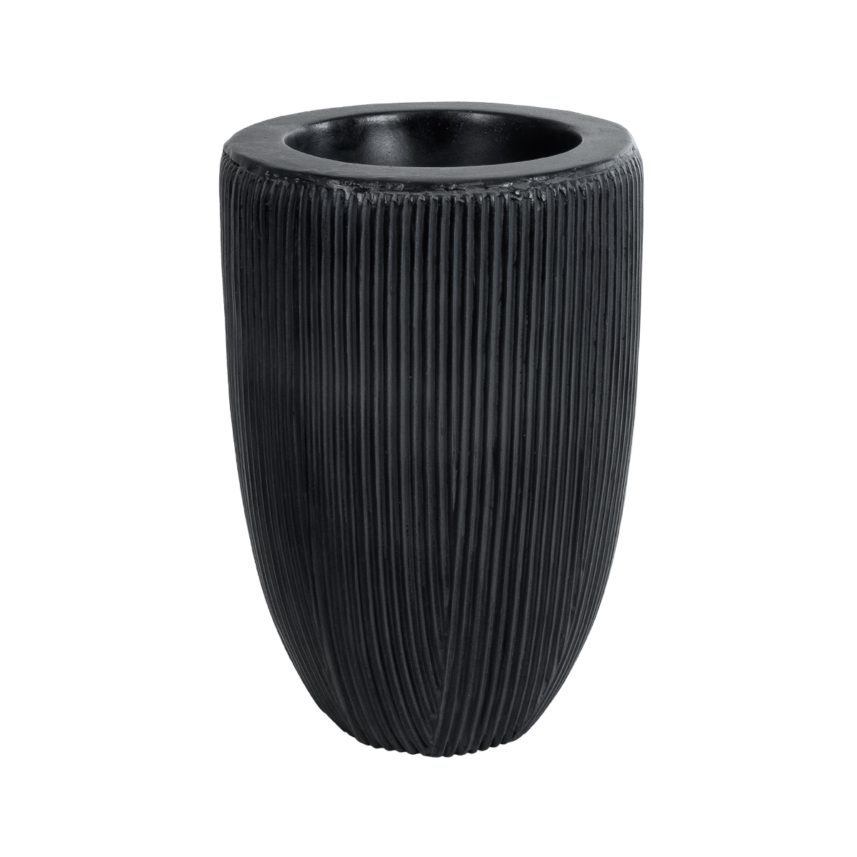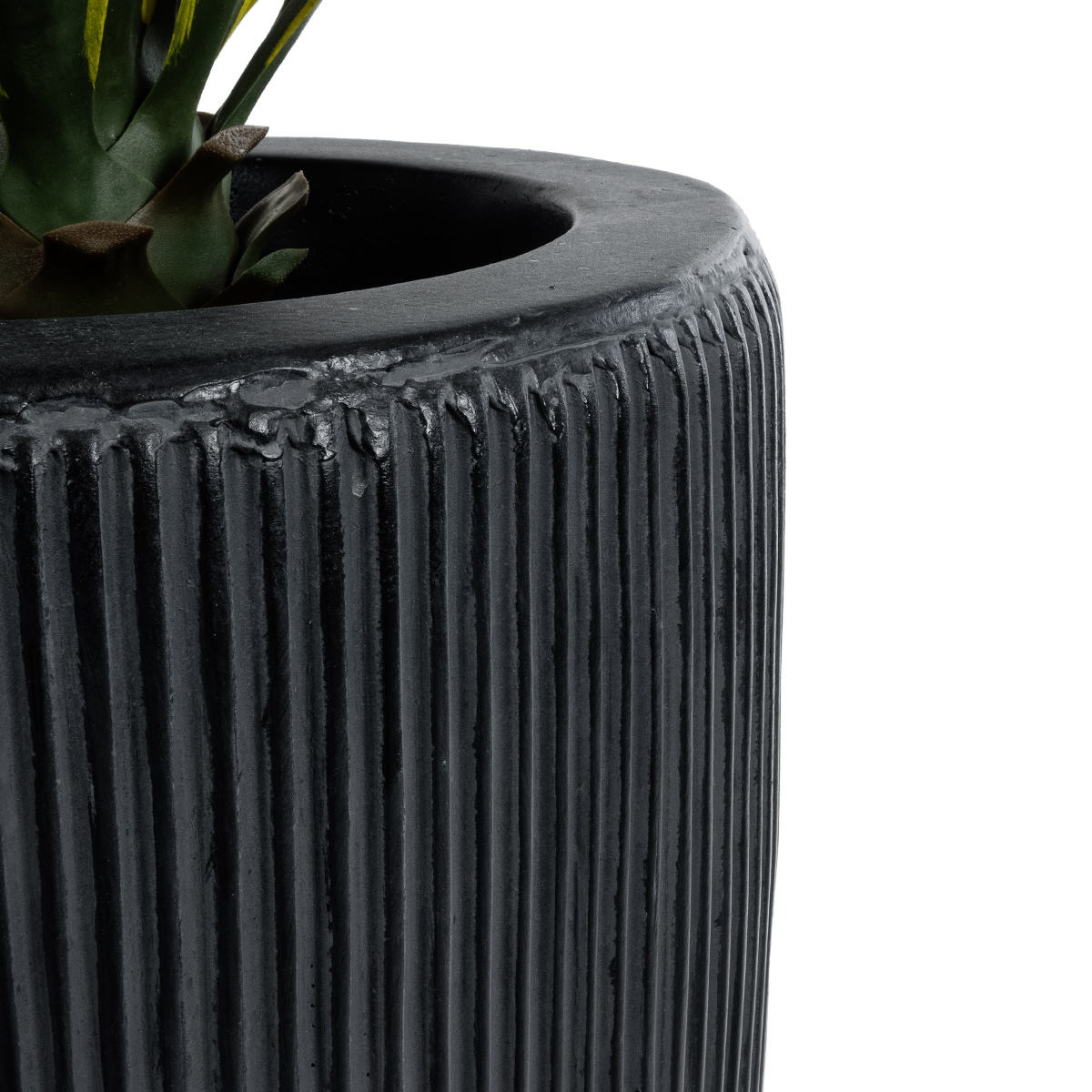 GloboStar® Artificial Garden CASTLE 20793 Διακοσμητικό Πολυεστερικό Τσιμεντένιο Κασπώ Γλάστρα - Flower Pot Μαύρο Φ35 x Υ54cm