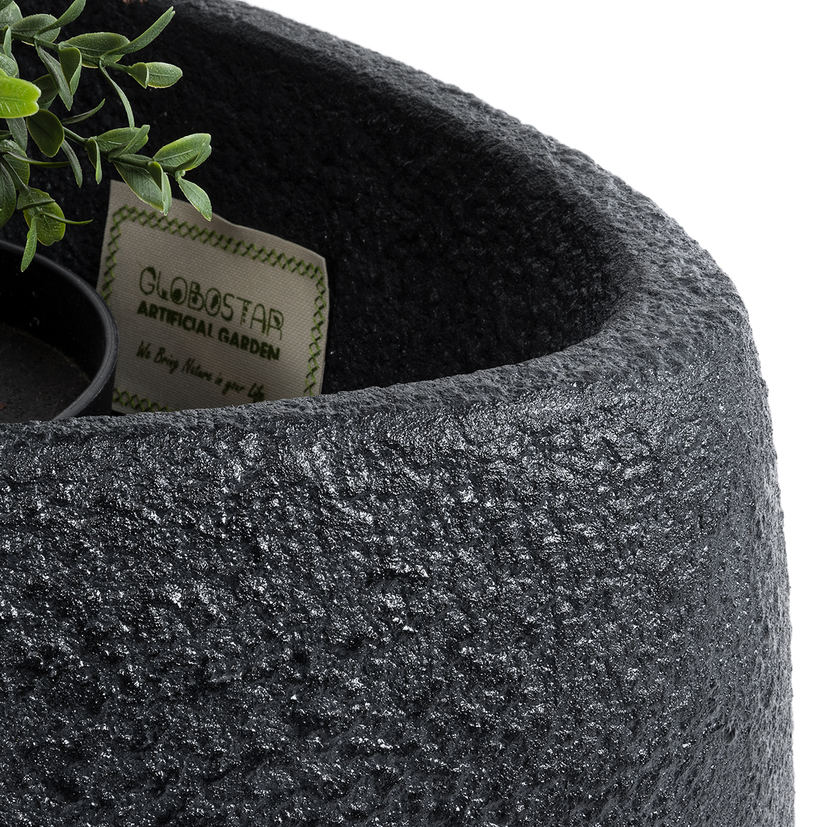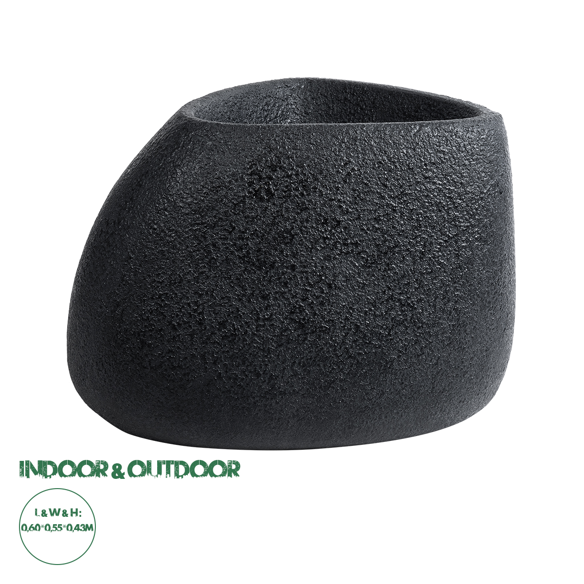 GloboStar® Artificial Garden CHLOE 20708 Επιδαπέδιο Πολυεστερικό Τσιμεντένιο Κασπώ Γλάστρα - Flower Pot Μαύρο Μ60 x Π55 x Υ43cm