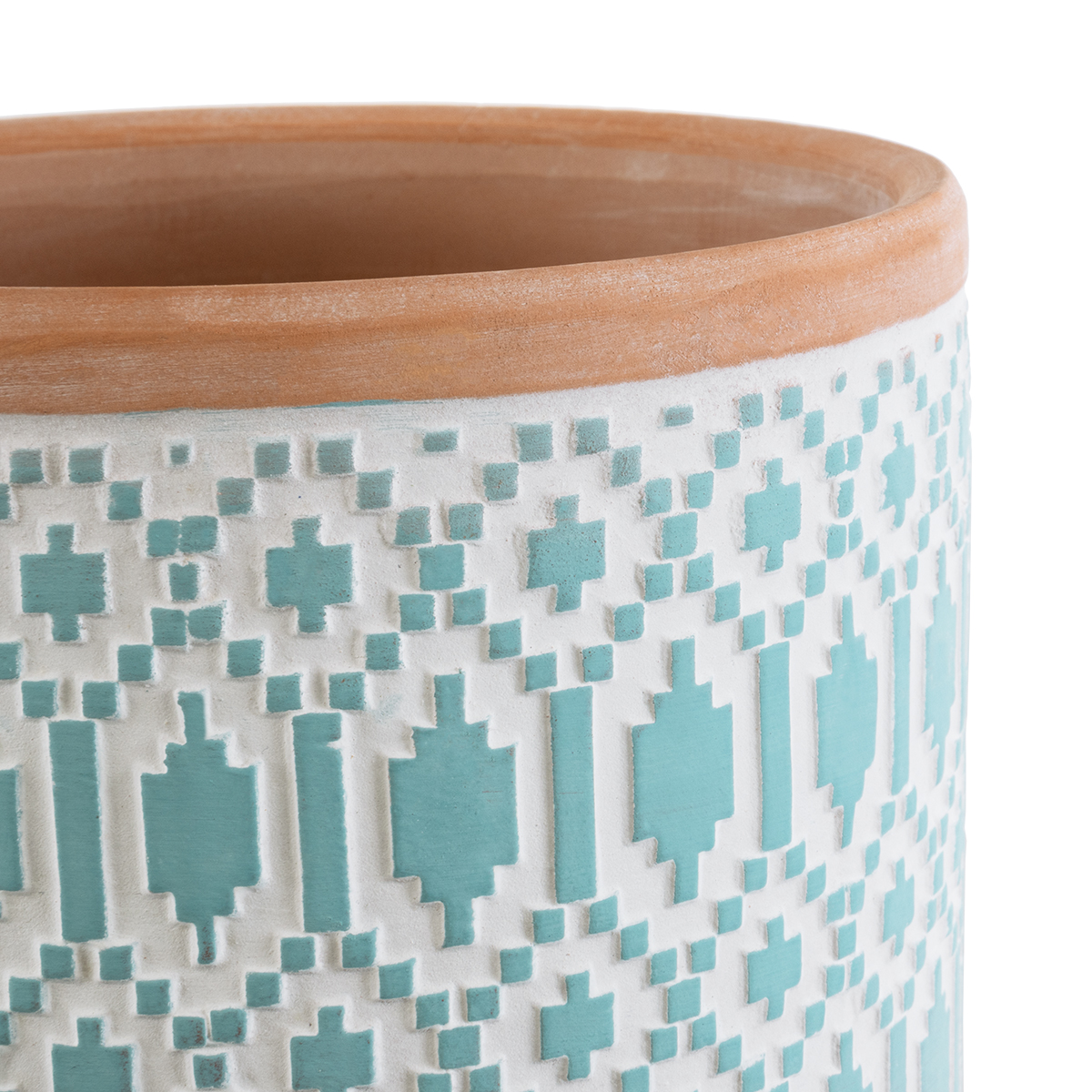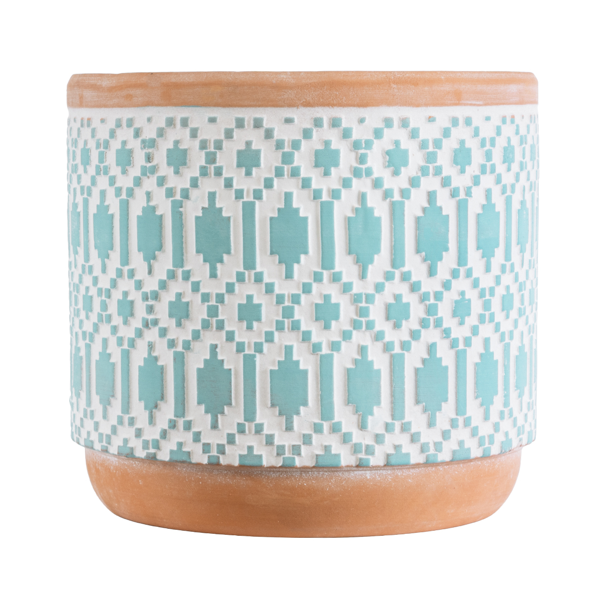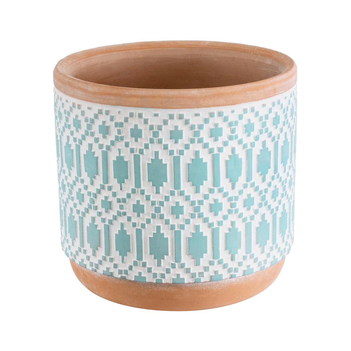 GloboStar® Artificial Garden DELHI 20523 Διακοσμητικό Κεραμικό Κασπώ Γλάστρα - Flower Pot Γαλάζιο με Λευκό και Μπεζ Φ14.5 x Υ13cm