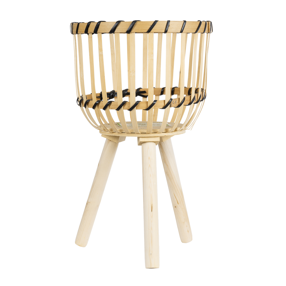 GloboStar® Artificial Garden FOLEGANDROS 20583 Διακοσμητικό Ξύλινο Κασπώ Γλάστρα - Flower Pot Μπεζ Φ28 x Υ47cm