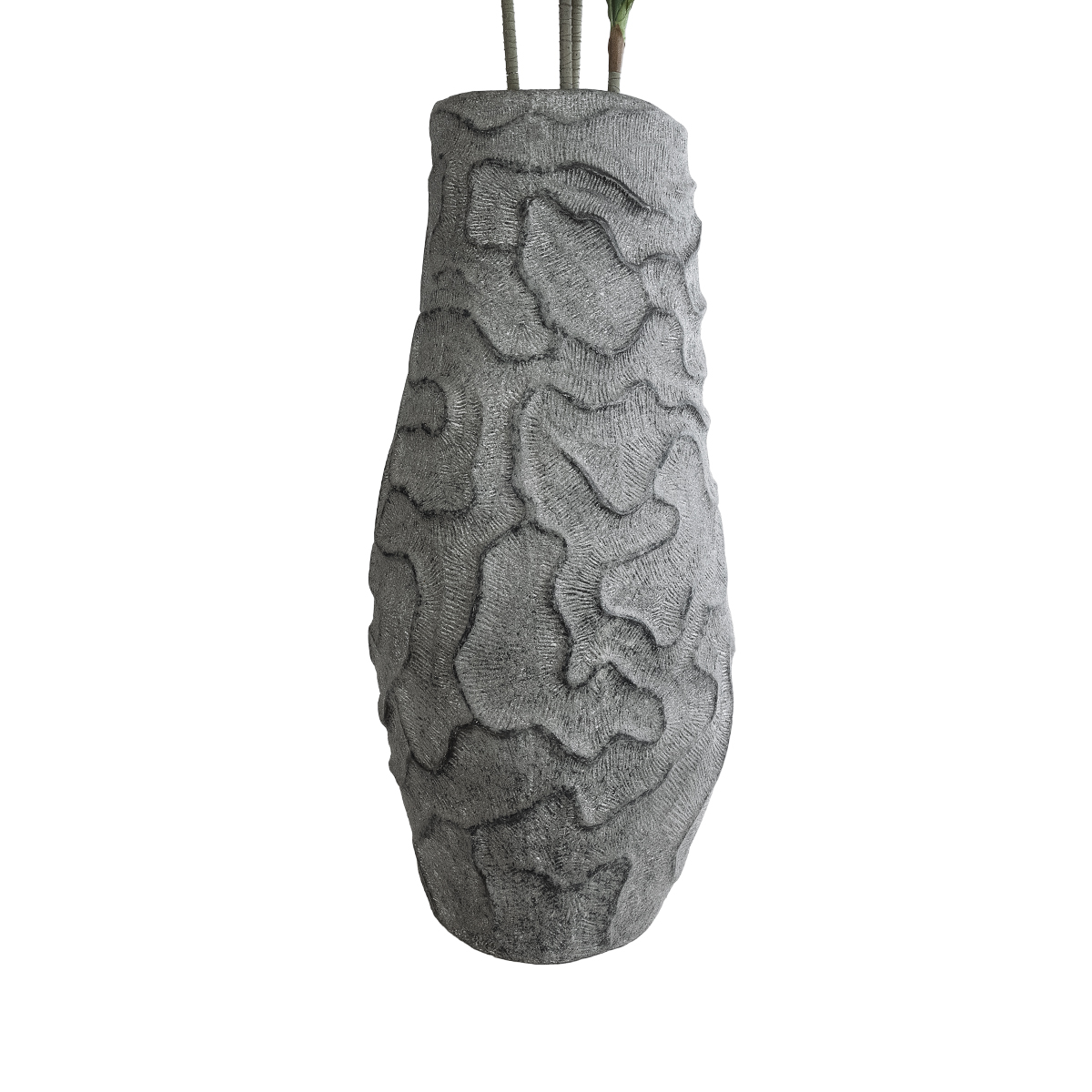 GloboStar® Artificial Garden GALICIA 20764 Επιδαπέδιο Πολυεστερικό Τσιμεντένιο Κασπώ Γλάστρα - Flower Pot Γκρι Φ50 x Υ110cm