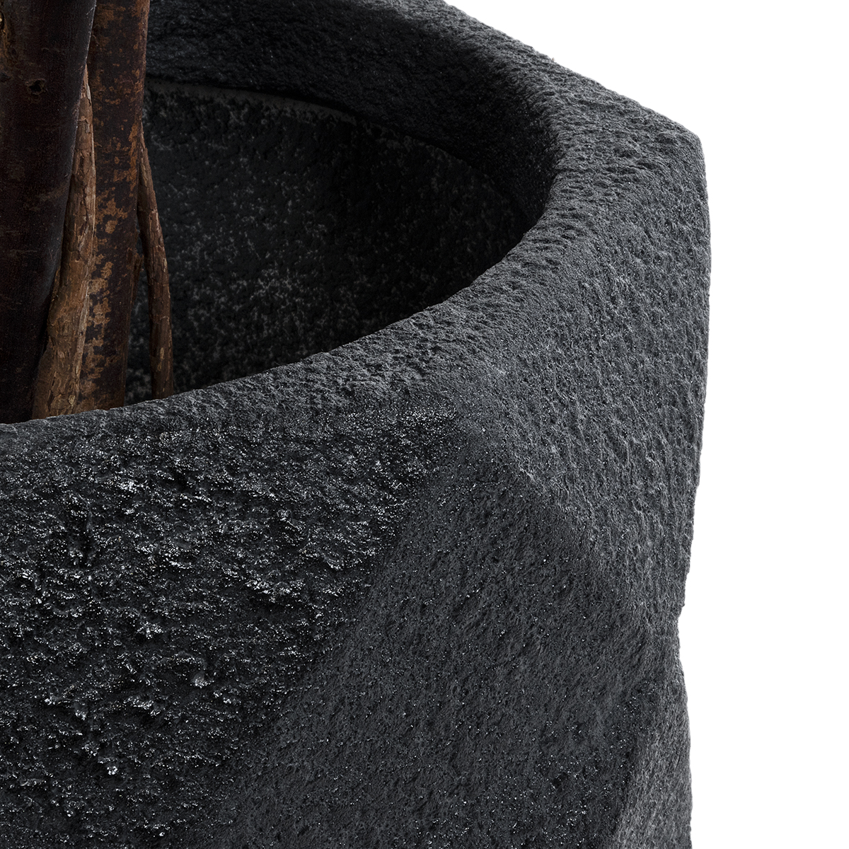 GloboStar® Artificial Garden GENOVA 20726 Επιδαπέδιο Πολυεστερικό Τσιμεντένιο Κασπώ Γλάστρα - Flower Pot Μαύρο Φ40 x Υ30cm