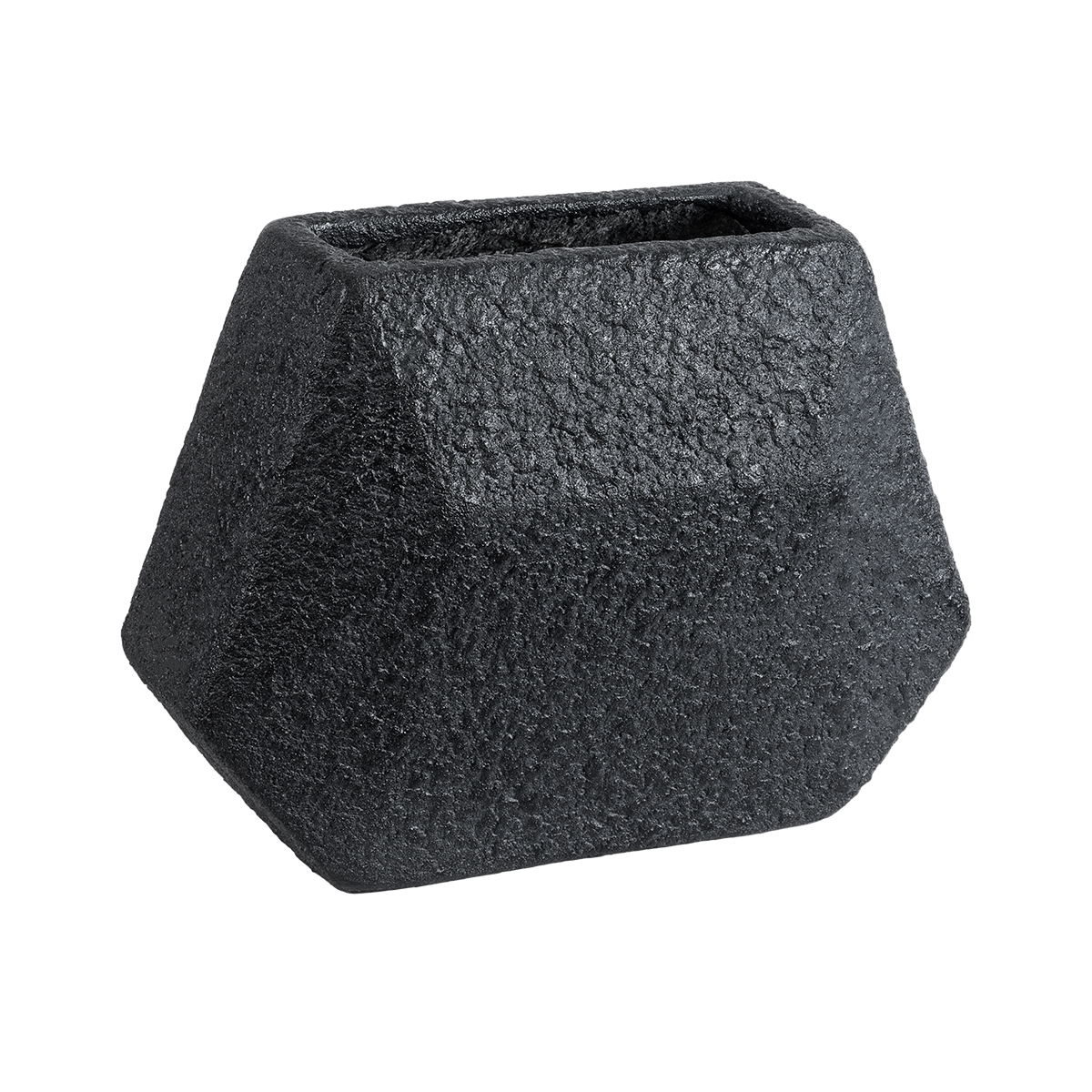GloboStar® Artificial Garden GREENWICH 20787 Επιδαπέδιο Πολυεστερικό Τσιμεντένιο Κασπώ Γλάστρα - Flower Pot Μαύρο Μ24 x Π14 x Υ20cm