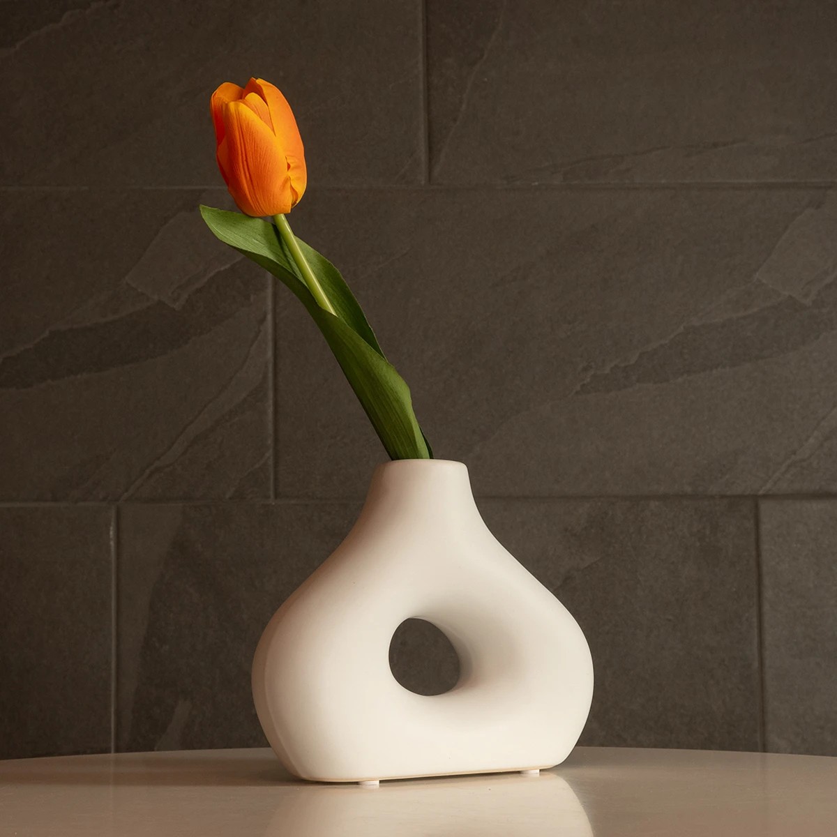 GloboStar® Artificial Garden HORIZON 21253 Διακοσμητικό Κεραμικό Βάζo Λευκό Π18 x Μ6 x Υ15 cm