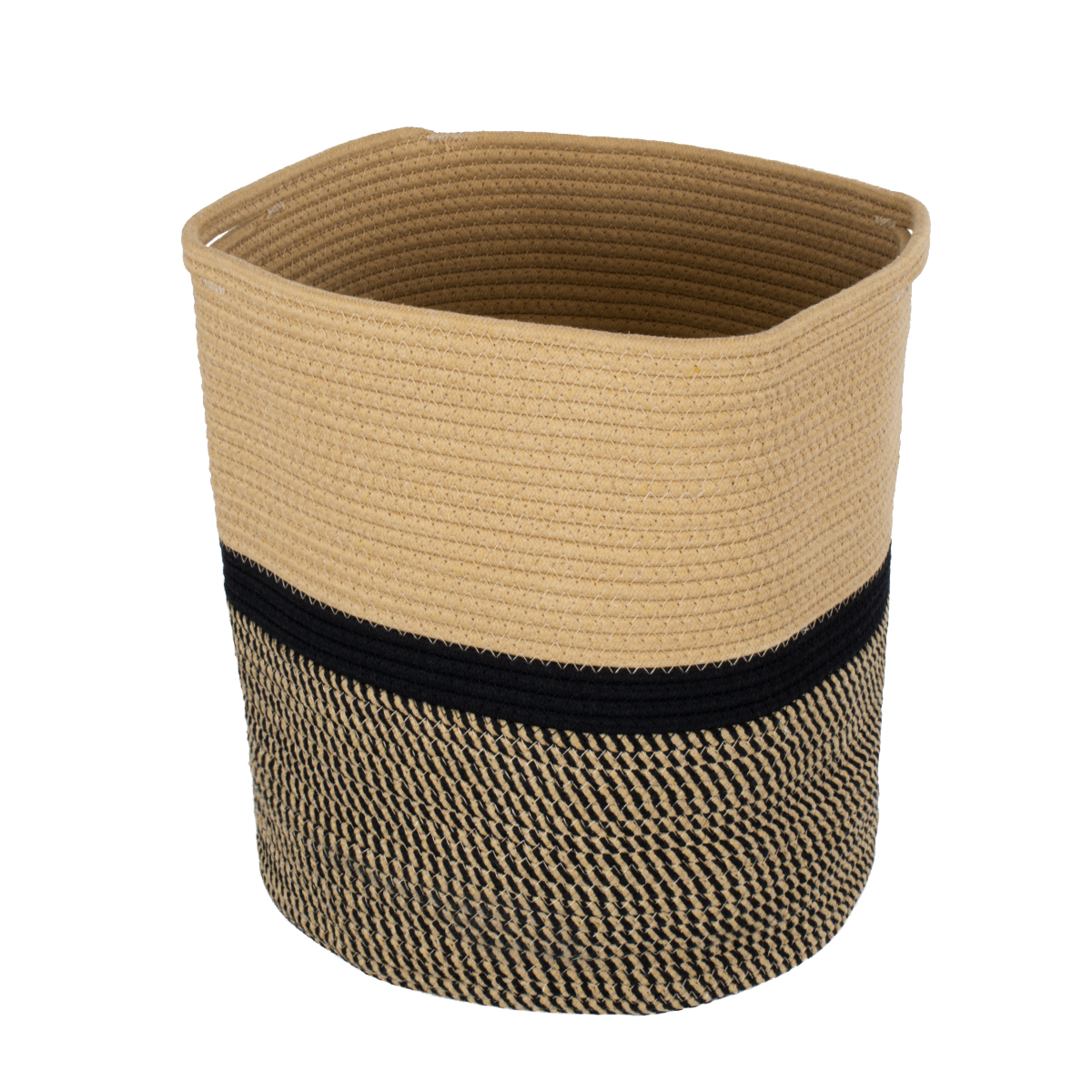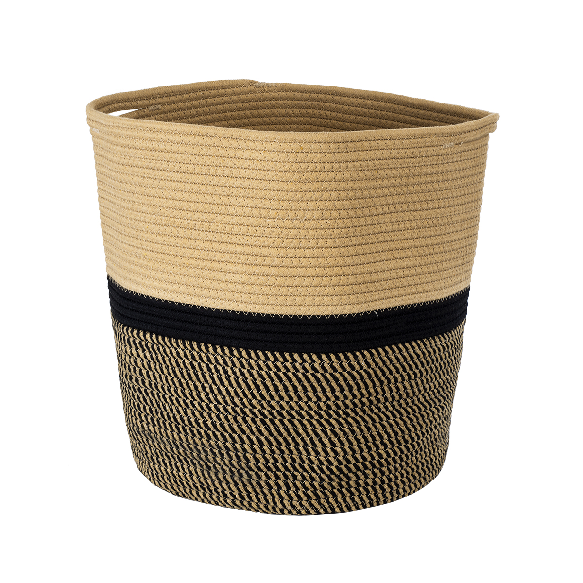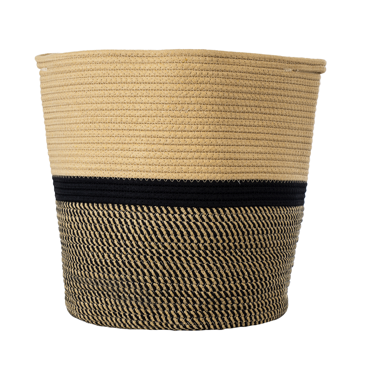 GloboStar® Artificial Garden HYDRA 20204 Διακοσμητικό Πλεκτό Καλάθι - Κασπώ Γλάστρα - Flower Pot Μπεζ με Μαύρο Π35cm x Υ38cm