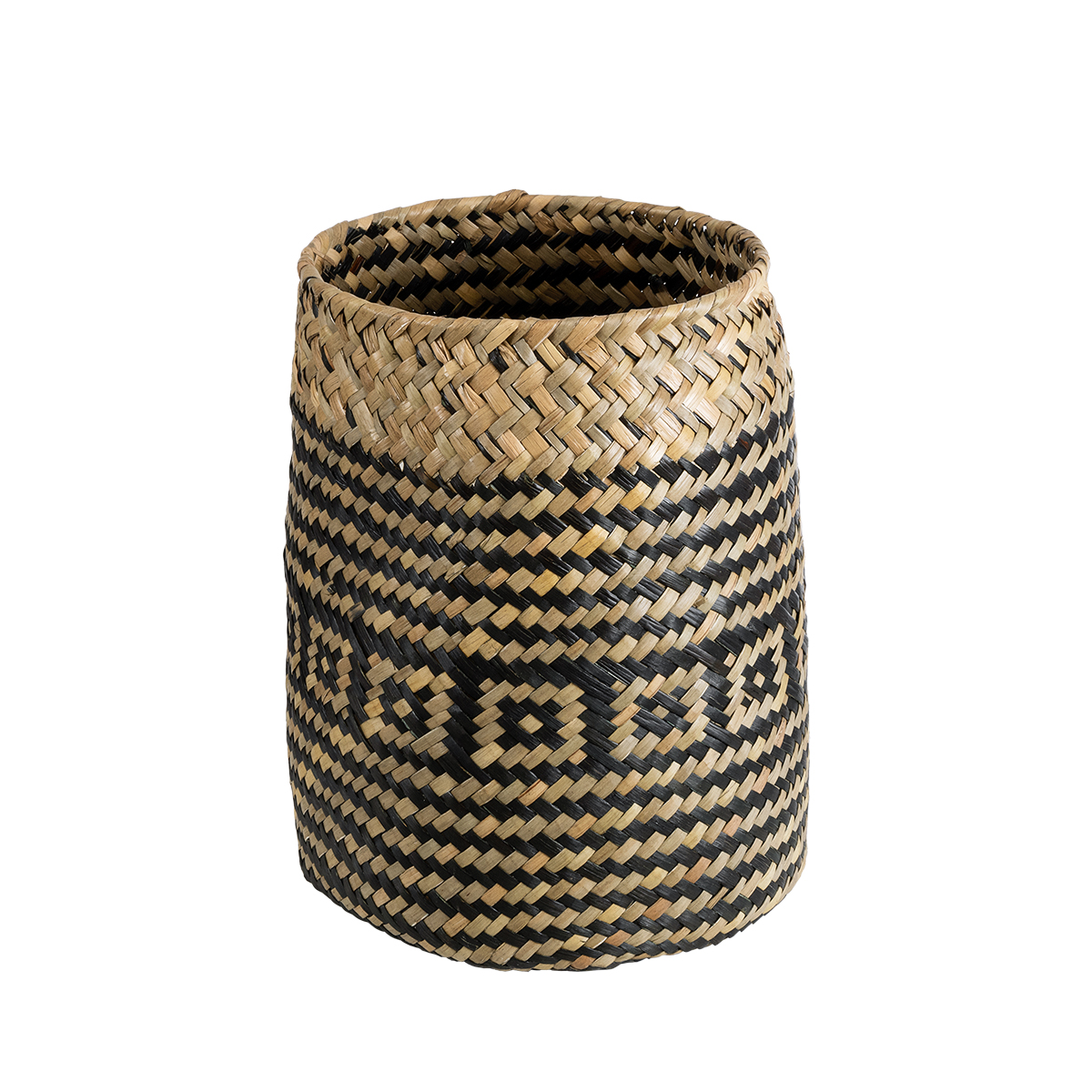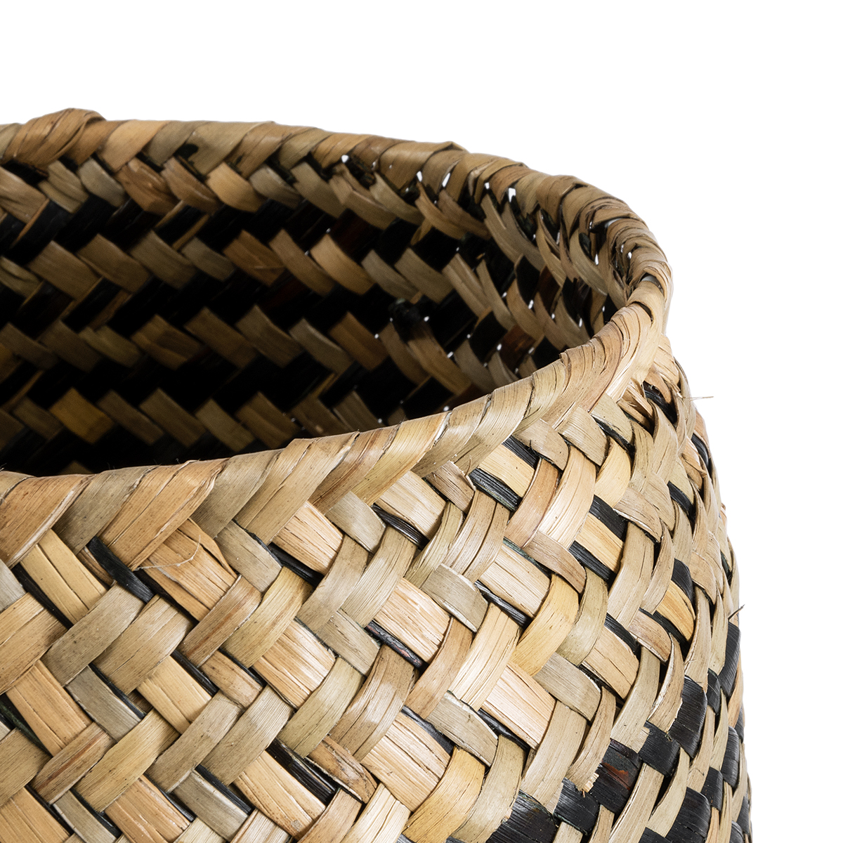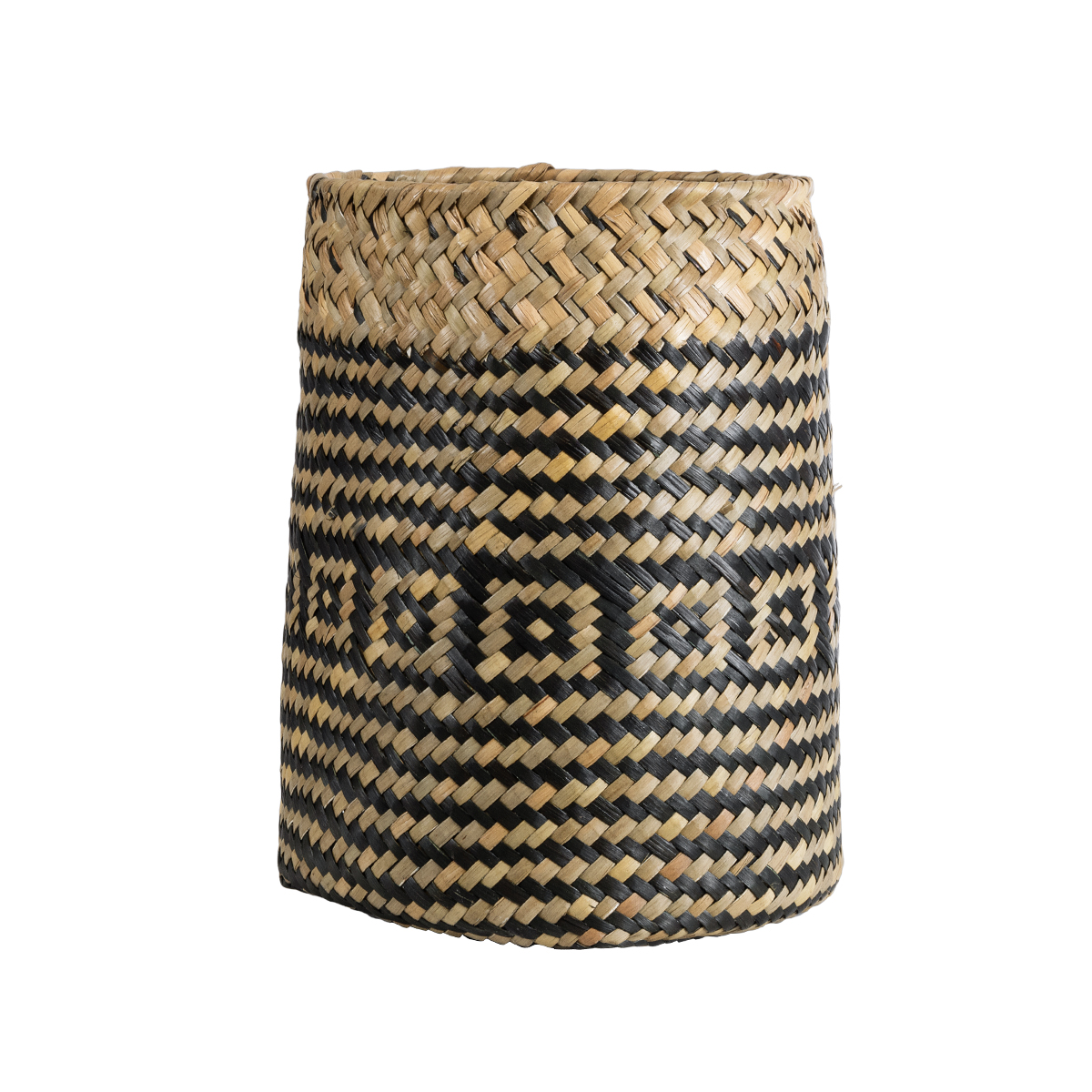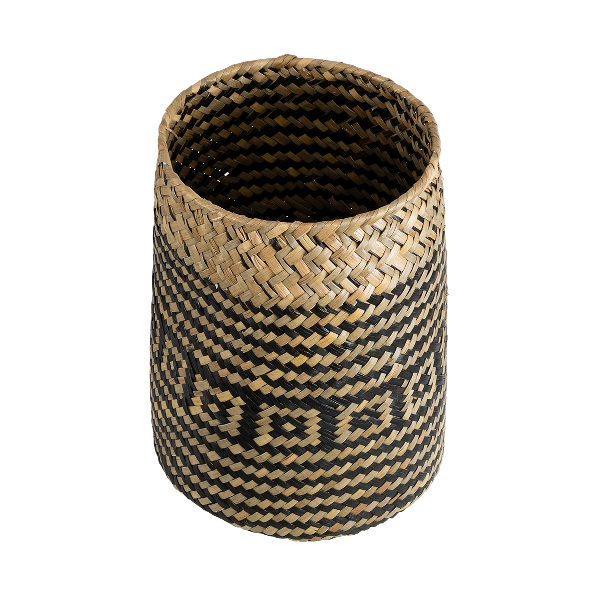 GloboStar® Artificial Garden INDIANA 20584 Διακοσμητικό Πλεκτό Καλάθι - Κασπώ Γλάστρα - Flower Pot Καφέ με Μαύρο Φ18 x Υ22cm