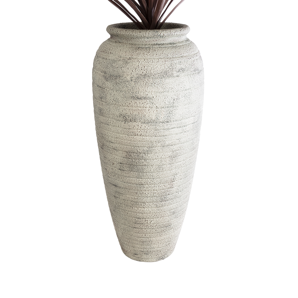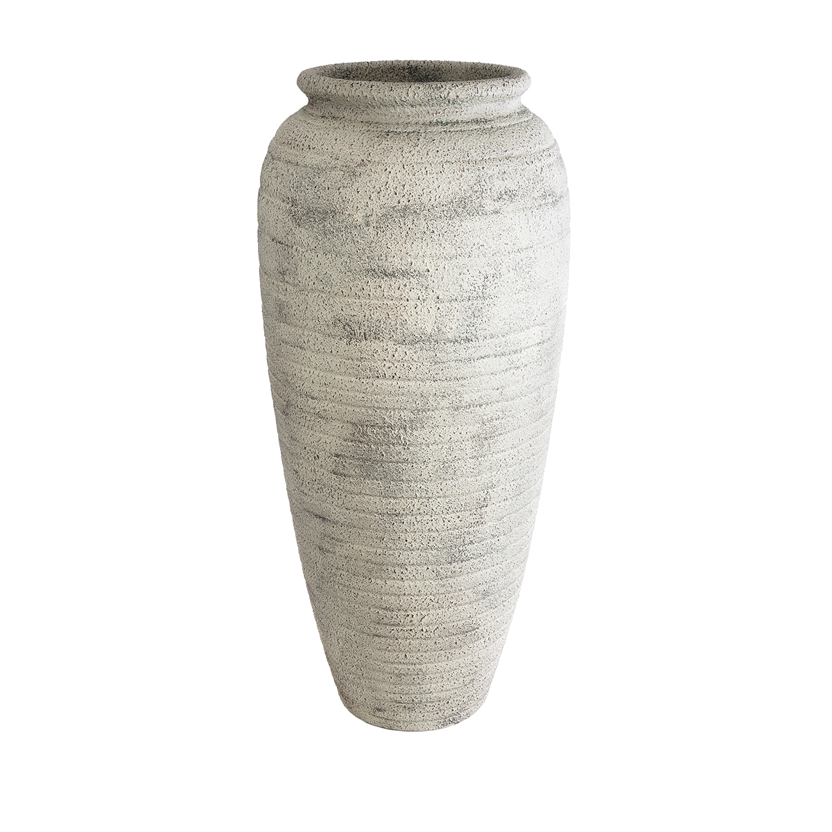 GloboStar® Artificial Garden IRISH 20720 Επιδαπέδιο Πολυεστερικό Τσιμεντένιο Κασπώ Γλάστρα - Flower Pot Μπεζ με Γκρι Φ55 x Υ120cm