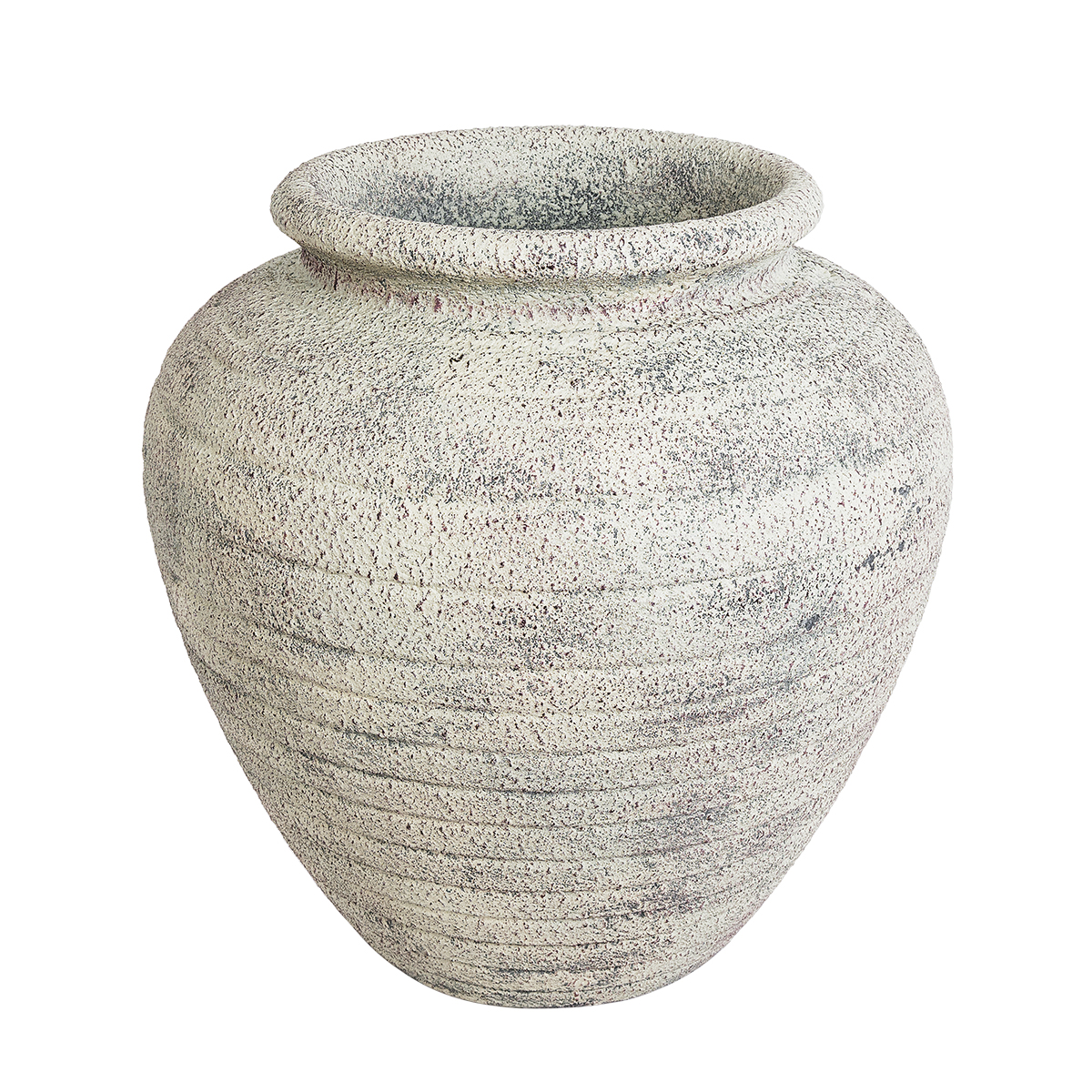 GloboStar® Artificial Garden IRISH 20722 Επιδαπέδιο Πολυεστερικό Τσιμεντένιο Κασπώ Γλάστρα - Flower Pot Λευκό με Μπεζ Φ55 x Υ60cm