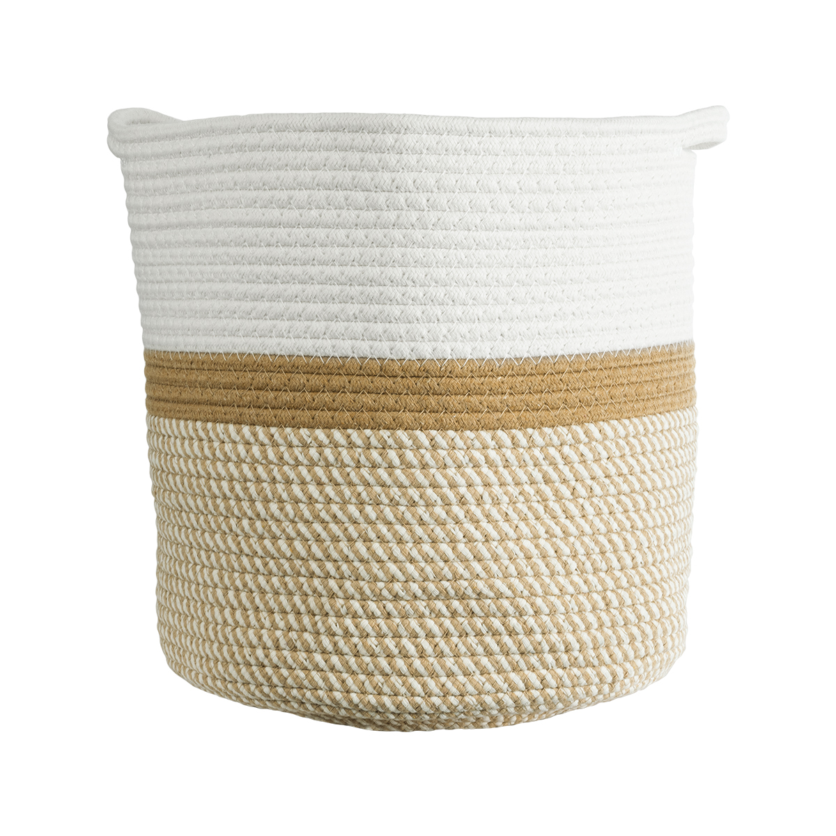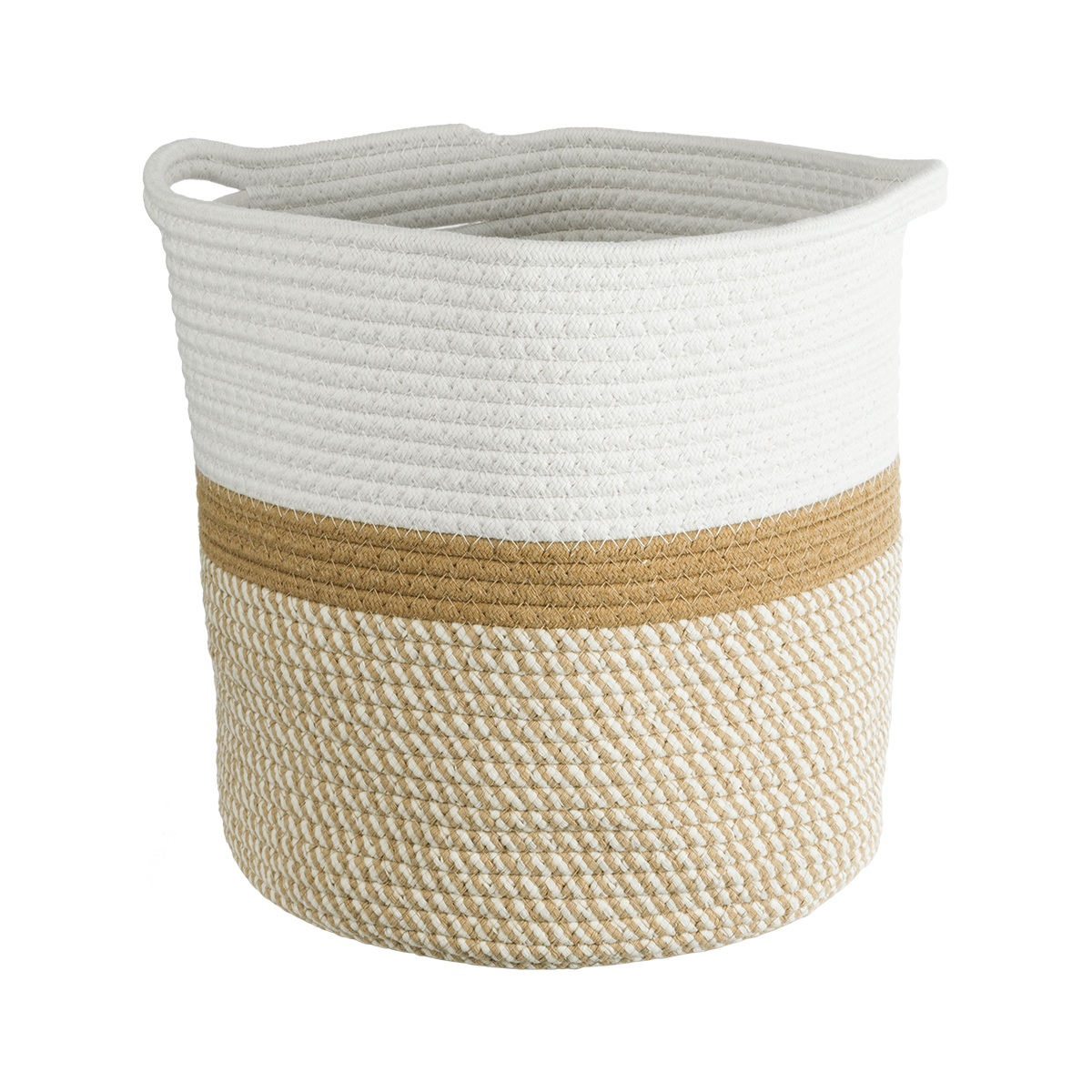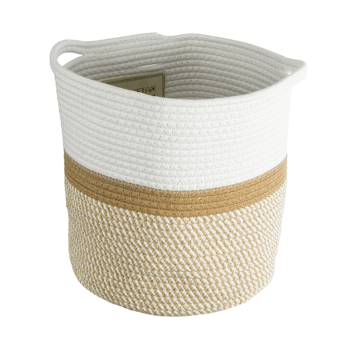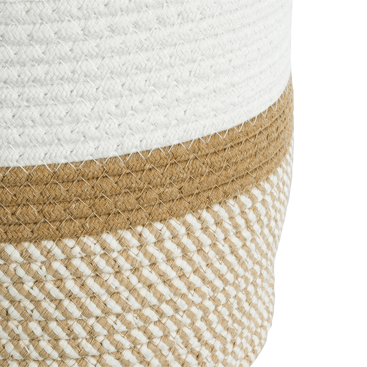 GloboStar® Artificial Garden ITHAKI 20325 Διακοσμητικό Πλεκτό Καλάθι - Κασπώ Γλάστρα - Flower Pot Μπεζ με Λευκό Φ30 x Υ30cm