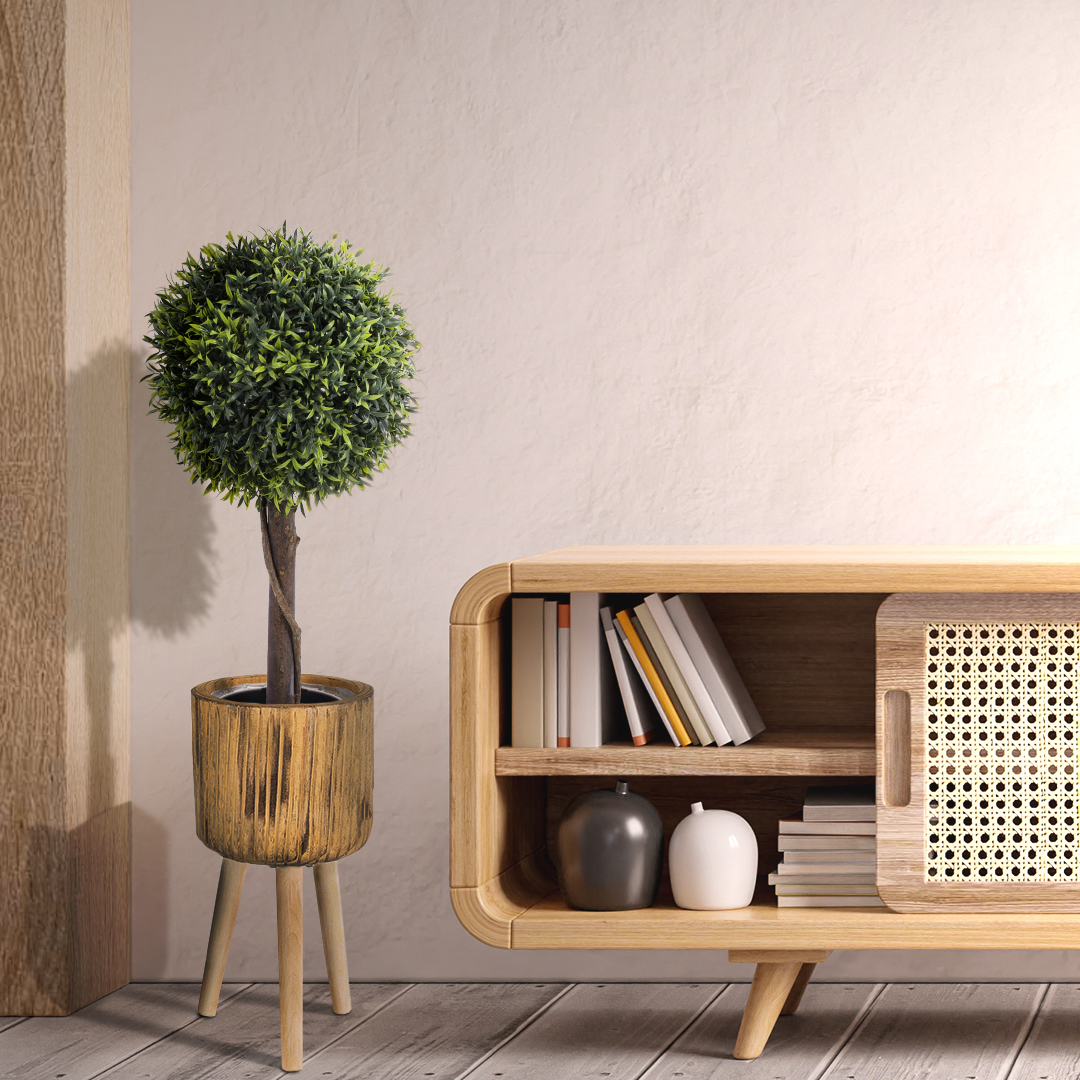 GloboStar® Artificial Garden JAMAICA 20553 Διακοσμητικό Ξύλινο Κασπώ Γλάστρα - Flower Pot Καφέ Φ18 x Υ38cm