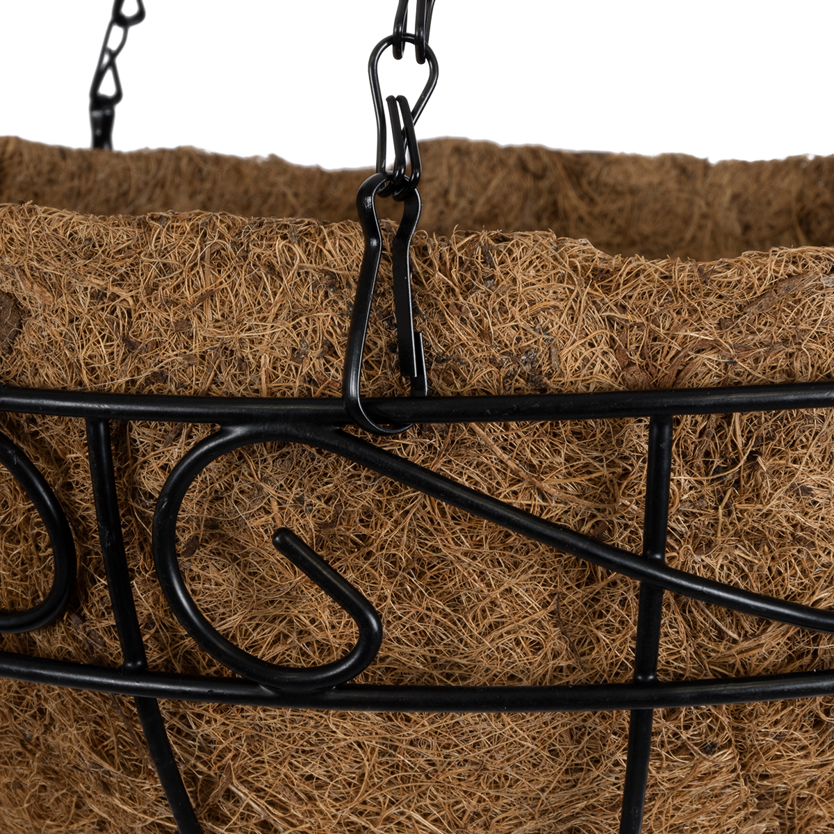 GloboStar® Artificial Garden KARYSTOS 20563 Κρεμαστό Διακοσμητικό Κασπώ Γλάστρα - Flower Pot από Φλοιό Καρύδας Καφέ με Μαύρη Μεταλλική Βάση Φ30 x Υ15cm