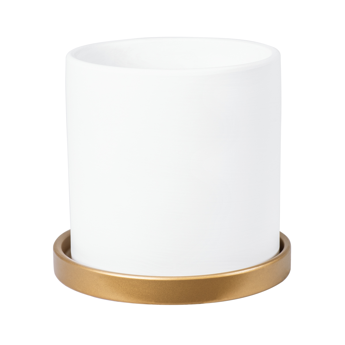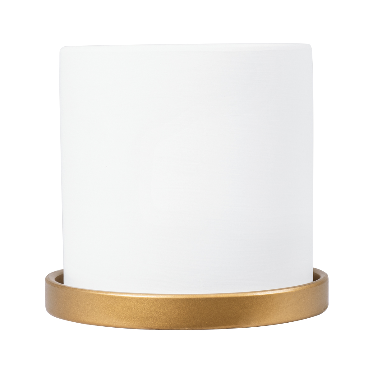 GloboStar® Artificial Garden KASOS 20444 Πήλινο Κεραμικό Κασπώ Γλάστρα - Flower Pot Λευκό με Χρυσό Φ15cm x Υ15cm