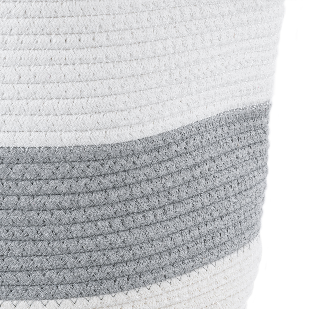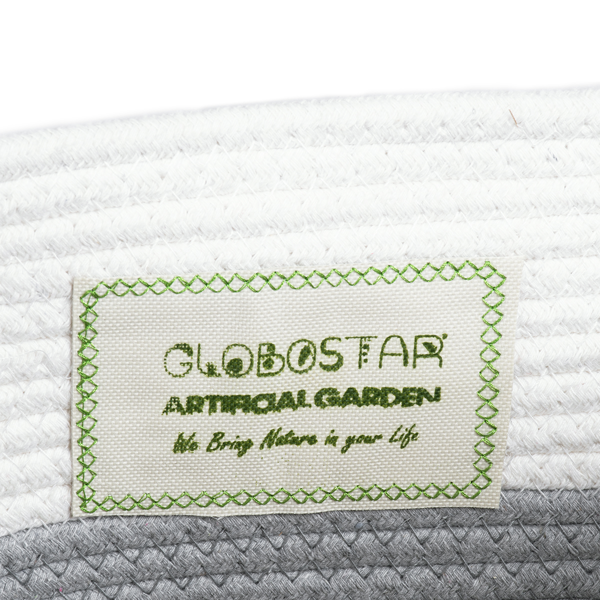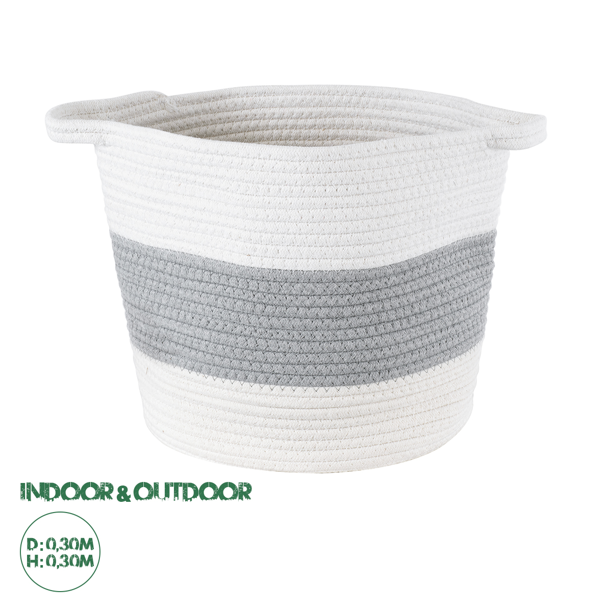 GloboStar® Artificial Garden KEFALONIA 20320 Διακοσμητικό Πλεκτό Καλάθι - Κασπώ Γλάστρα - Flower Pot Γκρι με Λευκό Φ30cm x Υ30cm