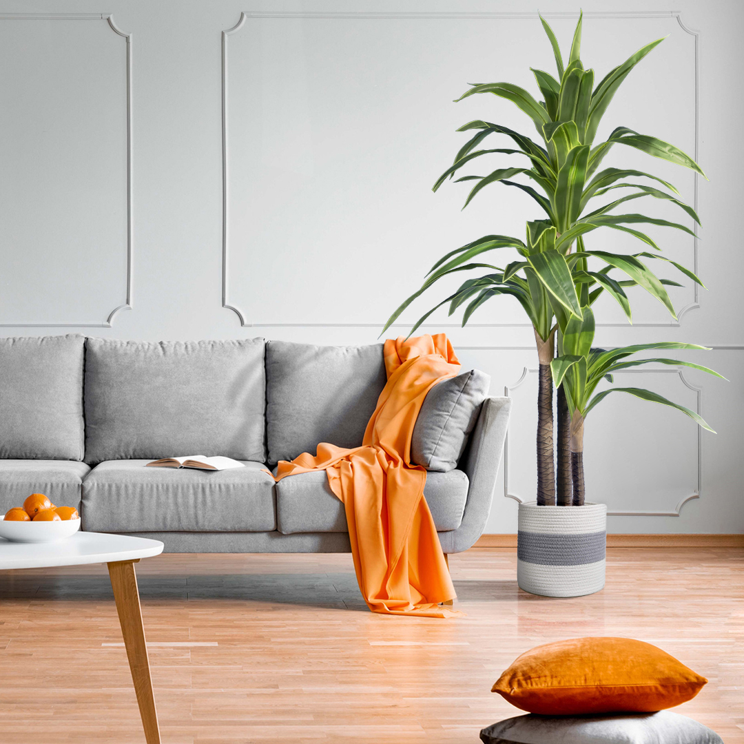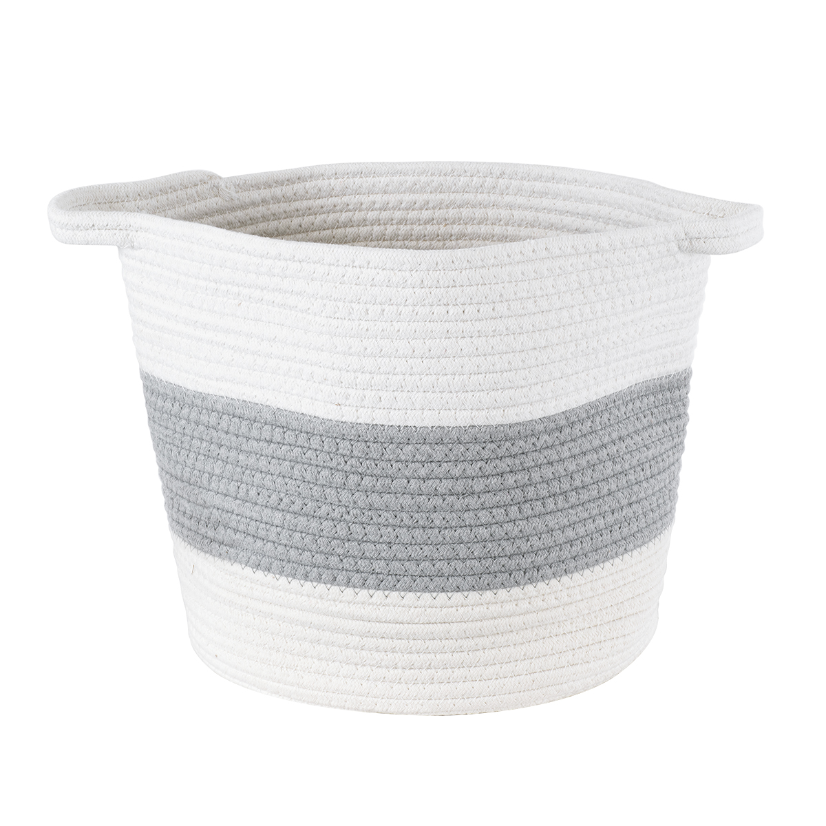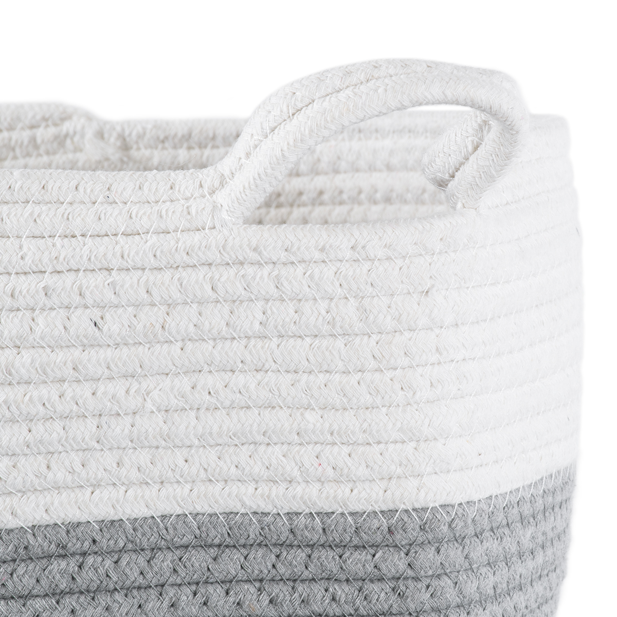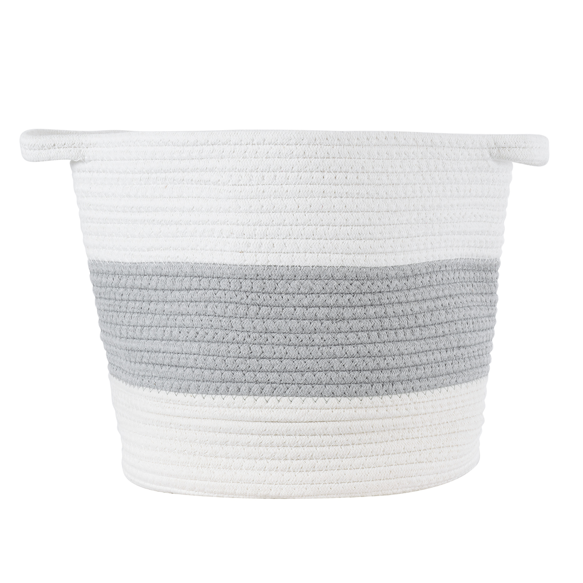 GloboStar® Artificial Garden KEFALONIA 20320 Διακοσμητικό Πλεκτό Καλάθι - Κασπώ Γλάστρα - Flower Pot Γκρι με Λευκό Φ30cm x Υ30cm