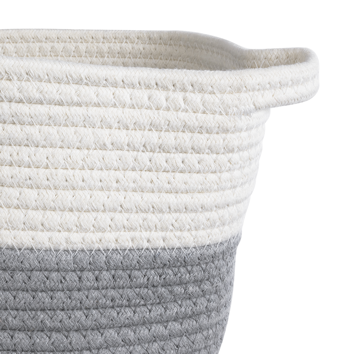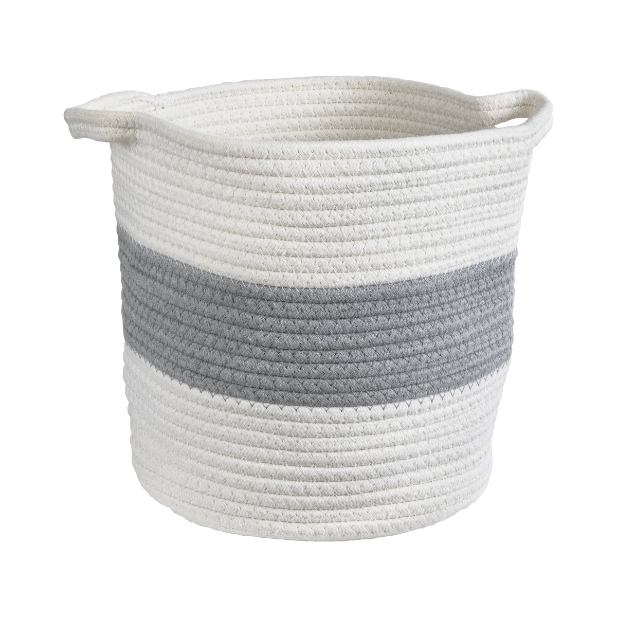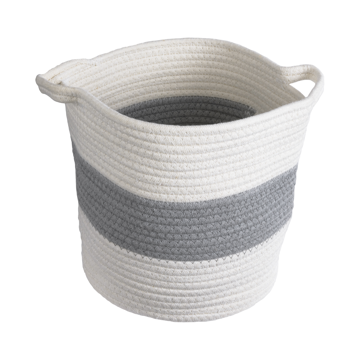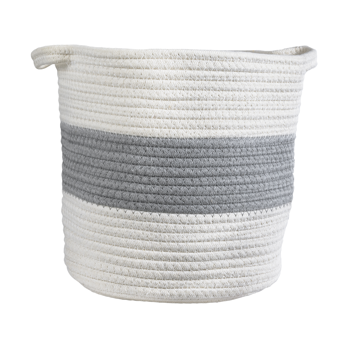 GloboStar® Artificial Garden KEFALONIA 20322 Διακοσμητικό Πλεκτό Καλάθι - Κασπώ Γλάστρα - Flower Pot Λευκό με Γκρι Φ25 x Υ25cm