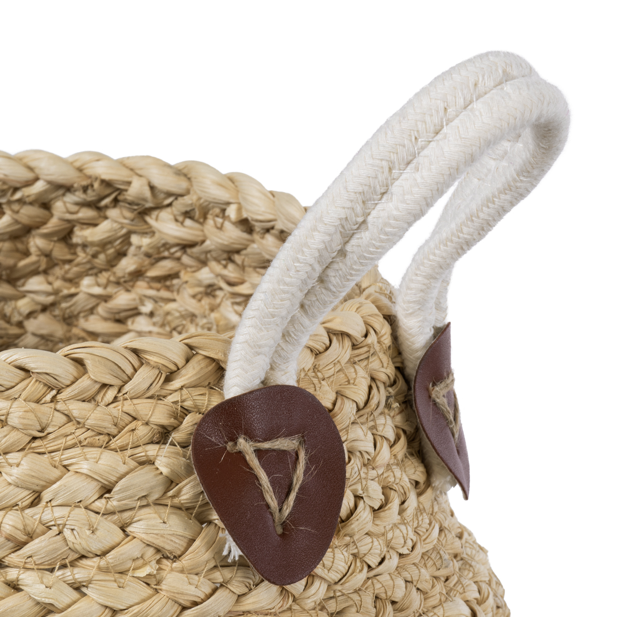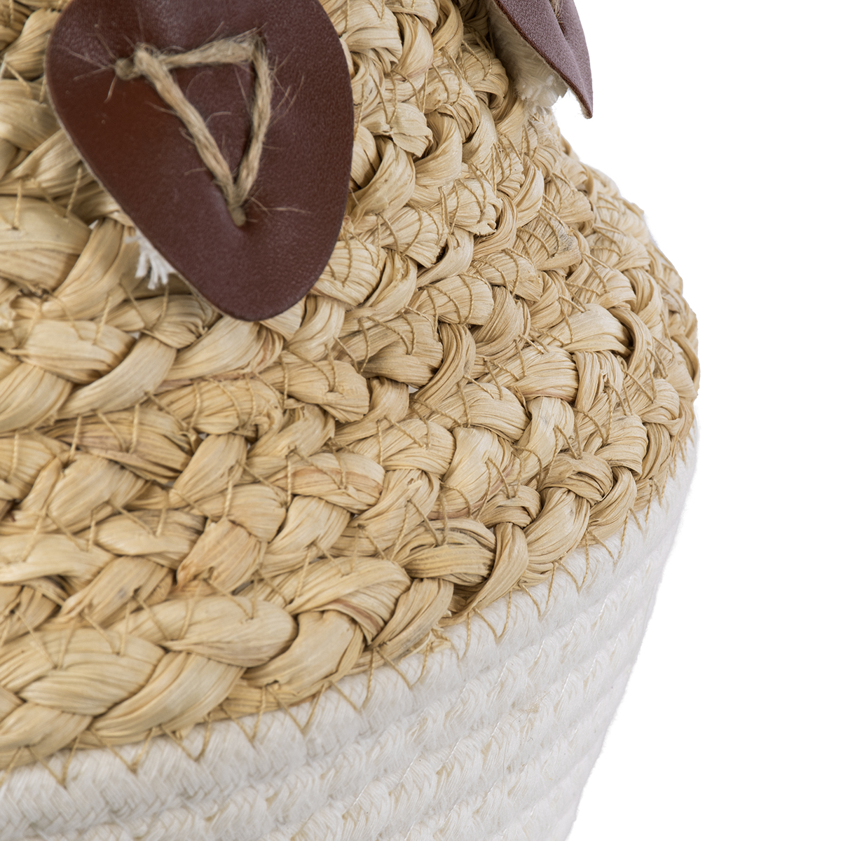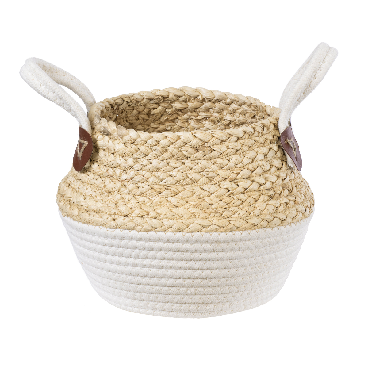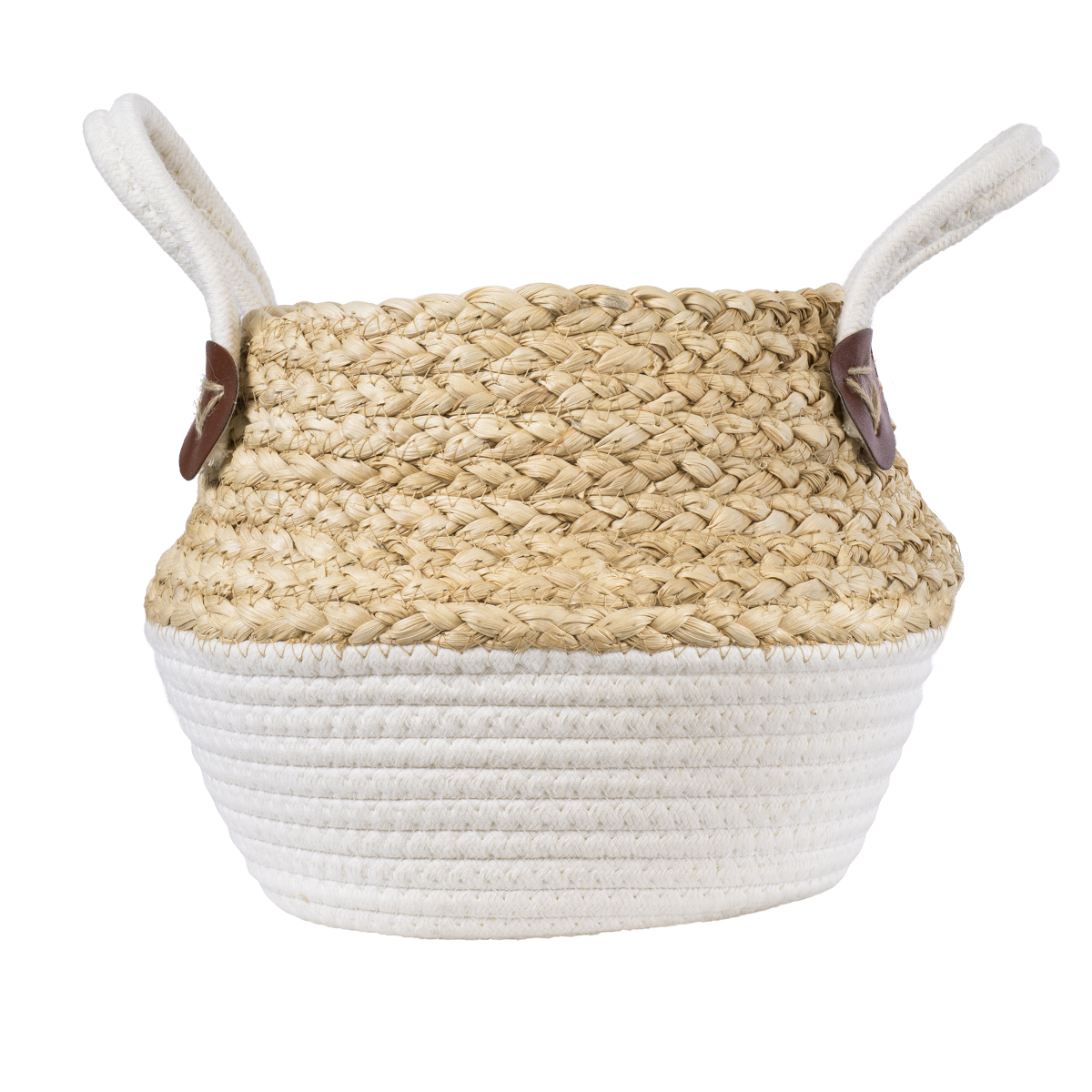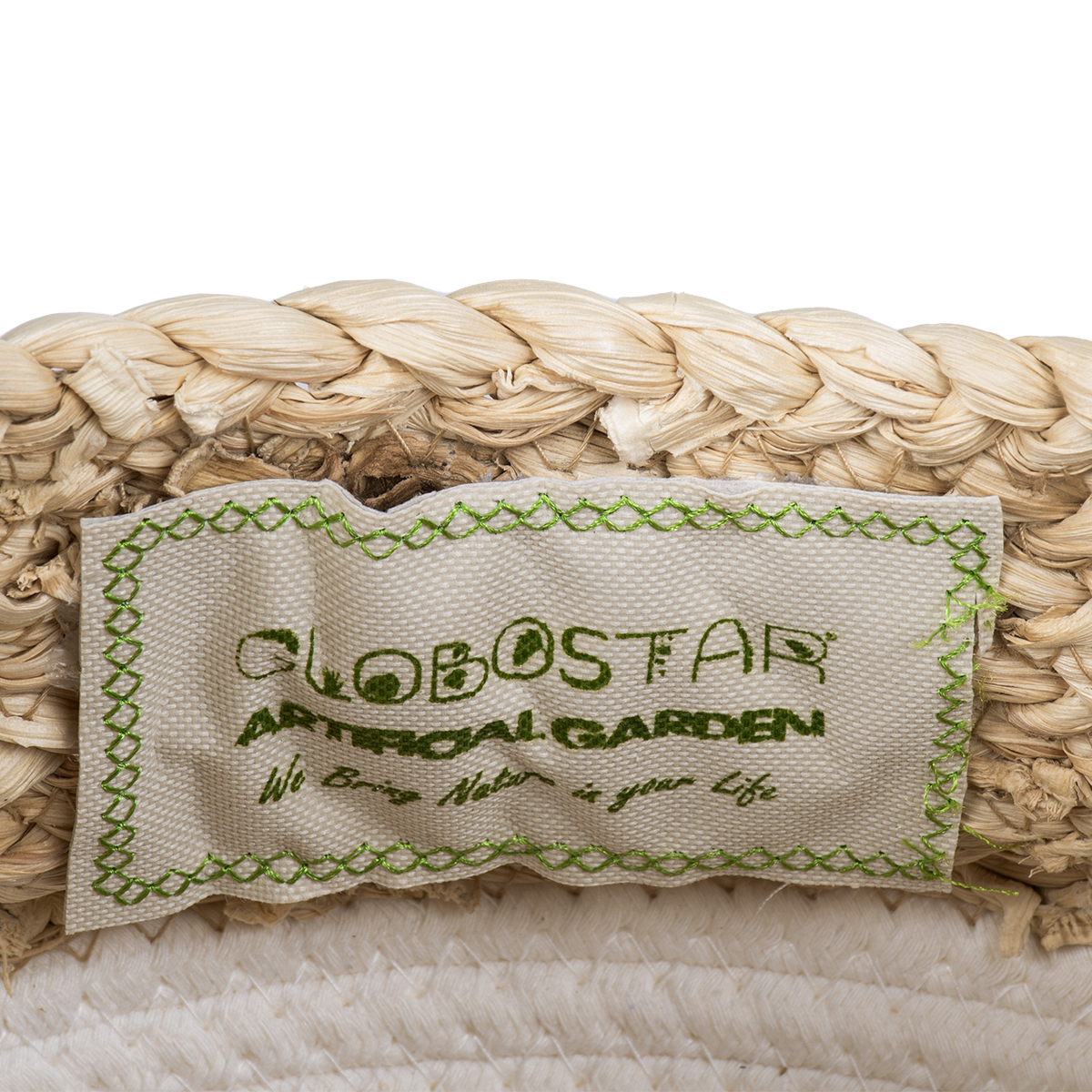 GloboStar® Artificial Garden KIMOLOS 20309 Διακοσμητικό Πλεκτό Καλάθι - Κασπώ Γλάστρα - Flower Pot Μπεζ με Λευκό Φ18cm x Υ21cm
