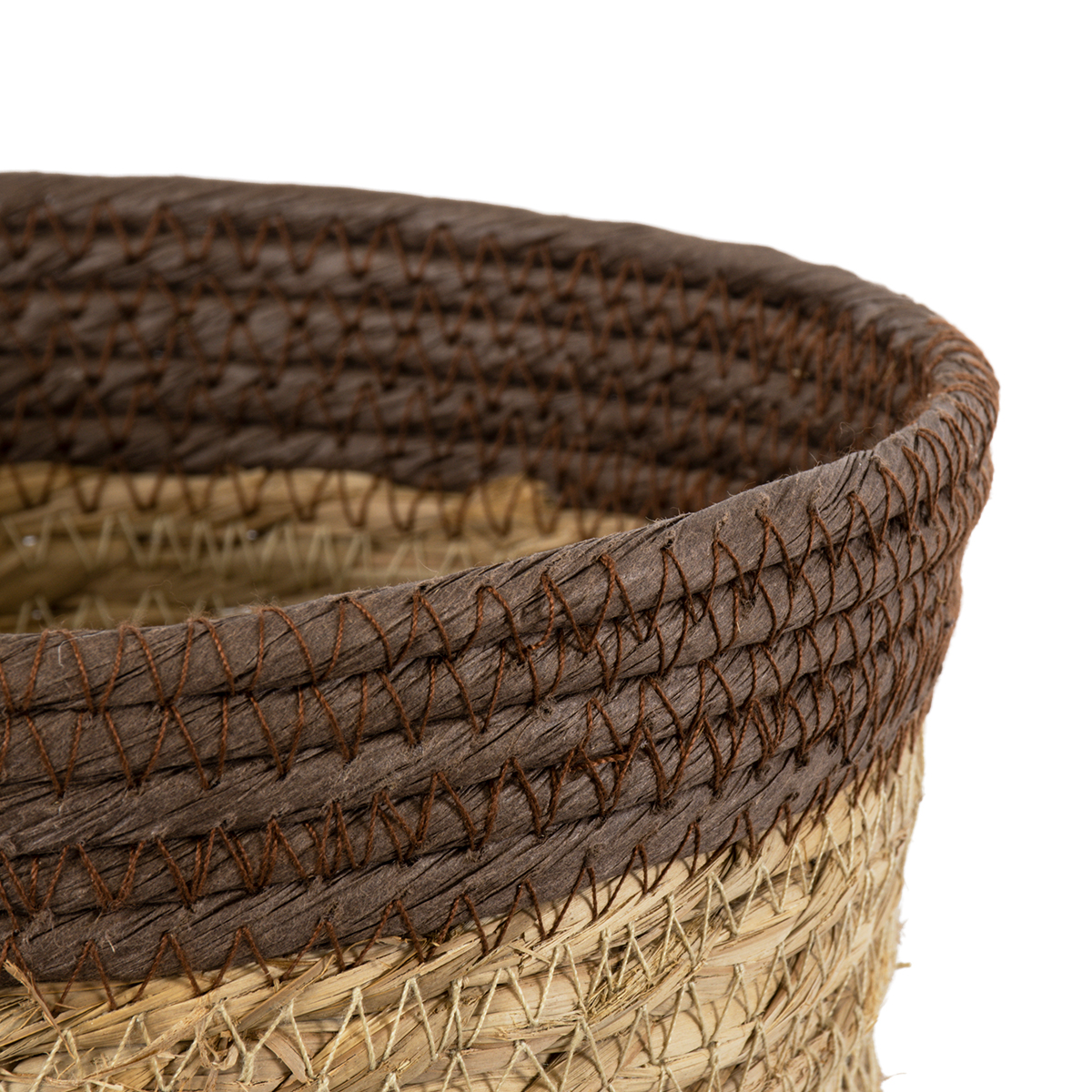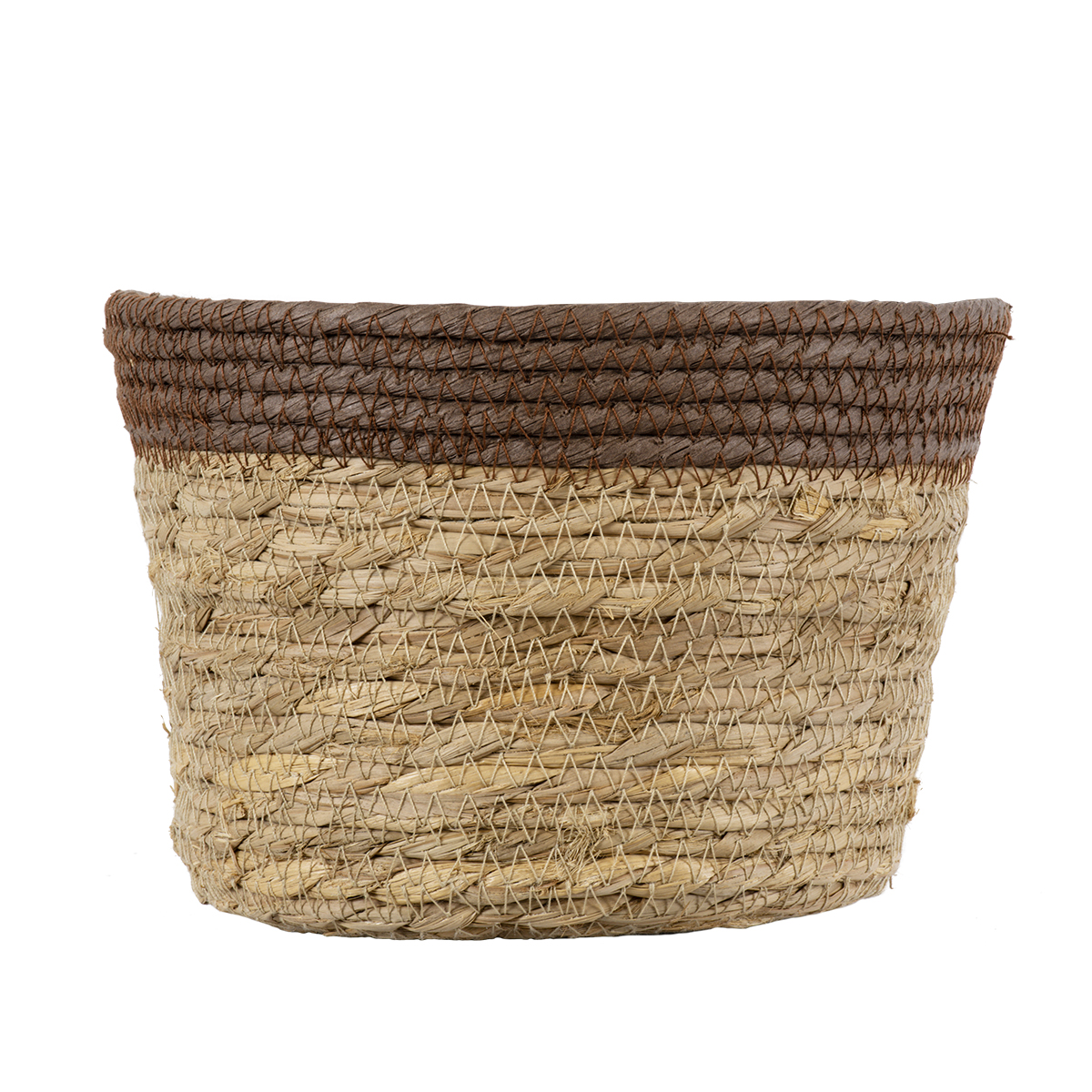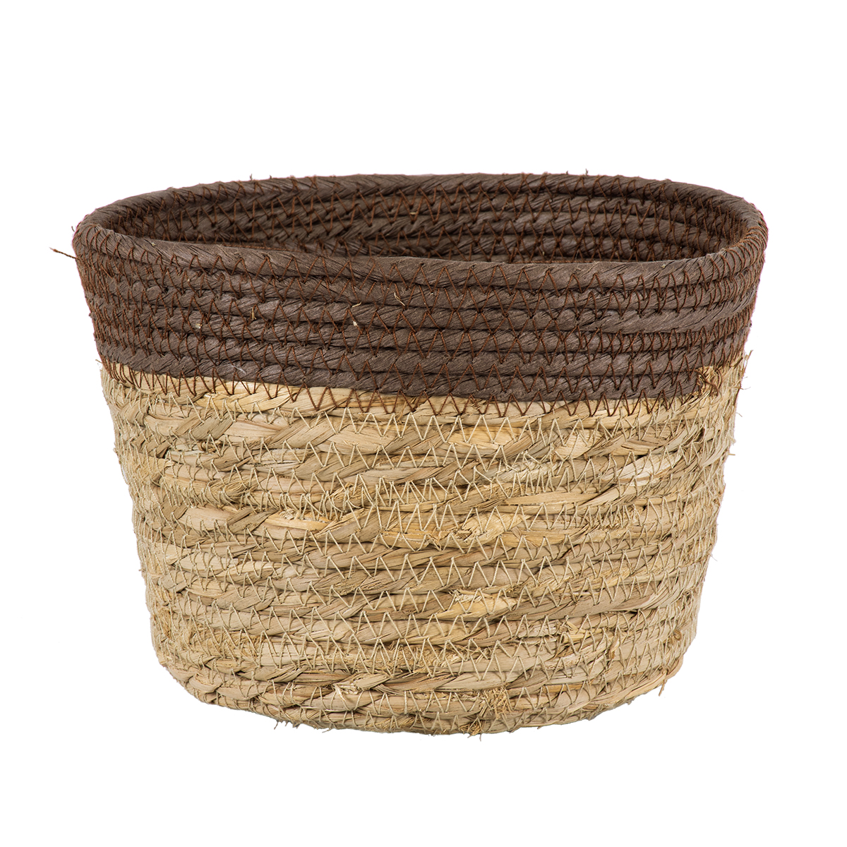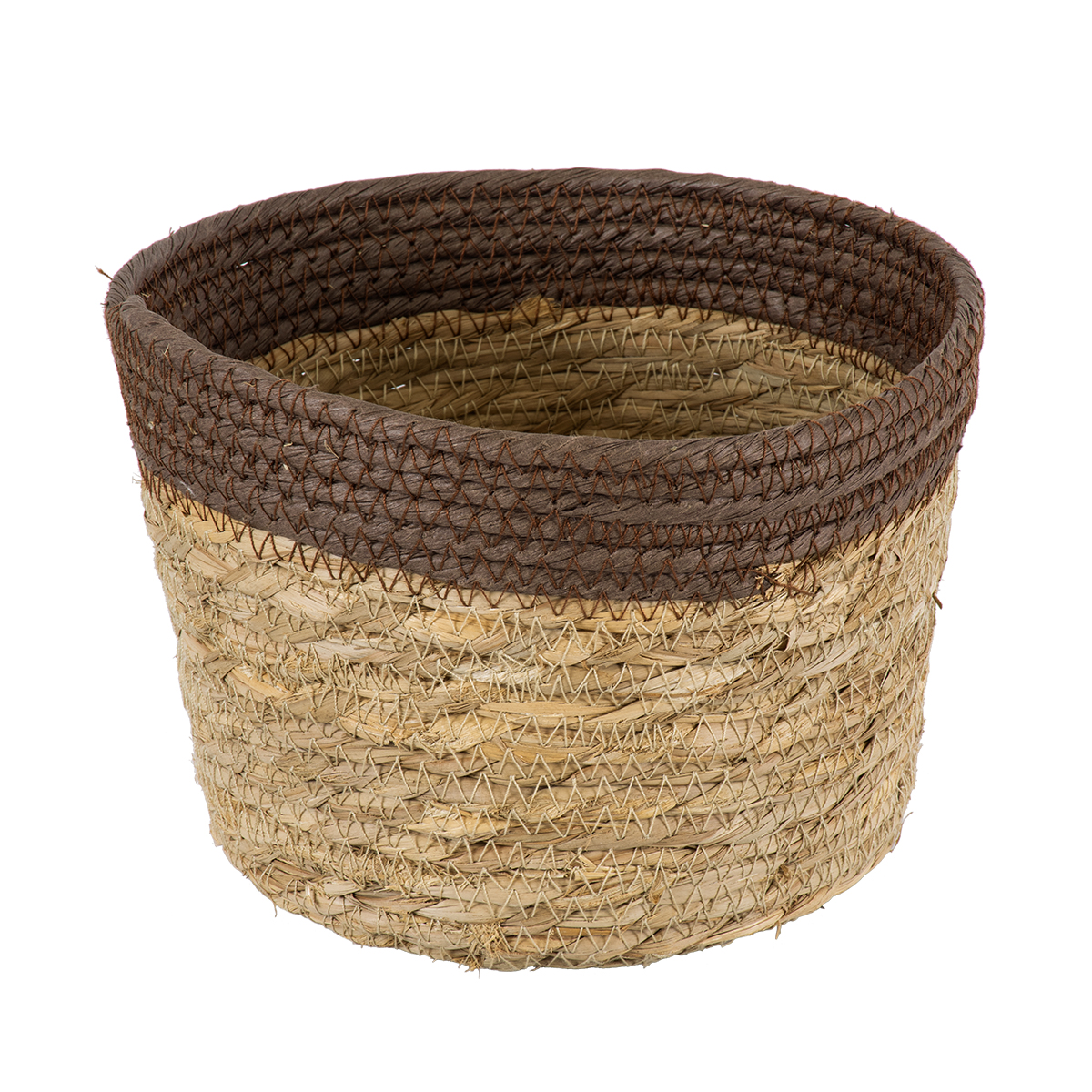 GloboStar® Artificial Garden LEFKADA 20287 Διακοσμητικό Πλεκτό Καλάθι - Κασπώ Γλάστρα - Flower Pot Μπεζ με Καφέ Φ22cm x Υ15cm