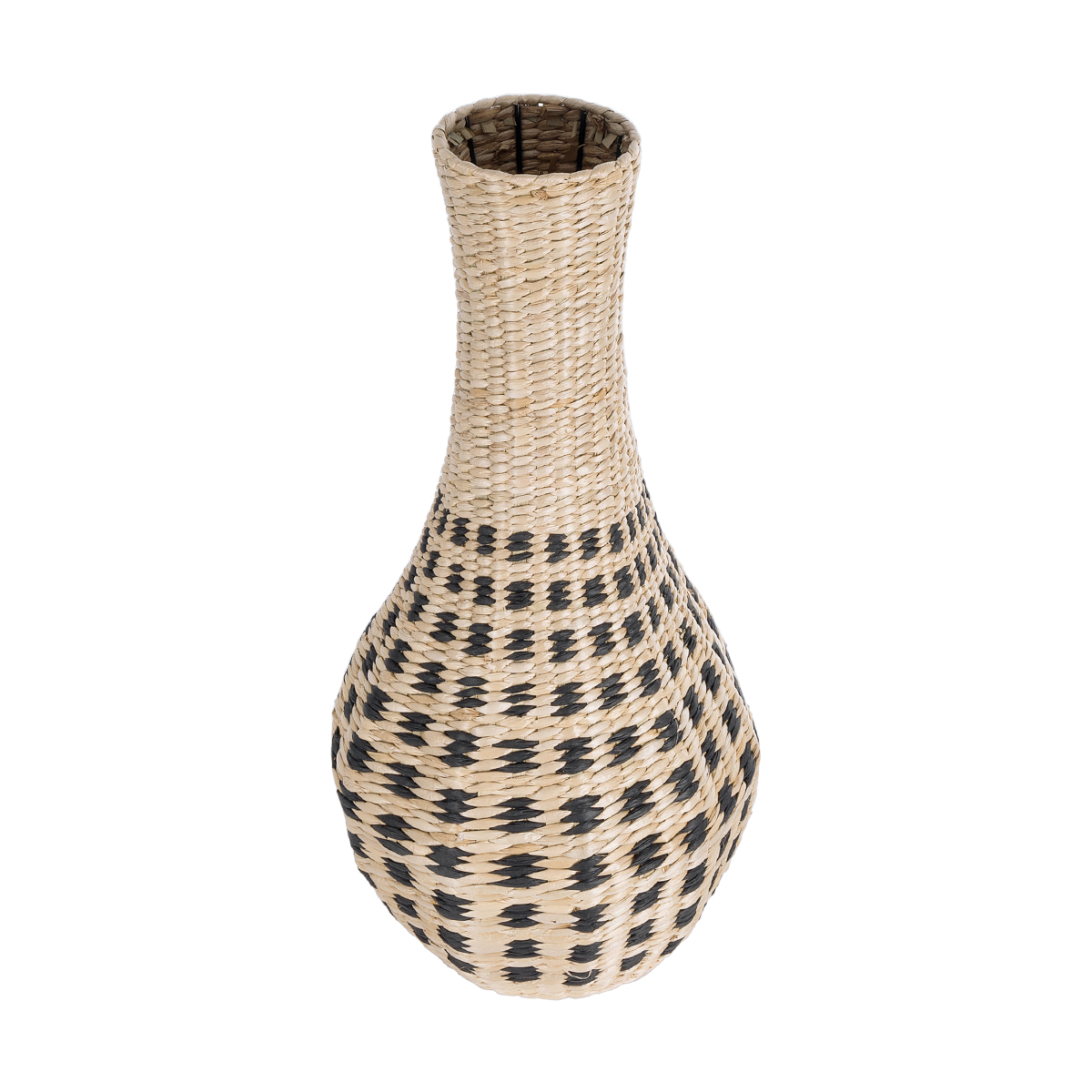 GloboStar® Artificial Garden MARSELLE 21232 Διακοσμητικό Πλεκτό Καλάθι - Κασπώ Γλάστρα - Flower Pot Μπεζ με Μαύρο Φ32cm x Υ65cm