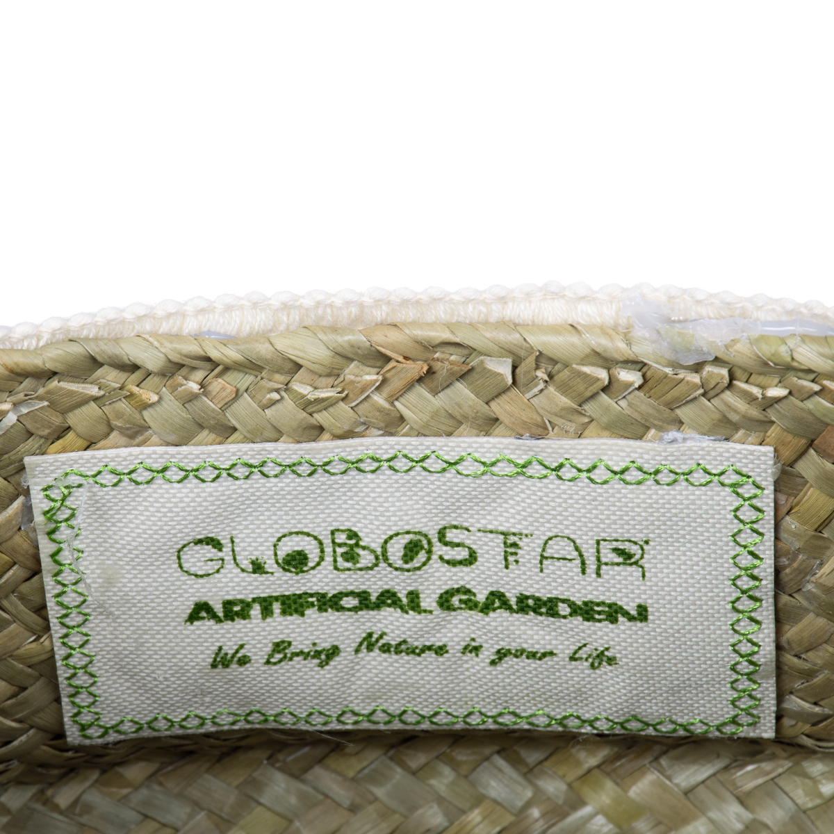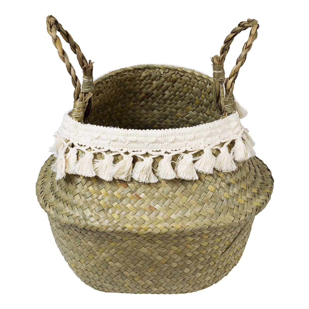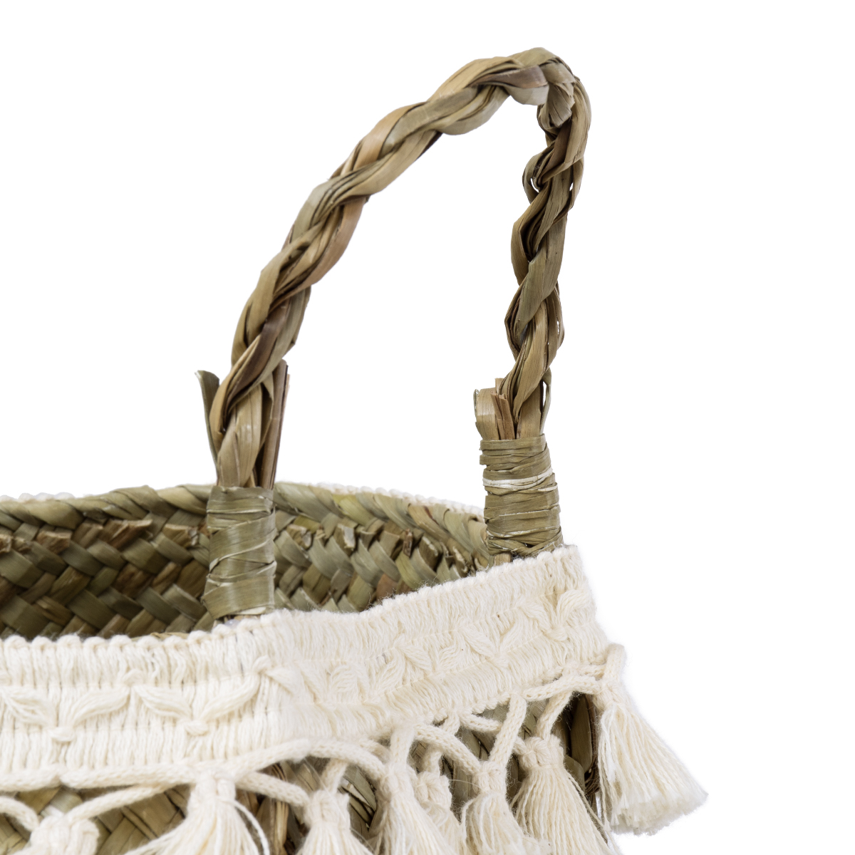 GloboStar® Artificial Garden MILOS 20307 Διακοσμητικό Ψάθινο Καλάθι - Κασπώ Γλάστρα - Flower Pot Μπεζ με Μακραμέ Φ21cm x Υ26cm