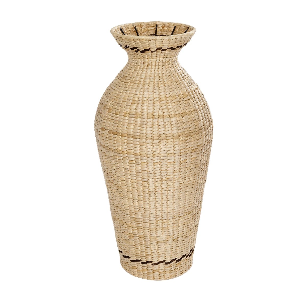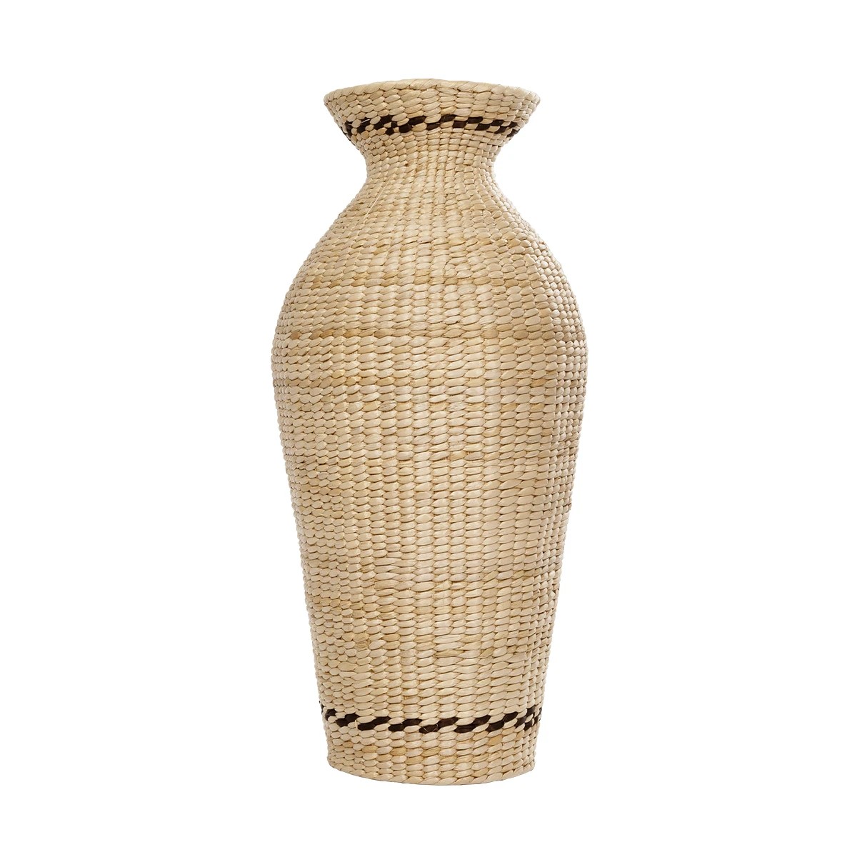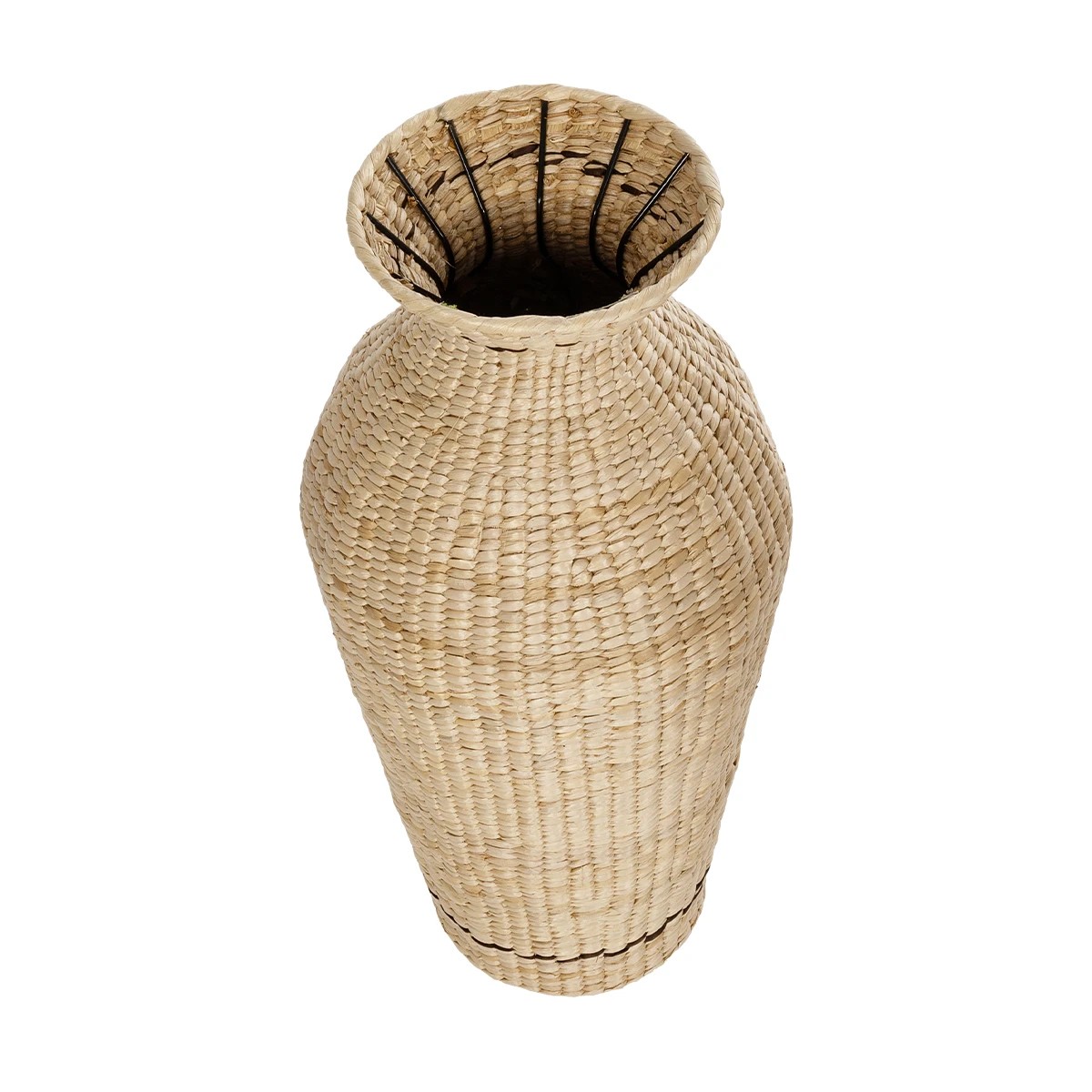 GloboStar® Artificial Garden MONTPELLIER 21237 Διακοσμητικό Πλεκτό Καλάθι - Κασπώ Γλάστρα - Flower Pot Μπεζ με Καφέ Π28 x M28 x Υ60cm