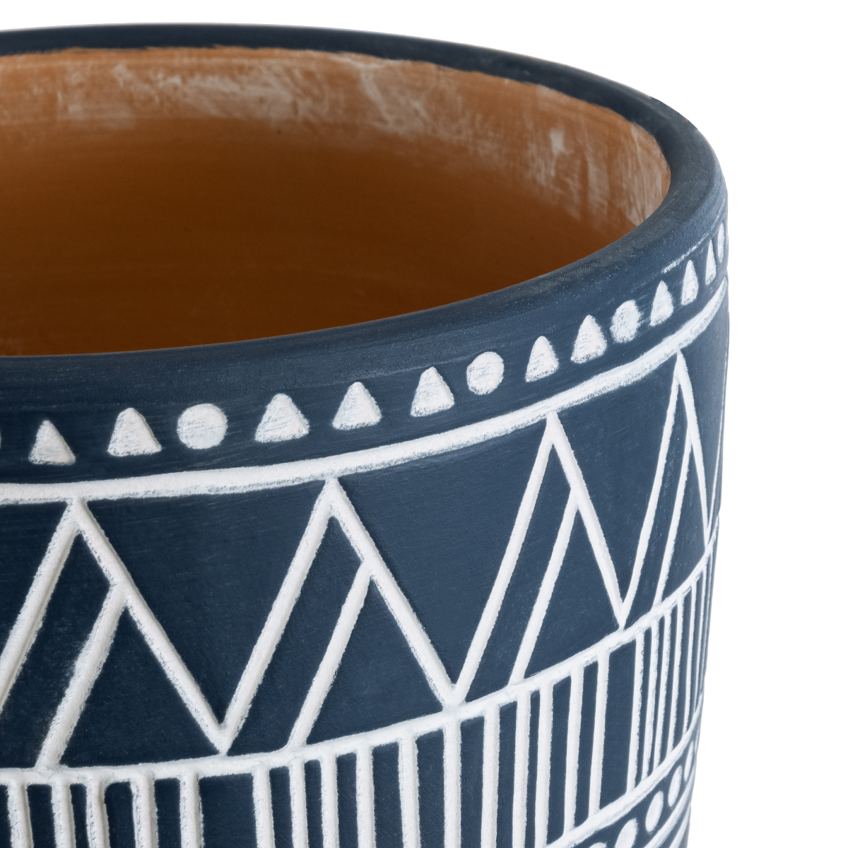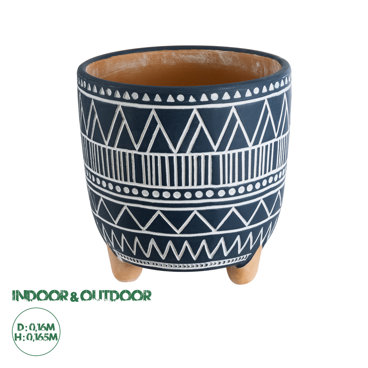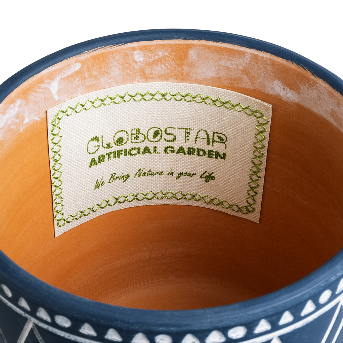 GloboStar® Artificial Garden MUMBAI 20508 Διακοσμητικό Κεραμικό Κασπώ Γλάστρα - Flower Pot Μπλε με Λευκό Φ16 x Υ16.5cm