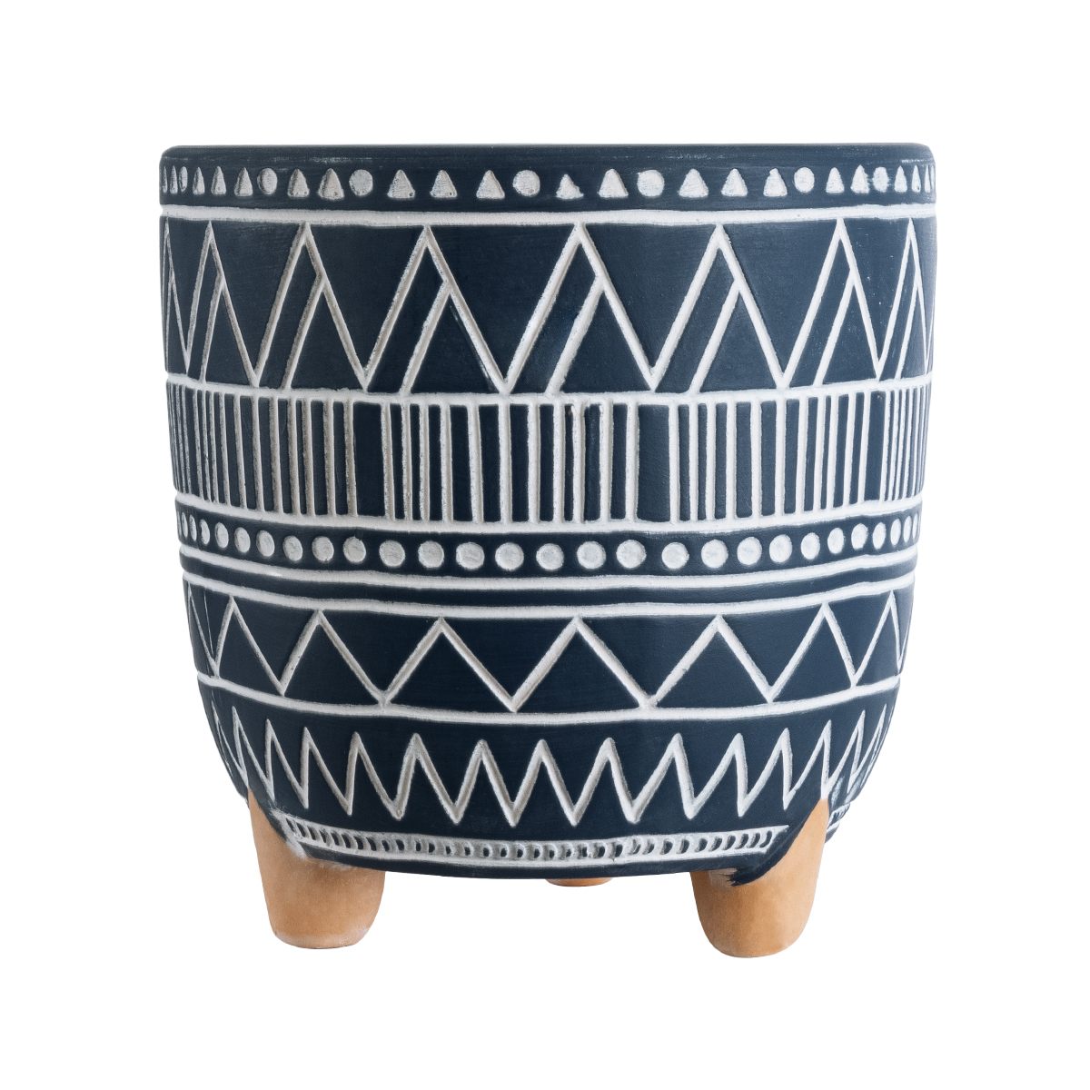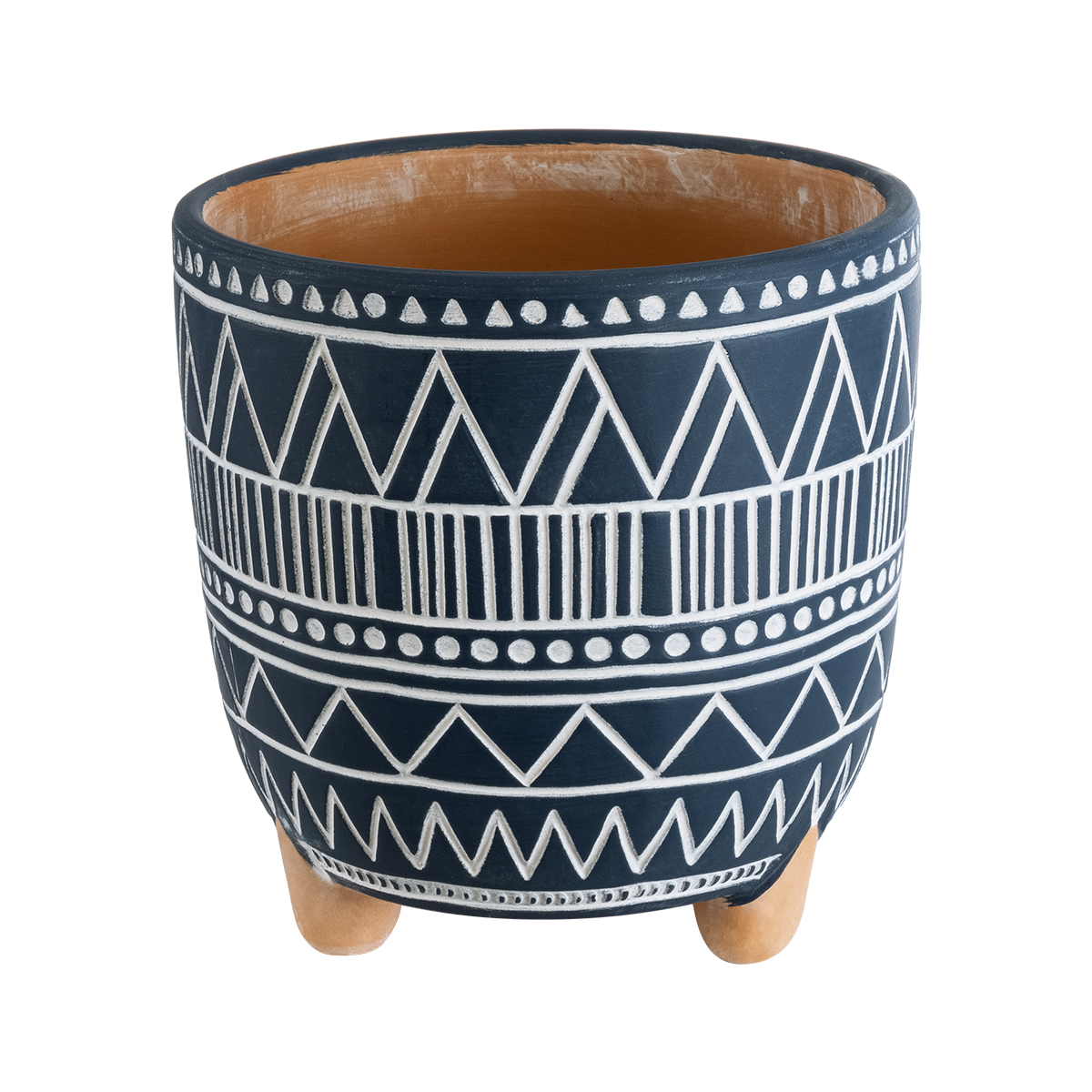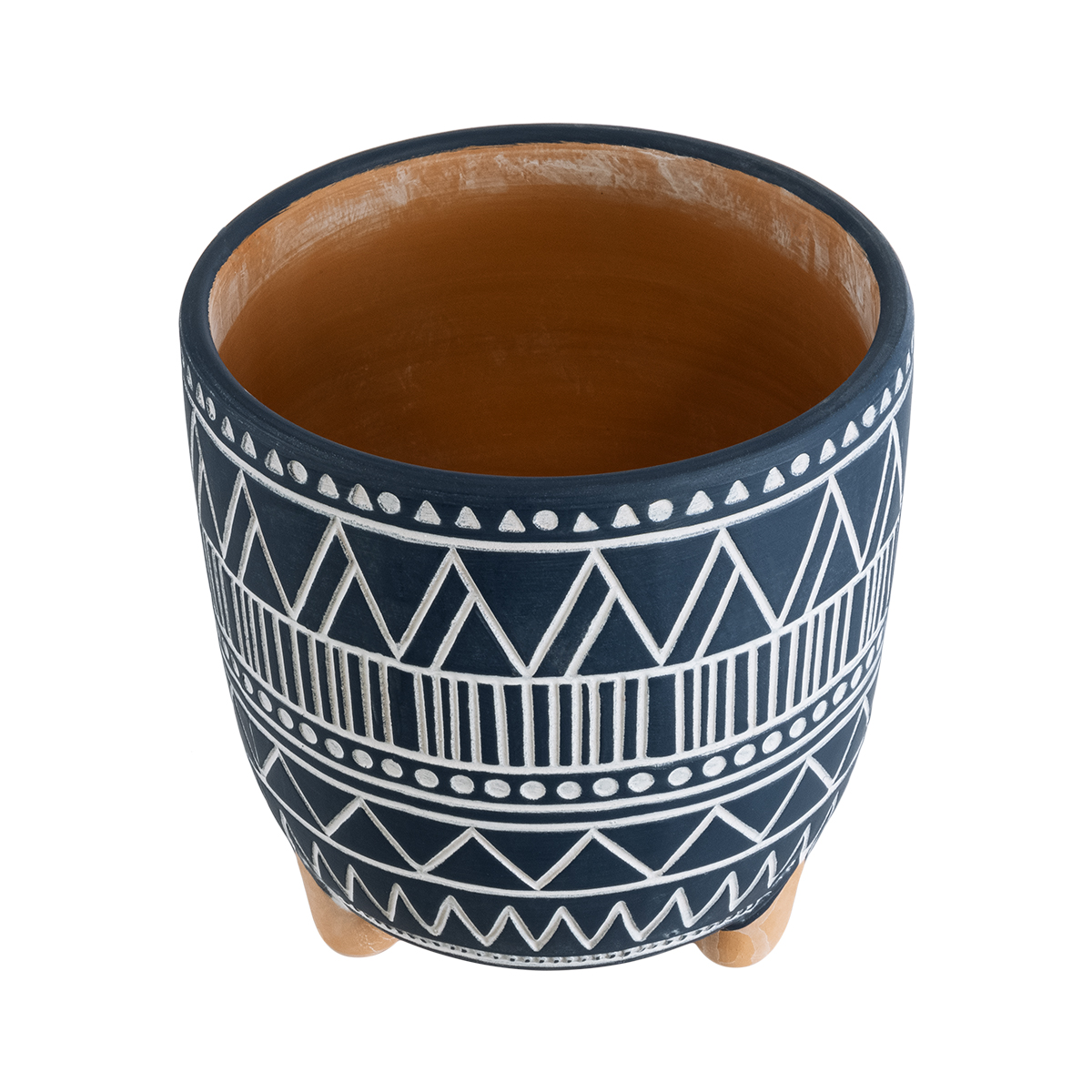 GloboStar® Artificial Garden MUMBAI 20508 Διακοσμητικό Κεραμικό Κασπώ Γλάστρα - Flower Pot Μπλε με Λευκό Φ16 x Υ16.5cm