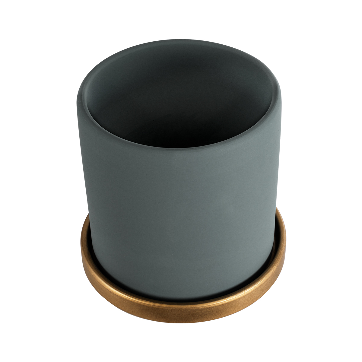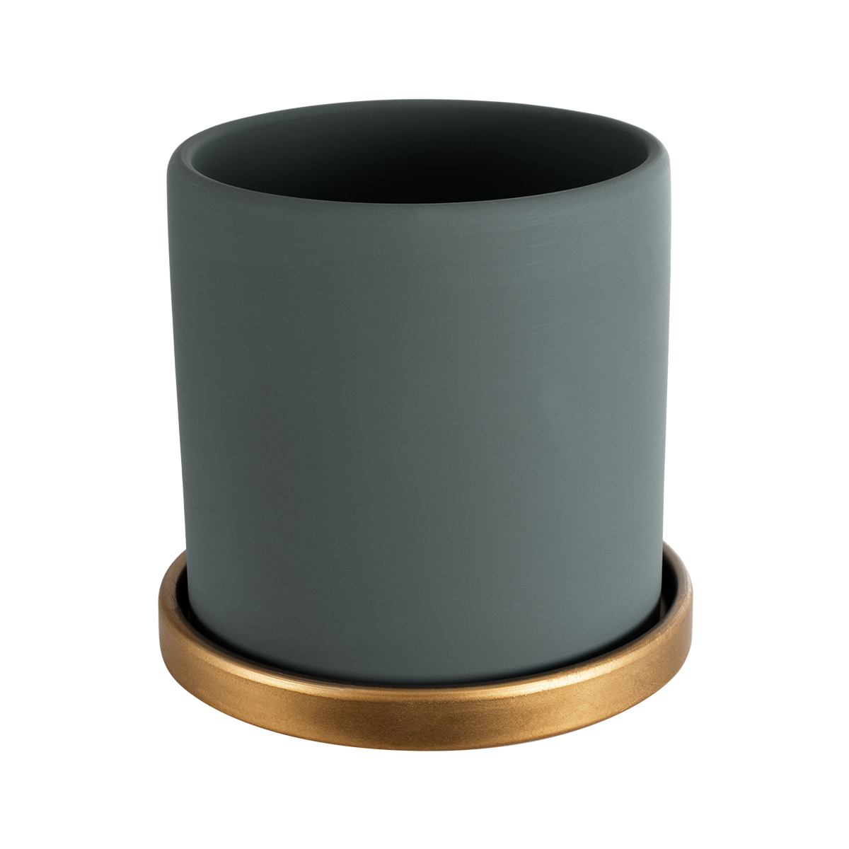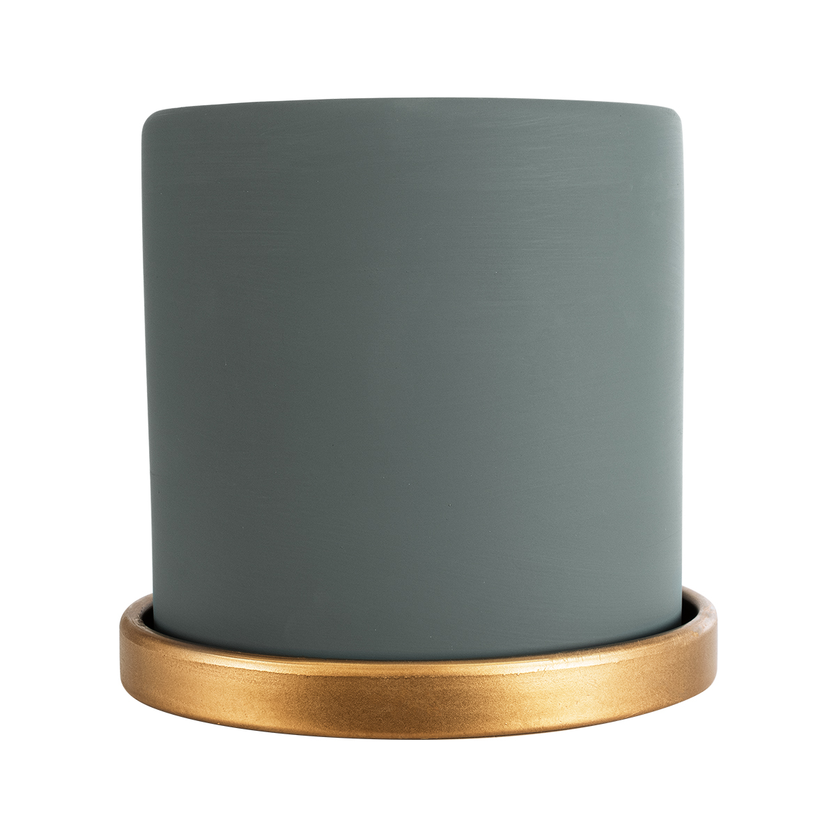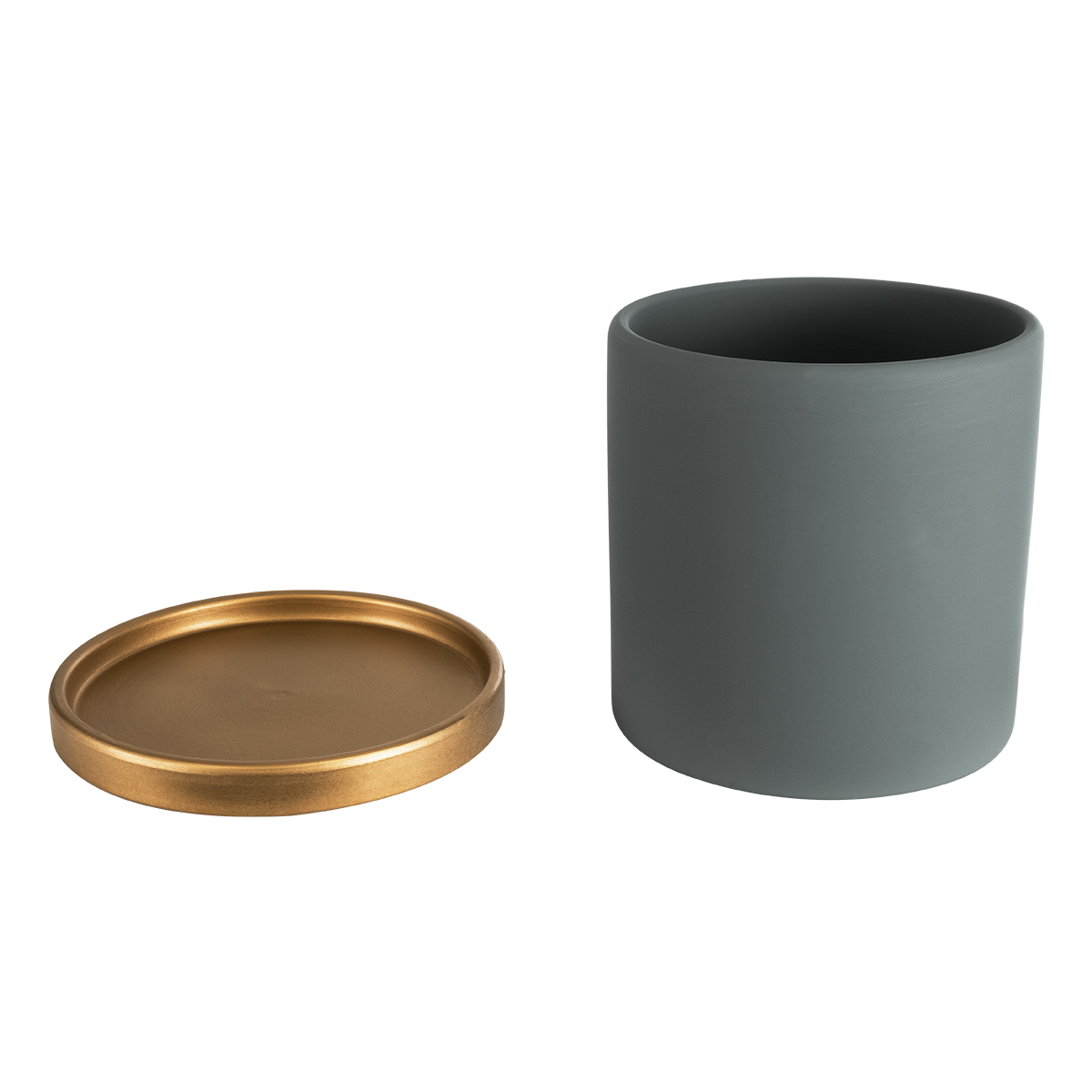 GloboStar® Artificial Garden NAPOLI 20494 Διακοσμητικό Κεραμικό Κασπώ Γλάστρα - Flower Pot Γκρι Πράσινο με Χρυσό Φ15 x Υ15cm
