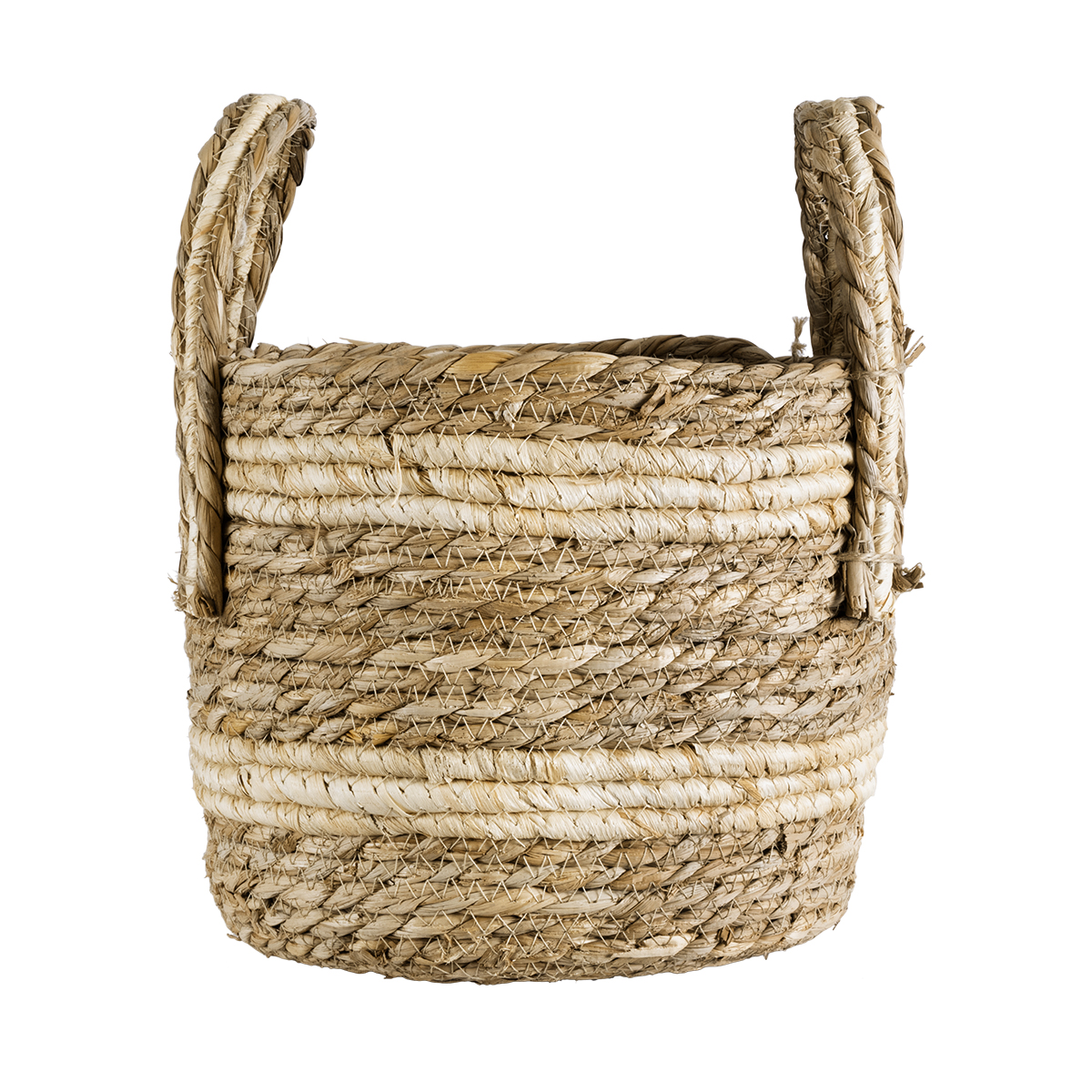 GloboStar® Artificial Garden NAXOS 20332 Διακοσμητικό Πλεκτό Καλάθι - Κασπώ Γλάστρα - Flower Pot Μπεζ με Καφέ Φ25cm x Υ20cm