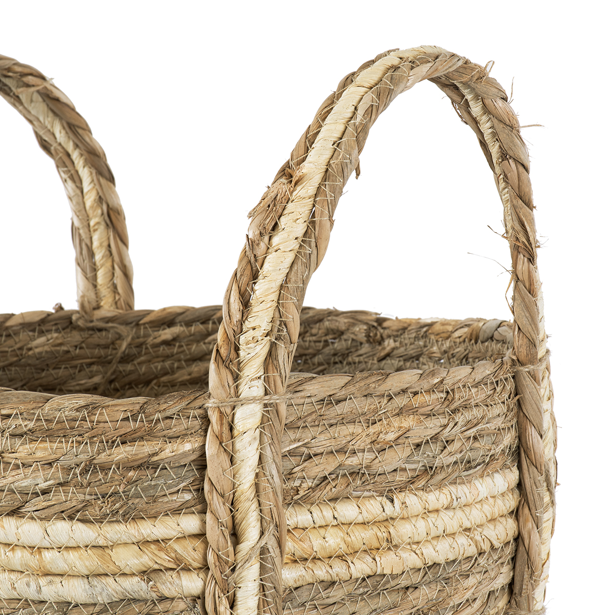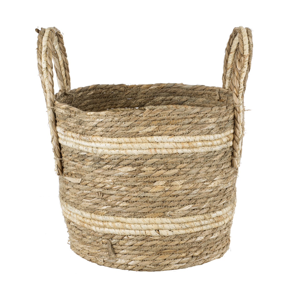 GloboStar® Artificial Garden NAXOS 20333 Διακοσμητικό Πλεκτό Καλάθι - Κασπώ Γλάστρα - Flower Pot Μπεζ με Καφέ Φ30cm x Υ26cm