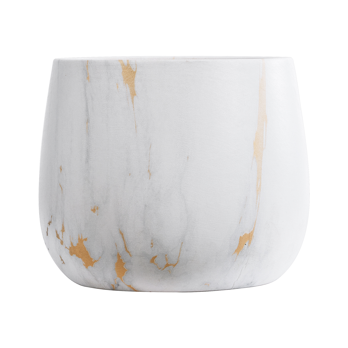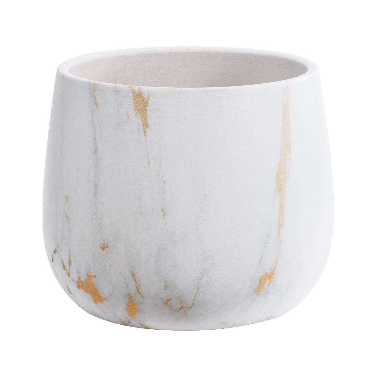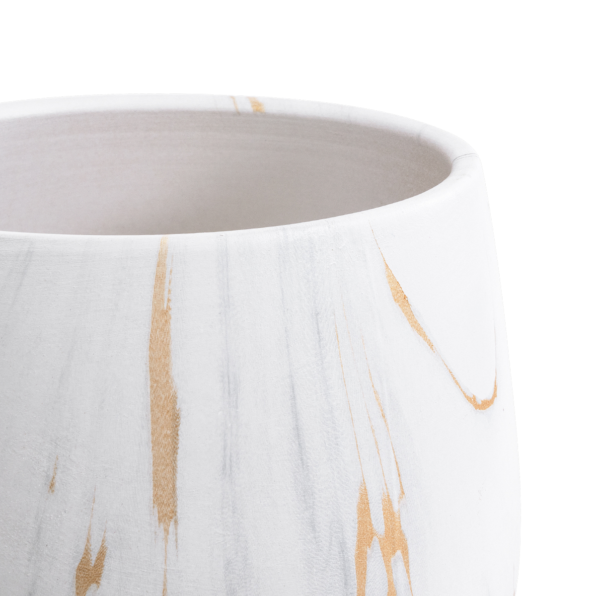 GloboStar® Artificial Garden NICE 20550 Διακοσμητικό Κεραμικό Κασπώ Γλάστρα - Flower Pot Λευκό με Χρυσές Λεπτομέρειες Φ15 x Υ12cm