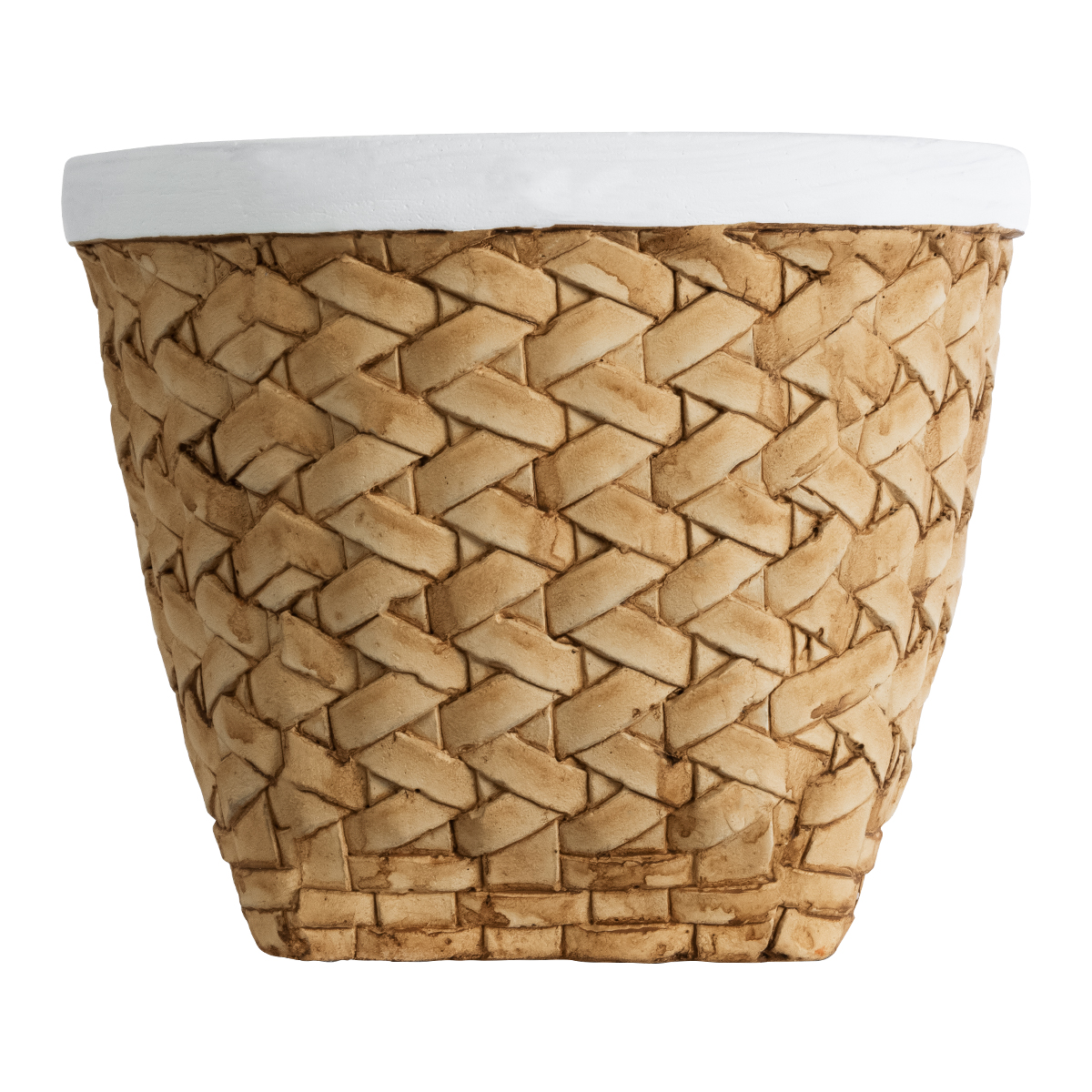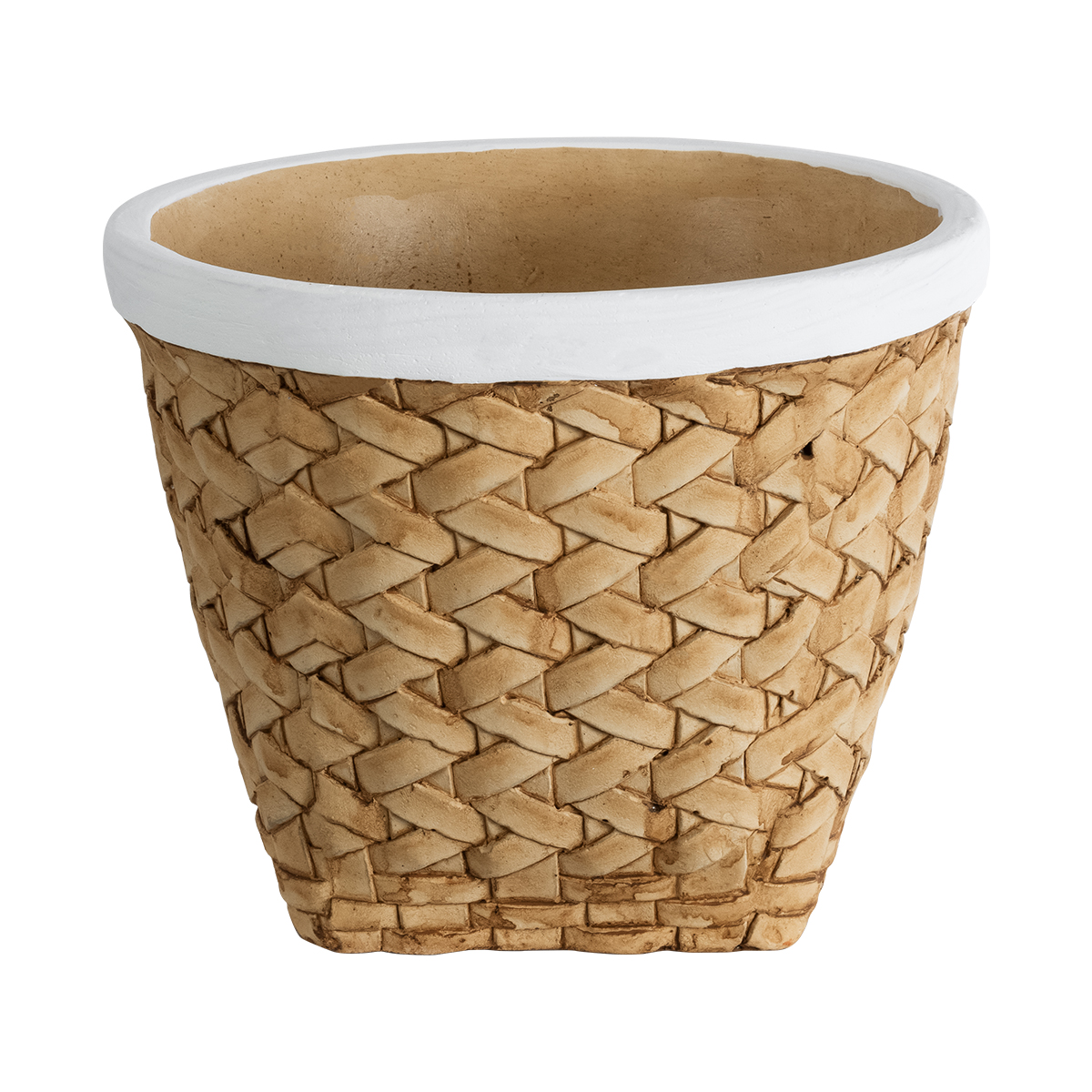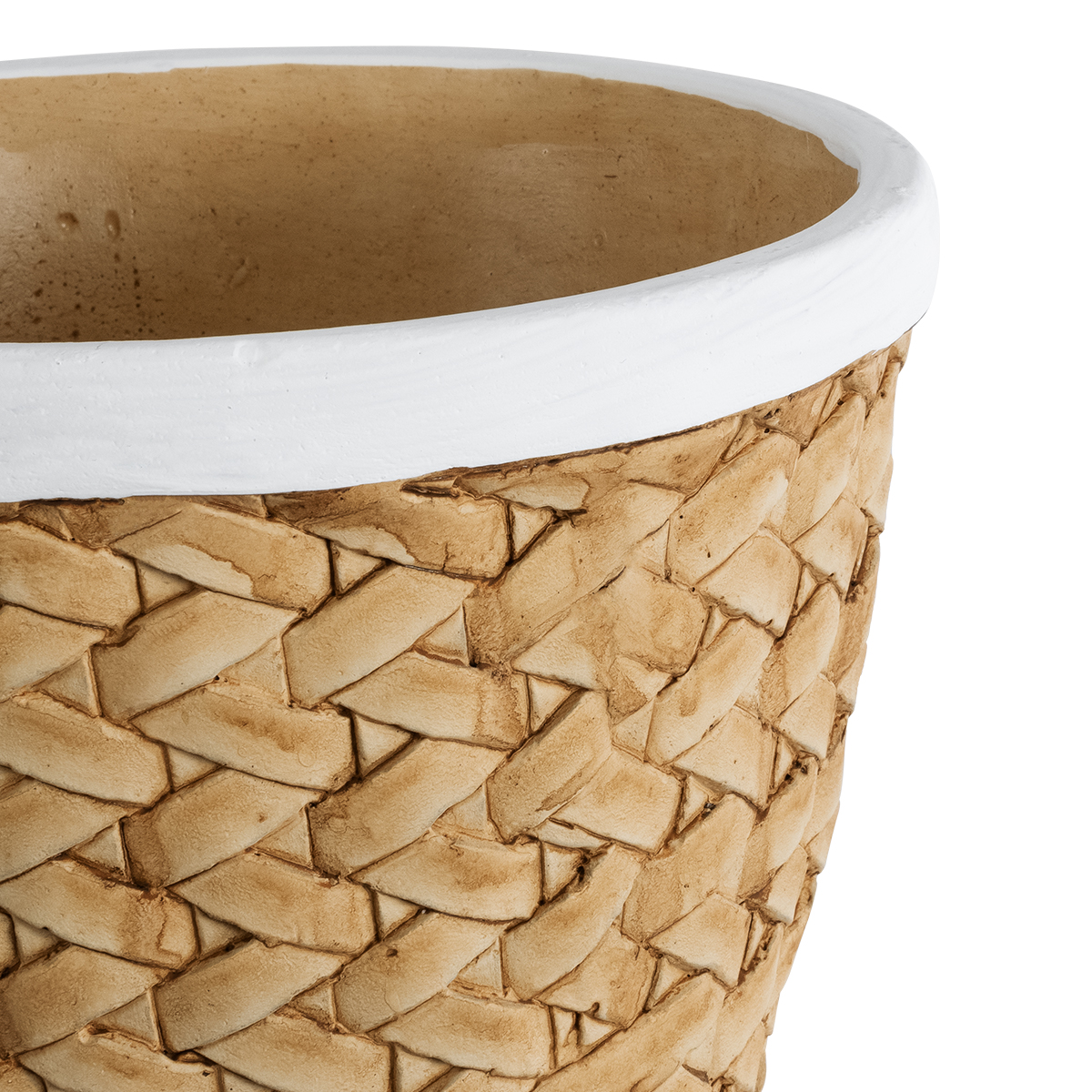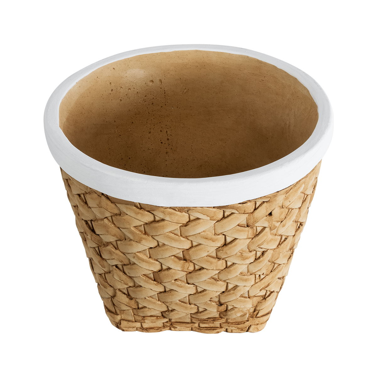GloboStar® Artificial Garden NOTTING 20803 Διακοσμητικό Πολυεστερικό Τσιμεντένιο Κασπώ Γλάστρα - Flower Pot Μπεζ με Λευκό Φ20 x Υ16cm